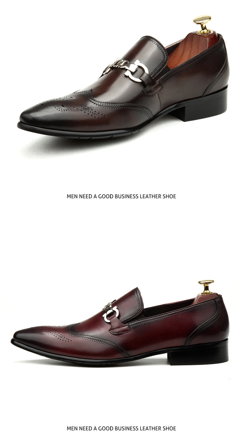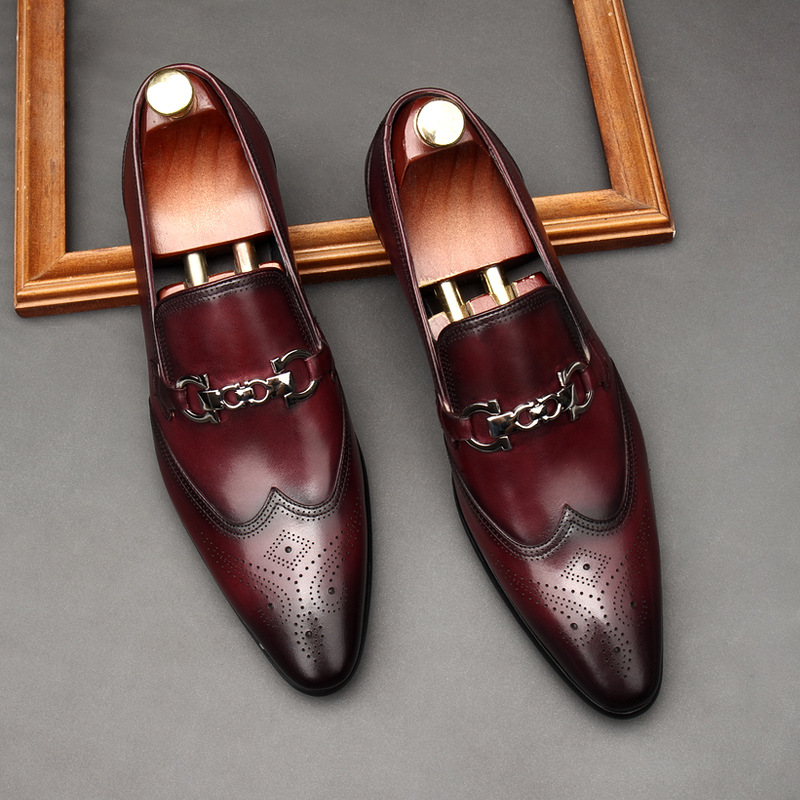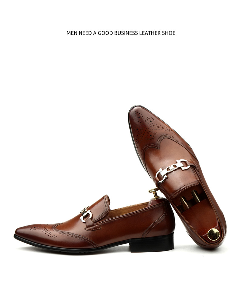 Giày da nam thiết kế mũi nhọn, phù hợp cho cả công sở và dạo phố. Sản phẩm có đường chỉ khâu tinh tế và họa tiết chạm khắc tinh xảo trên thân giày, tạo điểm nhấn nổi bật. Kiểu dáng ôm vừa chân, kết hợp với khóa cài tiện lợi giúp điều chỉnh dễ dàng và cố định chắc chắn. Bạn có thể dùng giày này để đi làm hoặc tham dự các buổi tiệc. Chỉ cần xỏ giày, cài khóa và điều chỉnh cho vừa vặn là có thể sử dụng ngay. | Tên sản phẩm: Giày Da Nam Dáng Ôm Mũi Nhọn Họa Tiết Hoa Hàng Mùa Xuân Thu Đông Dùng Trong Lễ Cưới - Giày Dép Nam | Mã sản phẩm: H3573 - Giá: 2.660.000đ | Mã nhà sản xuất: SHDI-G06Hình ảnh sản phẩm