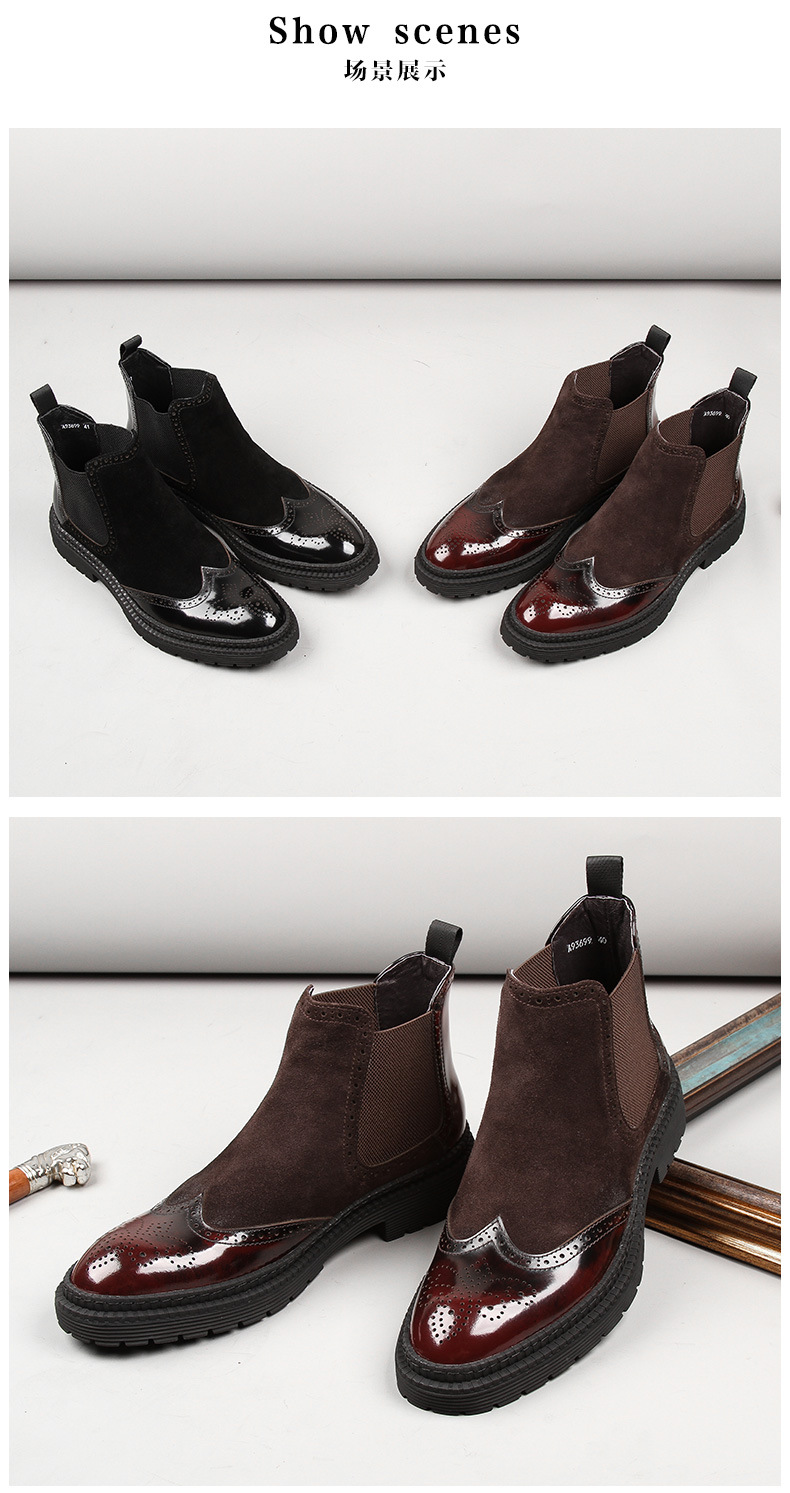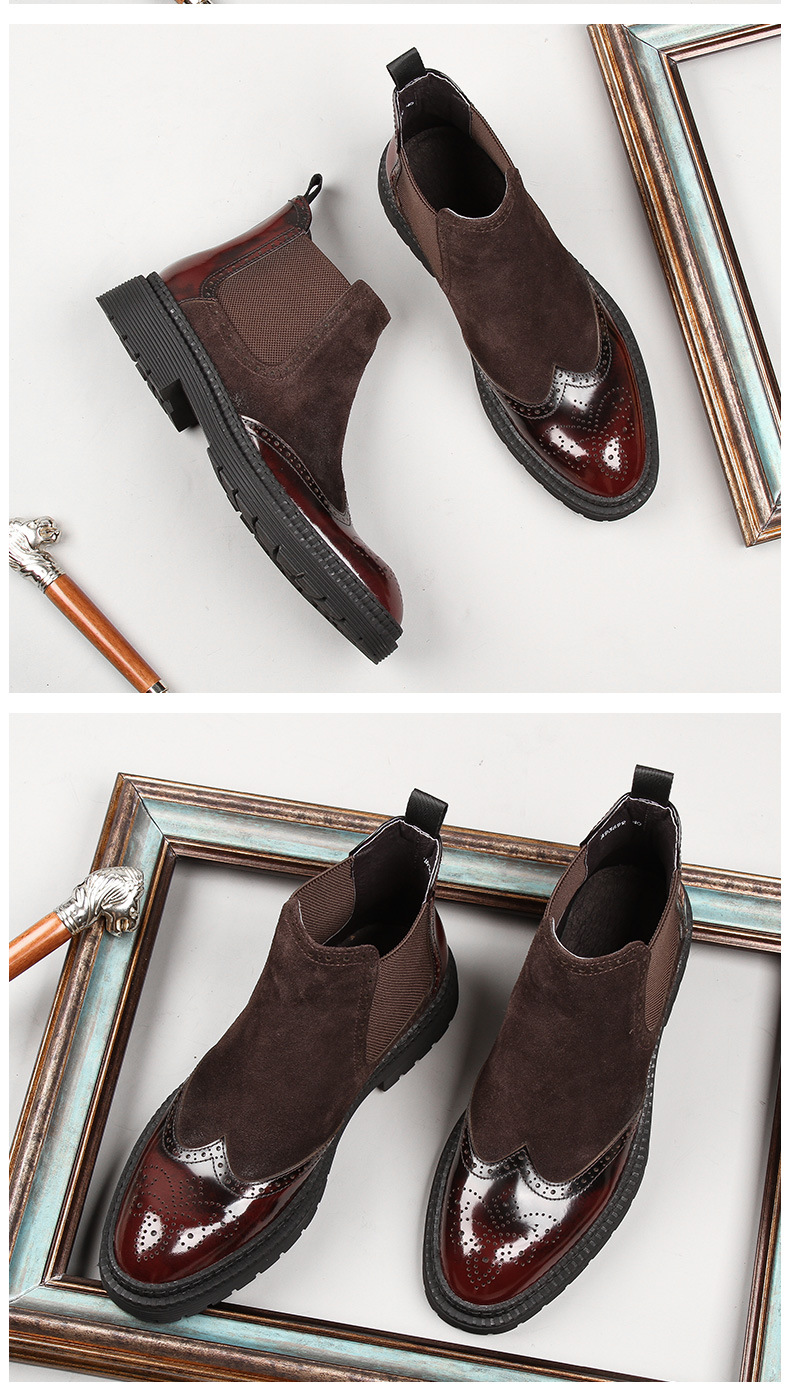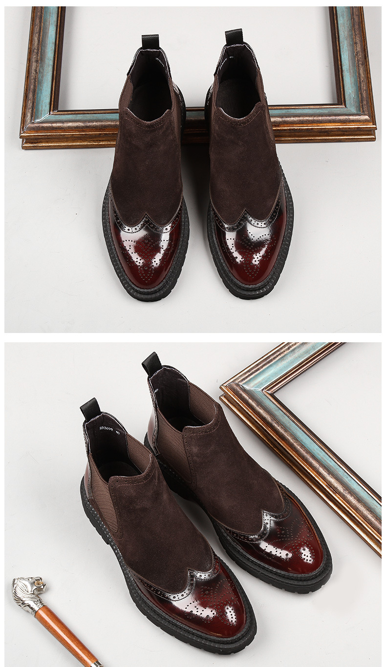 Giày boot cổ thấp dành cho nam, thiết kế cho tiết trời thu đông. Sản phẩm có kiểu dáng bụi bặm, phù hợp với phong cách cổ điển. Bề mặt giày được xử lý tạo hiệu ứng mờ mịn, kết hợp những đường nét chạm khắc tinh tế ở thân giày. Cách sử dụng đơn giản, dễ dàng kết hợp cùng nhiều loại trang phục như quần âu hay quần jeans để tạo nên vẻ ngoài chỉn chu, lịch sự. | Tên sản phẩm: Giày Boot Cổ Thấp Nam Họa Tiết Hoa Hàng Mùa Xuân Thu Đông Phục Cổ Cổ Điển - Giày Dép Nam | Mã sản phẩm: H3595 - Giá: 3.130.000đ | Mã nhà sản xuất: SHDI-G06Hình ảnh sản phẩm