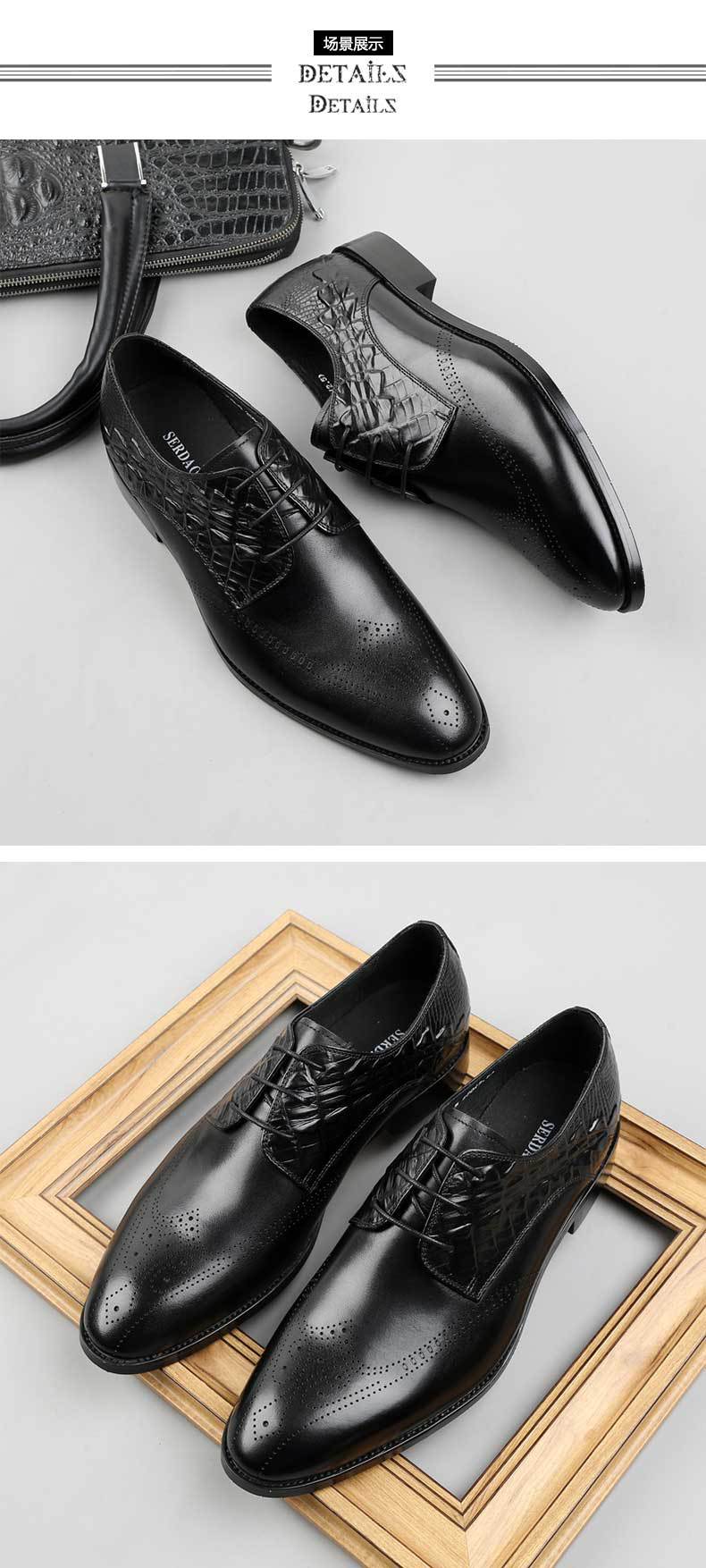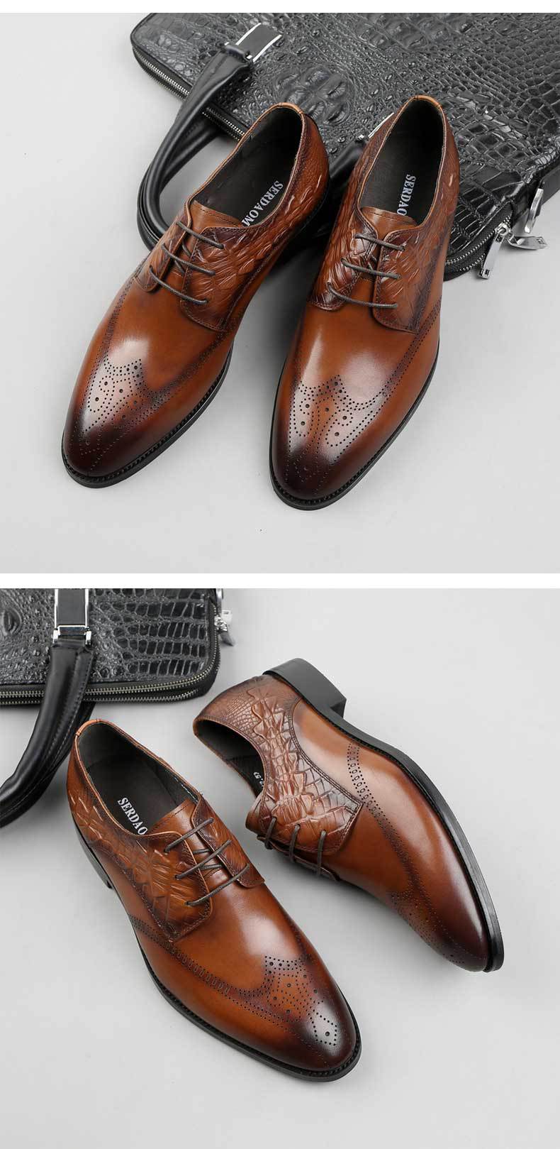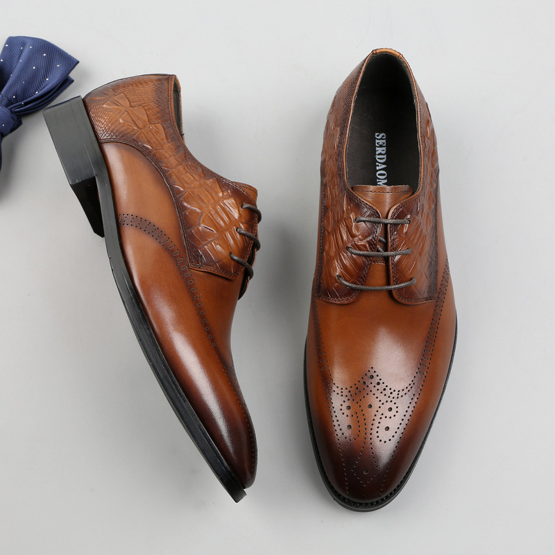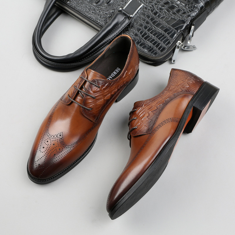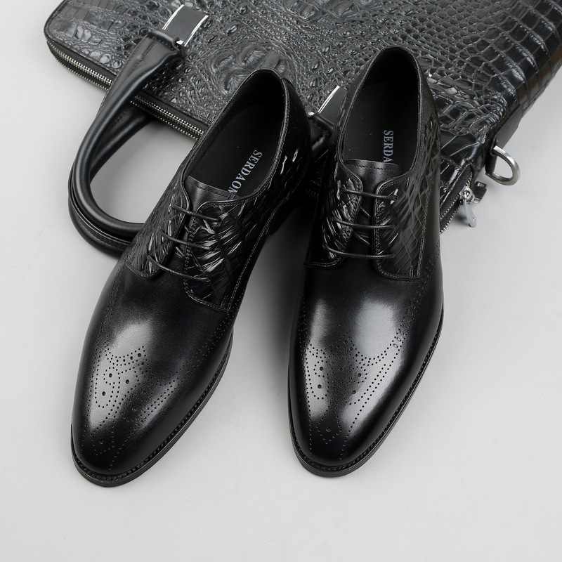 Giày da dành cho nam, kiểu dáng mang phong cách châu Âu với mũi nhọn thanh lịch. Sản phẩm có mặt trên được điểm xuyết hoa văn tinh tế, kết hợp với thiết kế nhiều lỗ nhỏ giúp đôi chân luôn khô ráo và dễ chịu. Đây là lựa chọn phù hợp cho công sở hoặc những dịp quan trọng. Bạn có thể kết hợp cùng bộ vest chỉnh tề hoặc quần âu để tạo nên vẻ ngoài lịch lãm. | Tên sản phẩm: Giày Da Nam Mũi Nhọn Họa Tiết Hoa Thoáng Khí Hàng Mùa Xuân Thu Đông Dùng Trong Lễ Cưới - Giày Dép Nam | Mã sản phẩm: H3612 - Giá: 2.660.000đ | Mã nhà sản xuất: SHDI-G06Hình ảnh sản phẩm