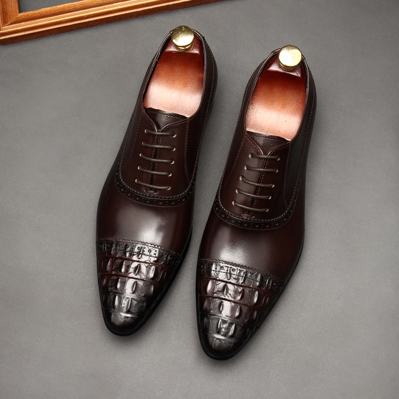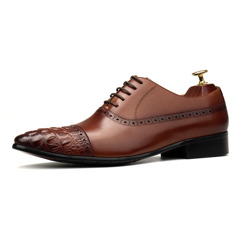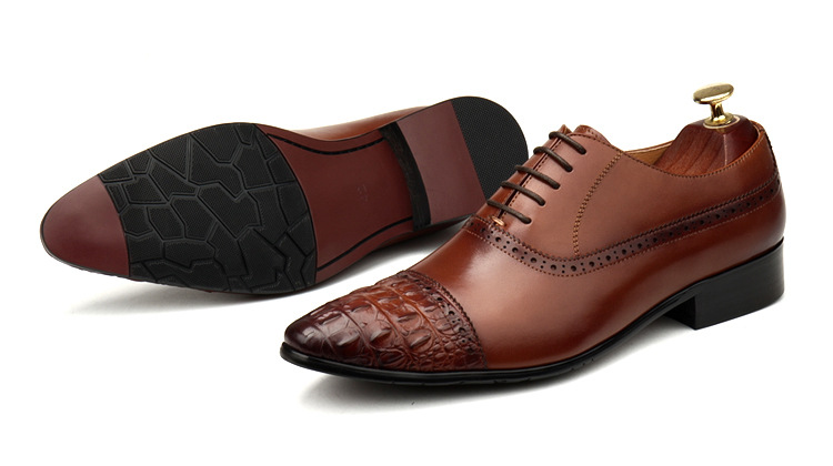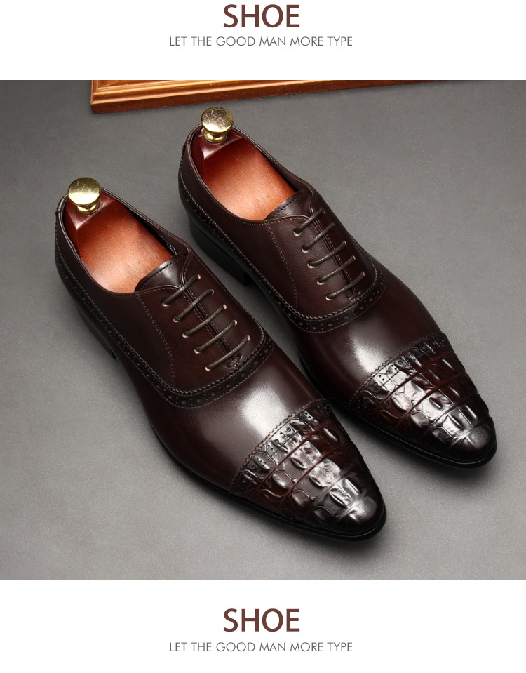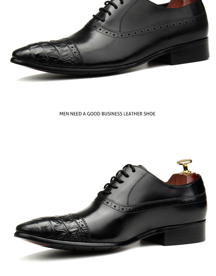 Giày tây da bò này mang phong cách Anh cổ điển, phù hợp cho các dịp làm việc hoặc tiệc tùng. Sản phẩm làm từ chất liệu da bò bền đẹp, bề mặt có họa tiết vân cá sấu tinh tế. Kiểu dáng mũi nhọn cùng thiết kế buộc dây truyền thống tạo vẻ lịch lãm. Bạn có thể kết hợp cùng bộ vest chỉnh tề hoặc quần âu thông thường. Sử dụng bộ đồ nghề đánh bóng giày để vệ sinh và bảo quản da. | Tên sản phẩm: Giày Da Nam Chất Liệu Da Bò Vân Da Cá Sấu Mũi Nhọn Dùng Trong Lễ Cưới - Giày Dép Nam | Mã sản phẩm: H3621 - Giá: 2.660.000đ | Mã nhà sản xuất: SHDI-G06Hình ảnh sản phẩm