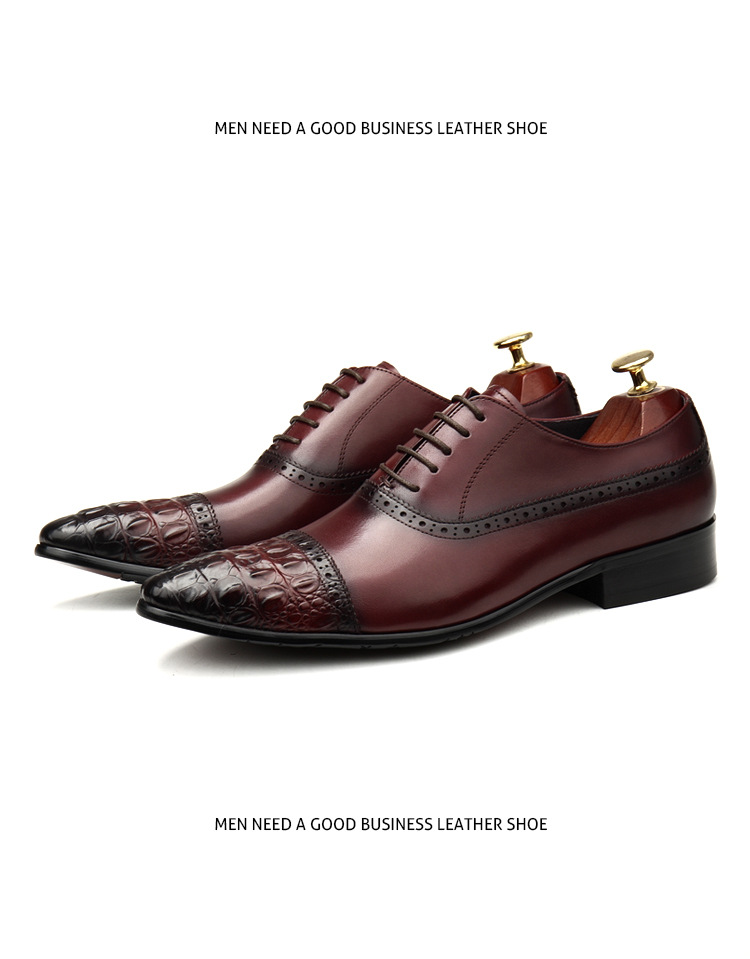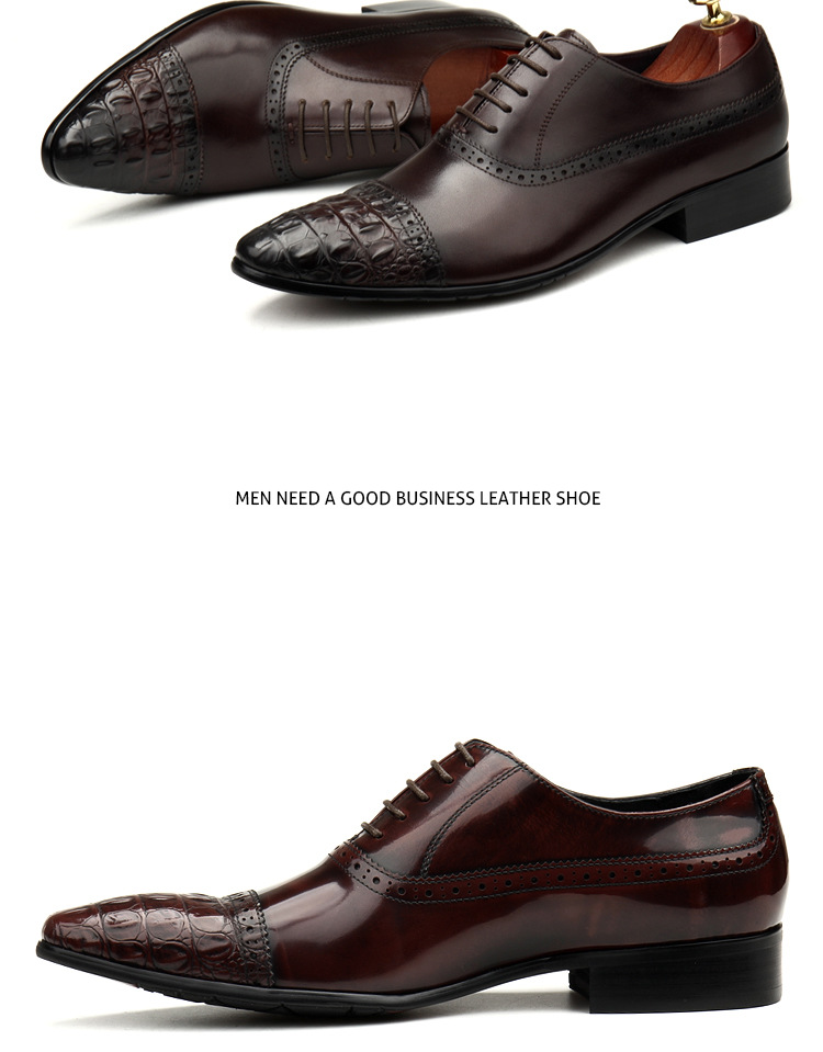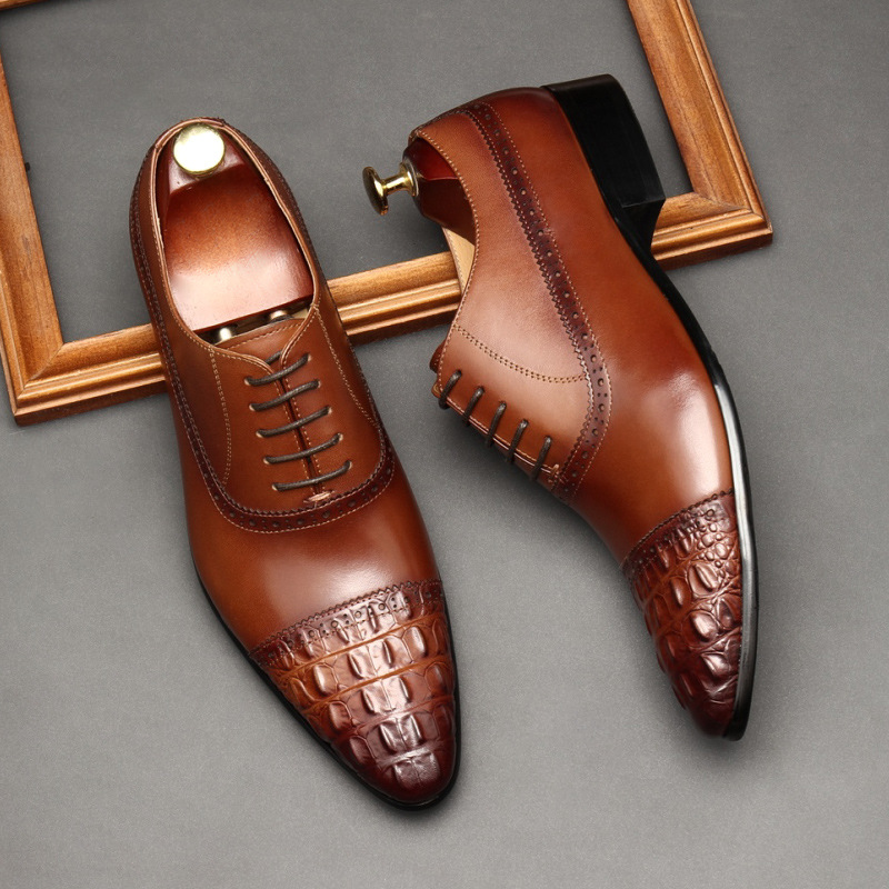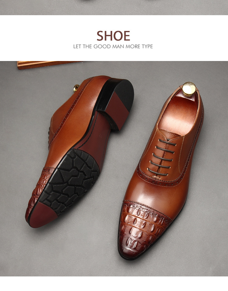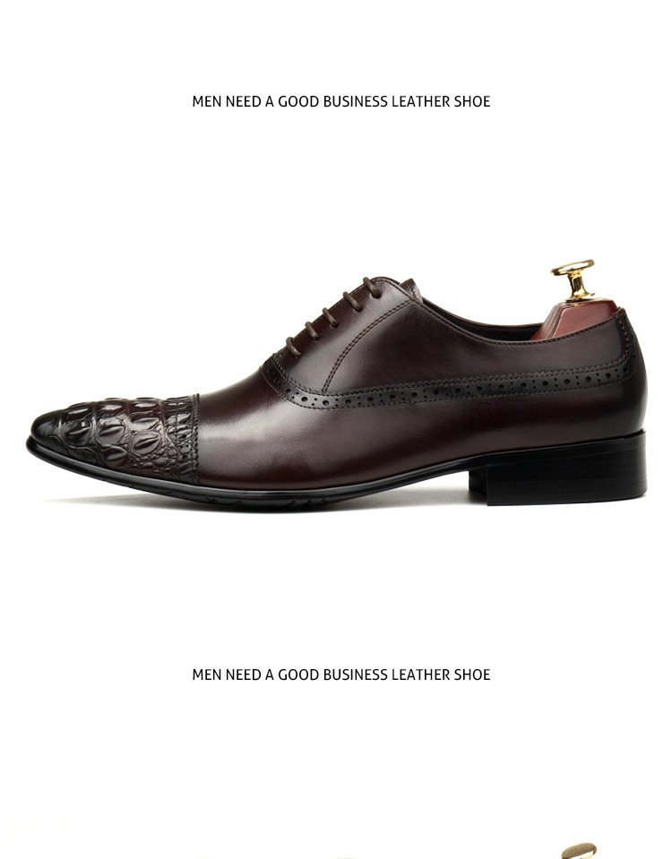 Giày tây da bò này mang phong cách Anh cổ điển, phù hợp cho các dịp làm việc hoặc tiệc tùng. Sản phẩm làm từ chất liệu da bò bền đẹp, bề mặt có họa tiết vân cá sấu tinh tế. Kiểu dáng mũi nhọn cùng thiết kế buộc dây truyền thống tạo vẻ lịch lãm. Bạn có thể kết hợp cùng bộ vest chỉnh tề hoặc quần âu thông thường. Sử dụng bộ đồ nghề đánh bóng giày để vệ sinh và bảo quản da. | Tên sản phẩm: Giày Da Nam Chất Liệu Da Bò Vân Da Cá Sấu Mũi Nhọn Dùng Trong Lễ Cưới - Giày Dép Nam | Mã sản phẩm: H3621 - Giá: 2.660.000đ | Mã nhà sản xuất: SHDI-G06Hình ảnh sản phẩm