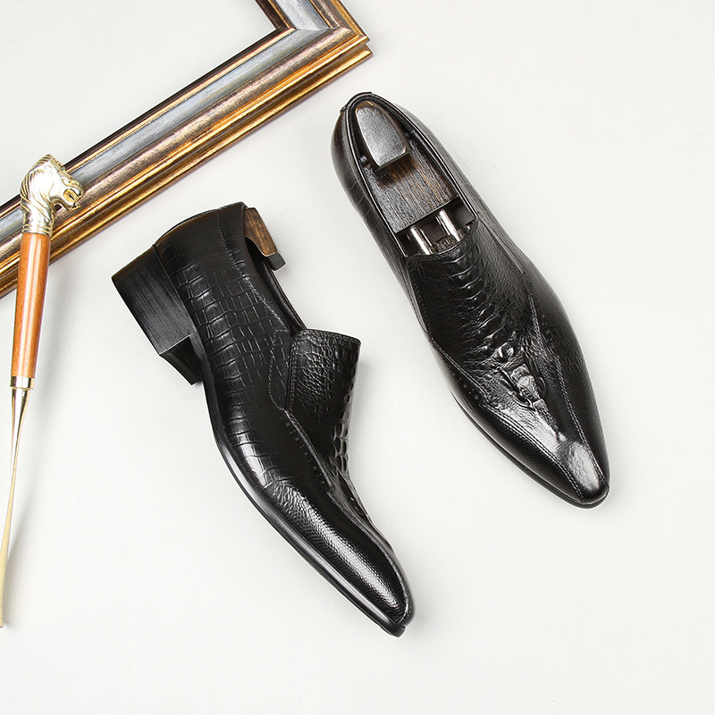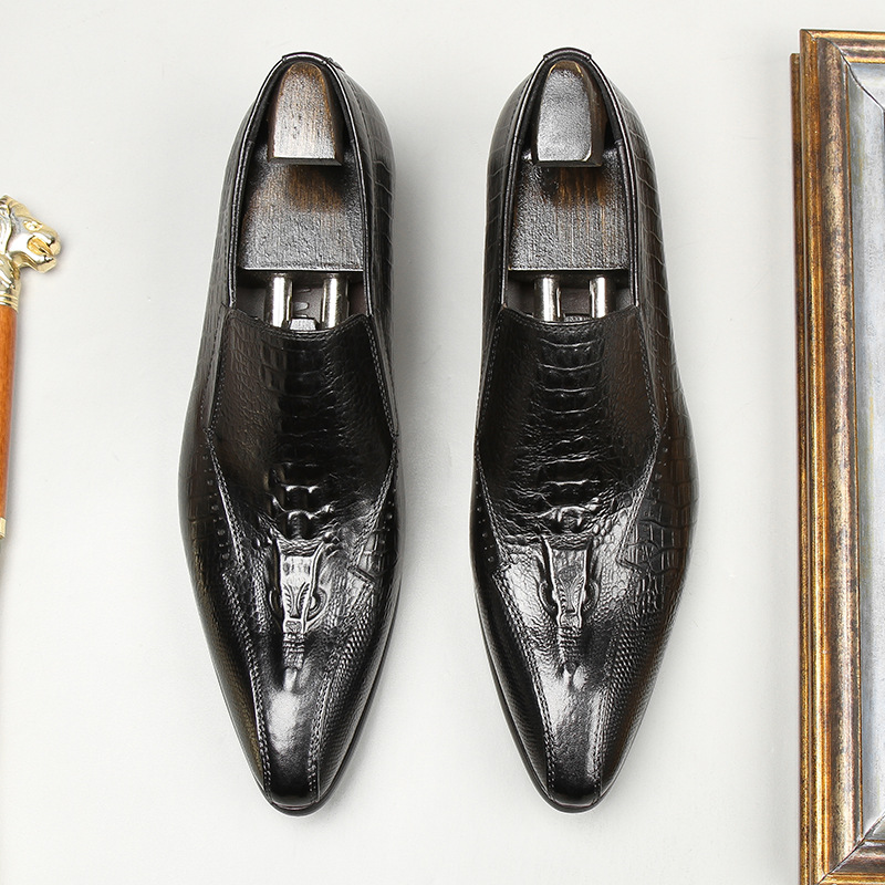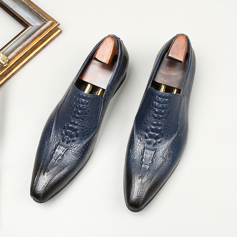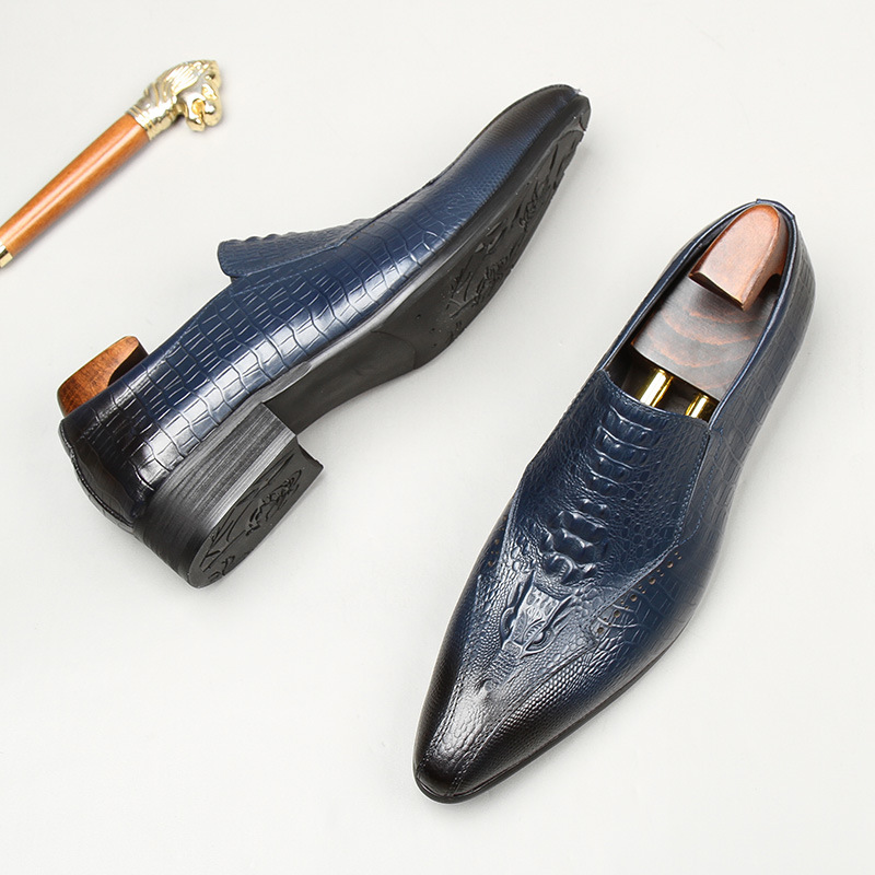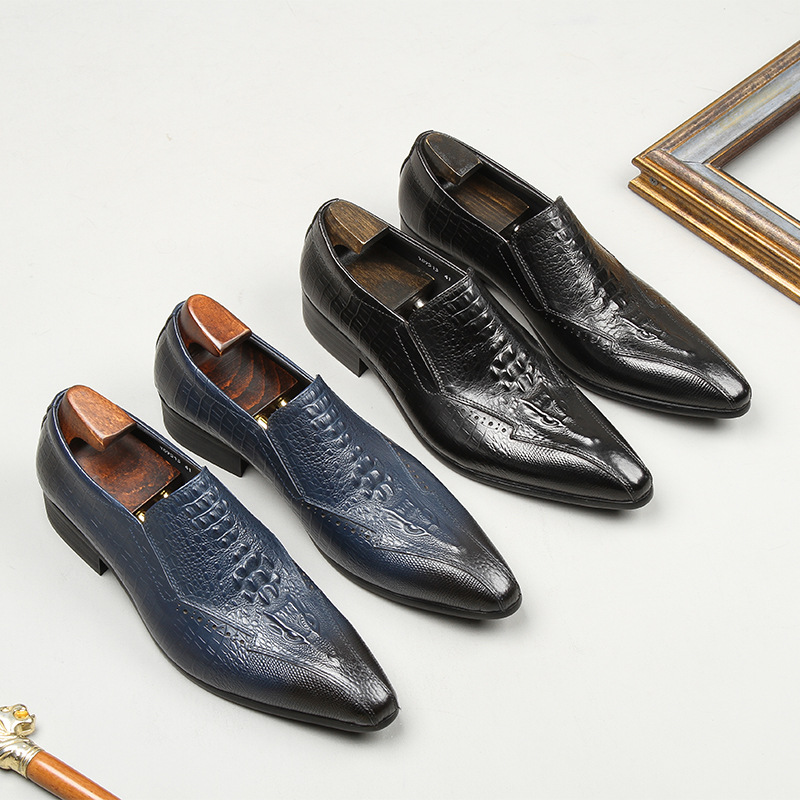 Giày da dành cho nam với phần mũi nhọn tinh tế, tạo nên điểm nhấn khác biệt. Bề mặt da được dập nổi hoa văn mềm mại, tăng thêm vẻ đẹp mạnh mẽ và lịch lãm. Kiểu dáng phù hợp cho những dịp cần trang phục chỉn chu tại nơi làm việc hoặc các buổi gặp mặt. Sản phẩm có đầy đủ các cỡ lớn dành cho nam giới. Khi sử dụng, nên vệ sinh nhẹ nhàng bằng khăn mềm và bảo quản nơi khô ráo. | Tên sản phẩm: Giày Da Nam Chất Liệu Da Bò Big Size Ngoại Cỡ Vân Da Cá Sấu Mũi Nhọn - Giày Dép Nam | Mã sản phẩm: H3622 - Giá: 2.660.000đ | Mã nhà sản xuất: SHDI-G06Hình ảnh sản phẩm