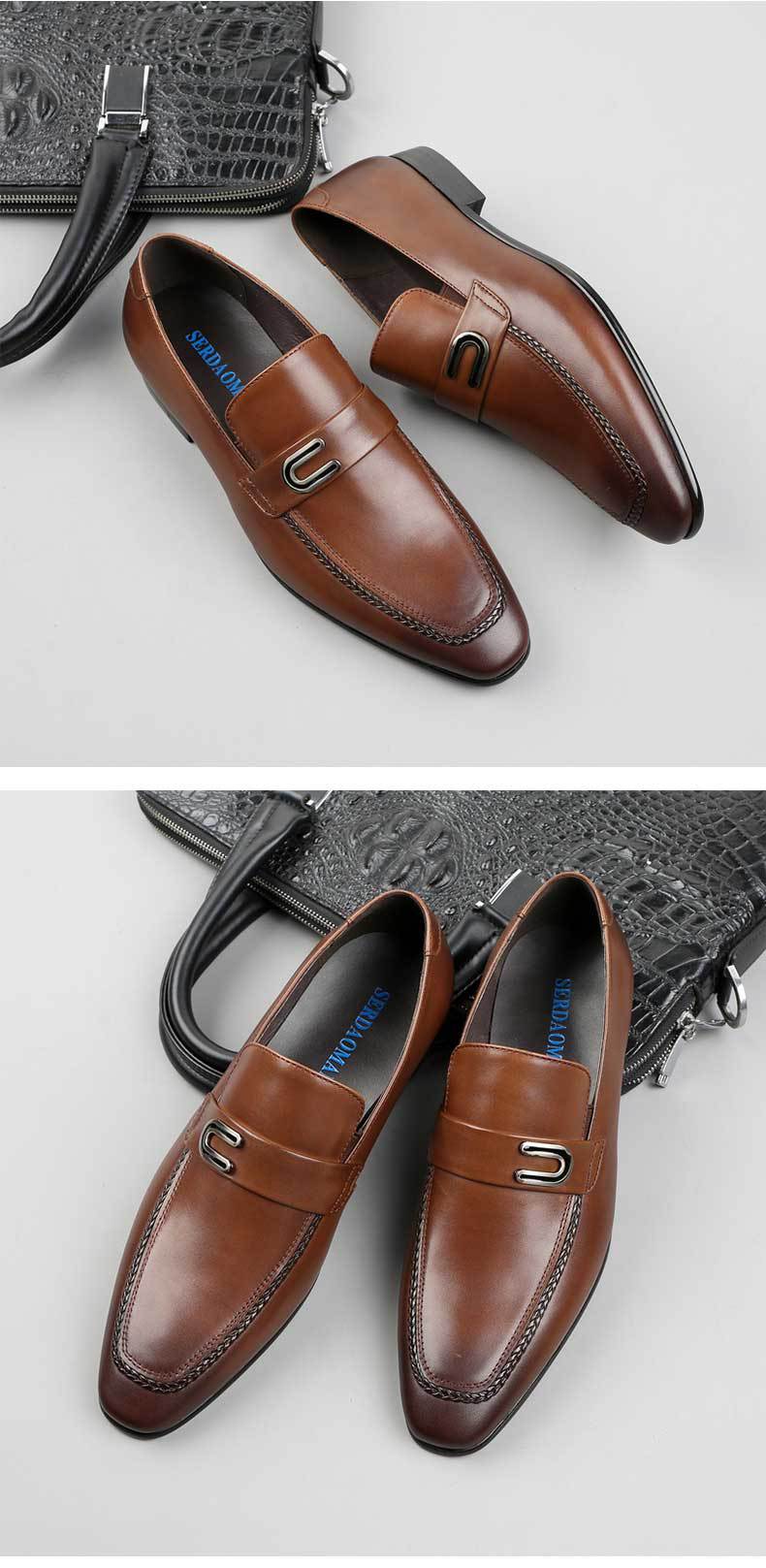 Giày da công sở nam này có kiểu dáng mũi nhọn và ôm chân, mang phong cách Anh hiện đại. Sản phẩm được thiết kế dạng xỏ ngón tiện lợi, giúp mang vào hay tháo ra đều dễ dàng. Chất liệu da có những lỗ thông hơi nhỏ, tạo cảm giác thoáng mát cho đôi chân khi sử dụng cả ngày. Bạn có thể kết hợp cùng quần tây và áo sơ mi để có vẻ ngoài chỉn chu, phù hợp cho môi trường làm việc. | Tên sản phẩm: Giày Da Nam Mũi Nhọn Thoáng Khí - Giày Dép Nam | Mã sản phẩm: H3635 - Giá: 2.660.000đ | Mã nhà sản xuất: SHDI-G06Hình ảnh sản phẩm