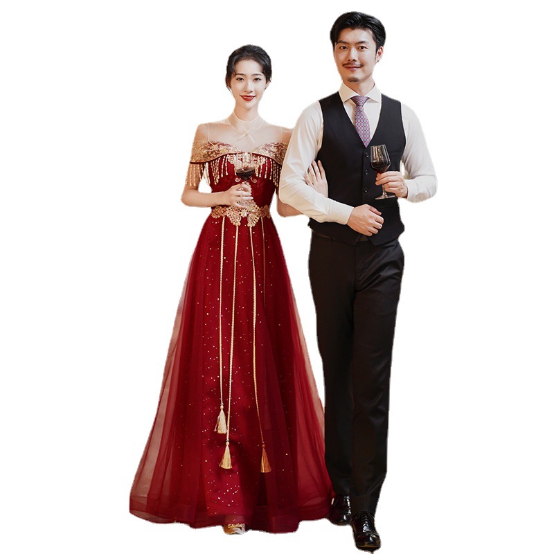 Áo dài cưới dành cho cô dâu trong dịp họp mặt gia đình. Thiết kế dáng dài màu đỏ rực rỡ, điểm nhấn là những đường tua rua duyên dáng tạo sự uyển chuyển khi di chuyển. Kiểu dáng trang trọng phù hợp cho các nghi thức trong ngày trọng đại. Sản phẩm có nhiều kích thước để lựa chọn thoải mái. Mặc kết hợp cùng phụ kiện đơn giản để tôn vinh nét duyên dáng của người mặc. | Tên sản phẩm: Váy Đầm Liền Thân Dự Tiệc Nữ Big Size Ngoại Cỡ Hàng Mùa Hè Dùng Trong Lễ Cưới Ngày Cưới - Thời Trang Nữ | Mã sản phẩm: H4546 - Giá: 1.520.000đ | Mã nhà sản xuất: SHTYOR-G04Hình ảnh sản phẩm