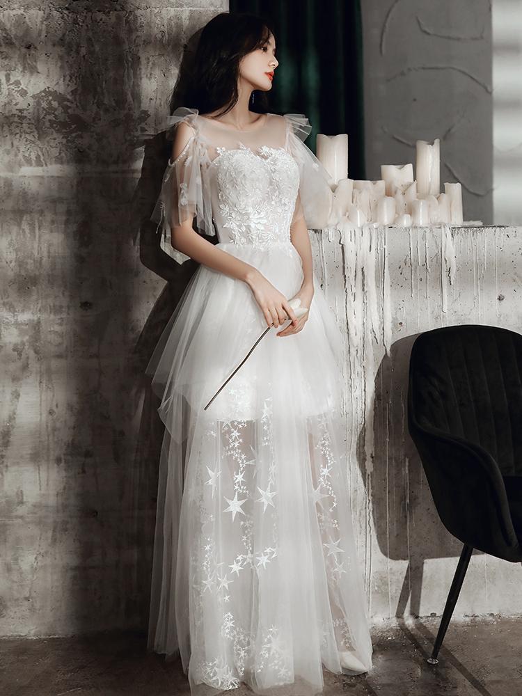 Váy dạ hội màu trắng mang phong cách nhẹ nhàng, lấy cảm hứng từ thiên nhiên, thích hợp cho các buổi tiệc sinh nhật hay sự kiện. Thiết kế dài tạo dáng thanh thoát với phần vải mỏng nhẹ bay bổng, giúp tôn lên vóc dáng. Chất liệu mềm mại mang đến cảm giác dễ chịu. Có thể mặc kết hợp cùng giày sandal và phụ kiện tóc đơn giản để hoàn thiện bộ trang phục. | Tên sản phẩm: Váy Đầm Liền Thân Dự Tiệc Nữ - Thời Trang Nữ | Mã sản phẩm: H4578 - Giá: 1.280.000đ | Mã nhà sản xuất: SHTYOR-G04Hình ảnh sản phẩm
