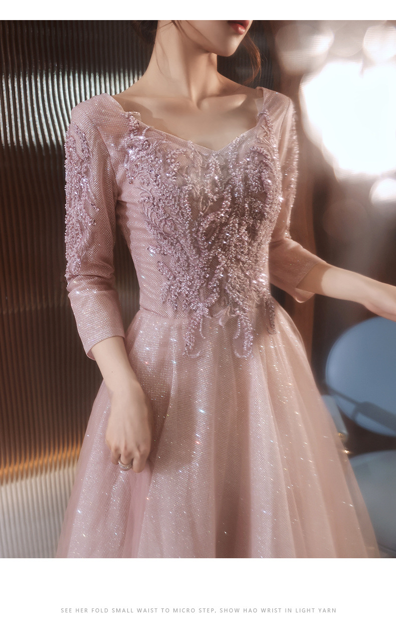 Đầm dự tiệc dáng dài tay dài, thiết kế thanh lịch dành cho các buổi hội nghị, tiệc tối hoặc biểu diễn. Màu hồng phấn dịu nhẹ giúp làn da thêm phần tươi sáng, đồng thời tôn dáng người mặc một cách tự nhiên. Kiểu dáng ôm vừa phải tạo cảm giác thoải mái khi vận động. Sản phẩm phù hợp để mặc trong những dịp cần sự chỉn chu, kết hợp cùng phụ kiện đơn giản để hoàn thiện phong cách. | Tên sản phẩm: Váy Đầm Liền Thân Dự Tiệc Nữ Dài Tay - Thời Trang Nữ | Mã sản phẩm: H4588 - Giá: 1.620.000đ | Mã nhà sản xuất: SHTYOR-G05Hình ảnh sản phẩm