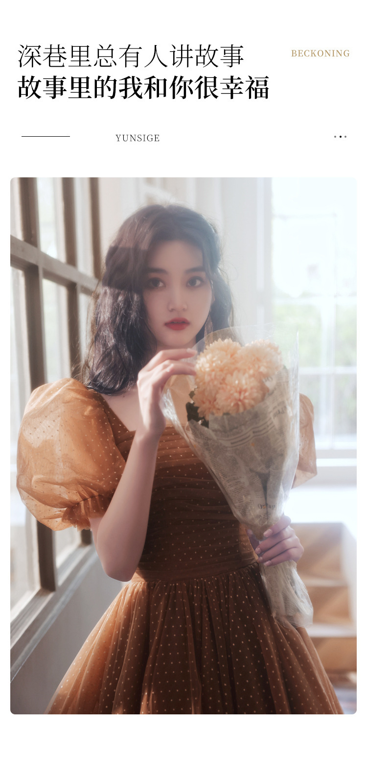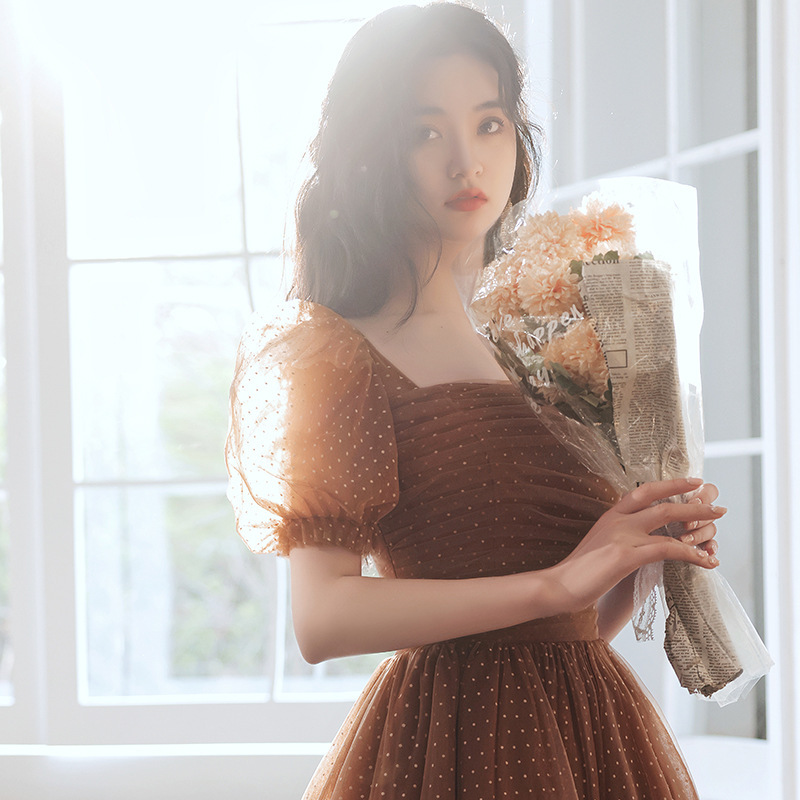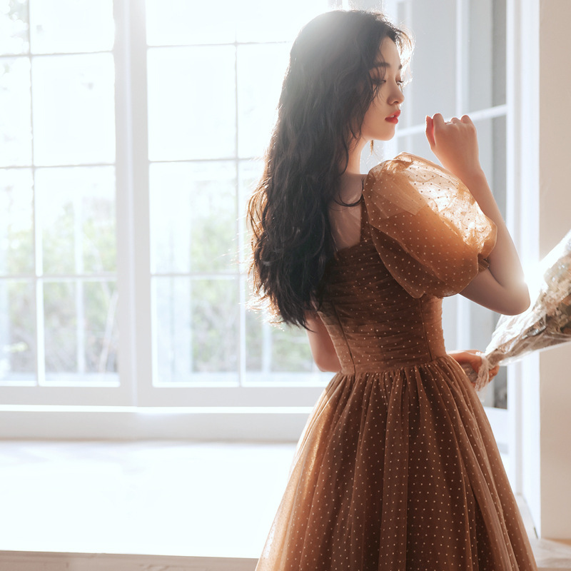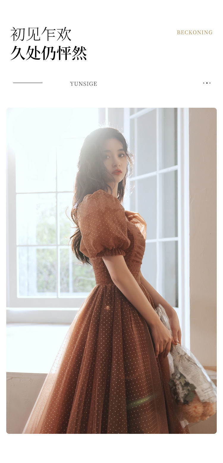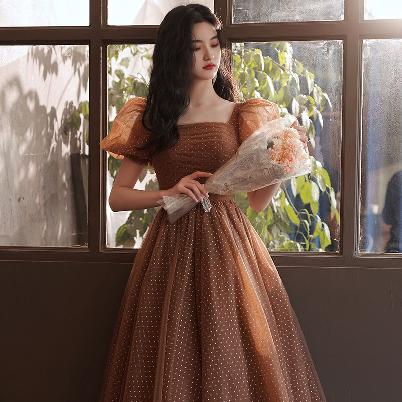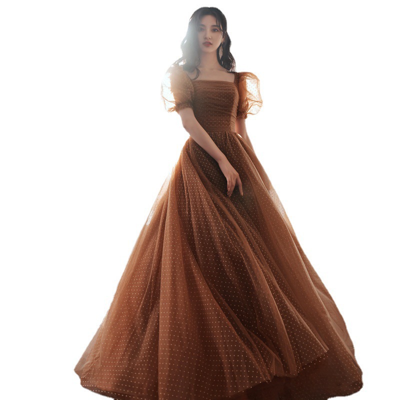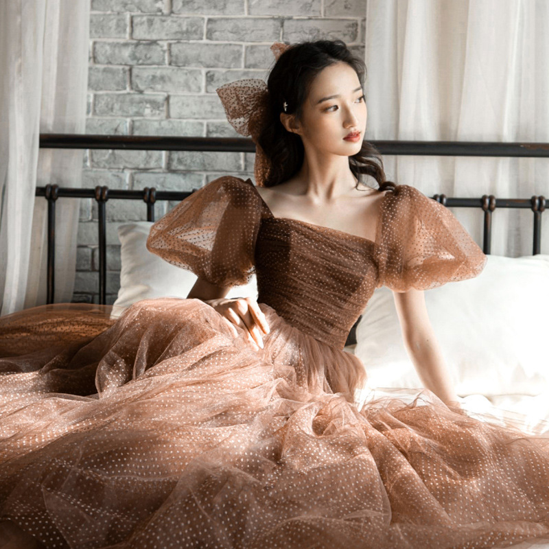 Chiếc đầm dự tiệc màu nâu, mang phong cách hoài cổ nhẹ nhàng, thích hợp cho cô dâu trong ngày cưới hoặc bạn gái đi cùng trong các buổi lễ kết hôn, đám hỏi. Chất vải mỏng nhẹ, thoáng mát, giúp người mặc cảm thấy dễ chịu ngay cả trong thời tiết mùa hè. Thiết kế ôm dáng vừa phải, tôn lên vẻ đẹp dịu dàng. Có thể phối cùng giày cao gót và một vài món trang sức nhỏ để hoàn thiện bộ trang phục. | Tên sản phẩm: Váy Đầm Liền Thân Dự Tiệc Nữ Hàng Mùa Hè Dùng Trong Lễ Cưới Ngày Cưới - Thời Trang Nữ | Mã sản phẩm: H4630 - Giá: 1.380.000đ | Mã nhà sản xuất: SHTYOR-G04Hình ảnh sản phẩm
