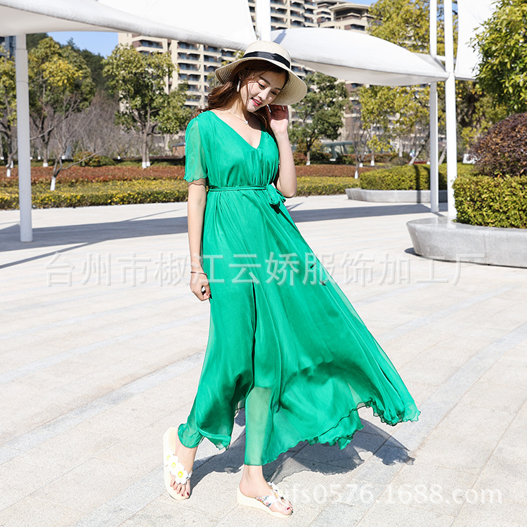 Chiếc váy ngắn tay mới cho những chuyến du lịch biển. Thiết kế kiểu dáng phóng khoáng, cổ chữ V tôn dáng. Chất vải mỏng nhẹ, thoáng mát tạo cảm giác dễ chịu. Tà váy xòe rộng giúp bạn thoải mái vận động. Có thể mặc đi chơi, dạo biển hoặc kết hợp với các phụ kiện. Dễ dàng giặt sạch và bảo quản, thích hợp cho những ngày hè. | Tên sản phẩm: Váy Đầm Liền Thân Nữ Chất Liệu Vải Voan Ngắn Tay Cổ Chữ V - Thời Trang Nữ | Mã sản phẩm: H5117 - Giá: 1.020.000đ | Mã nhà sản xuất: TARYUN-G03Hình ảnh sản phẩm
