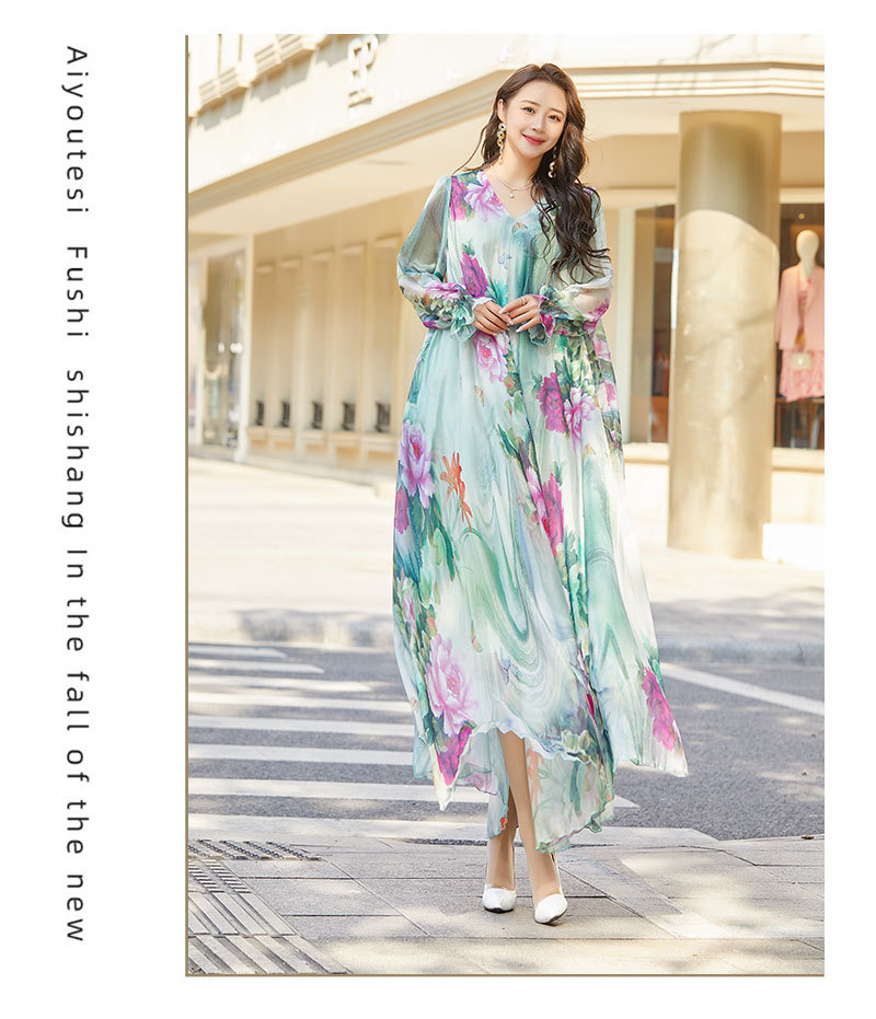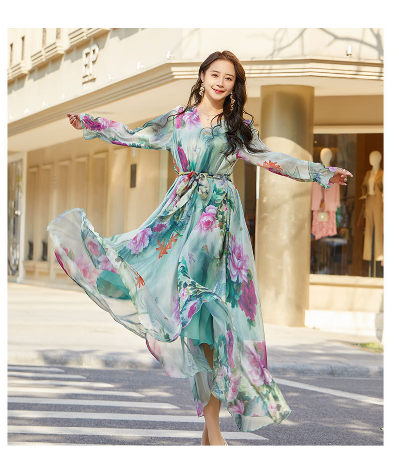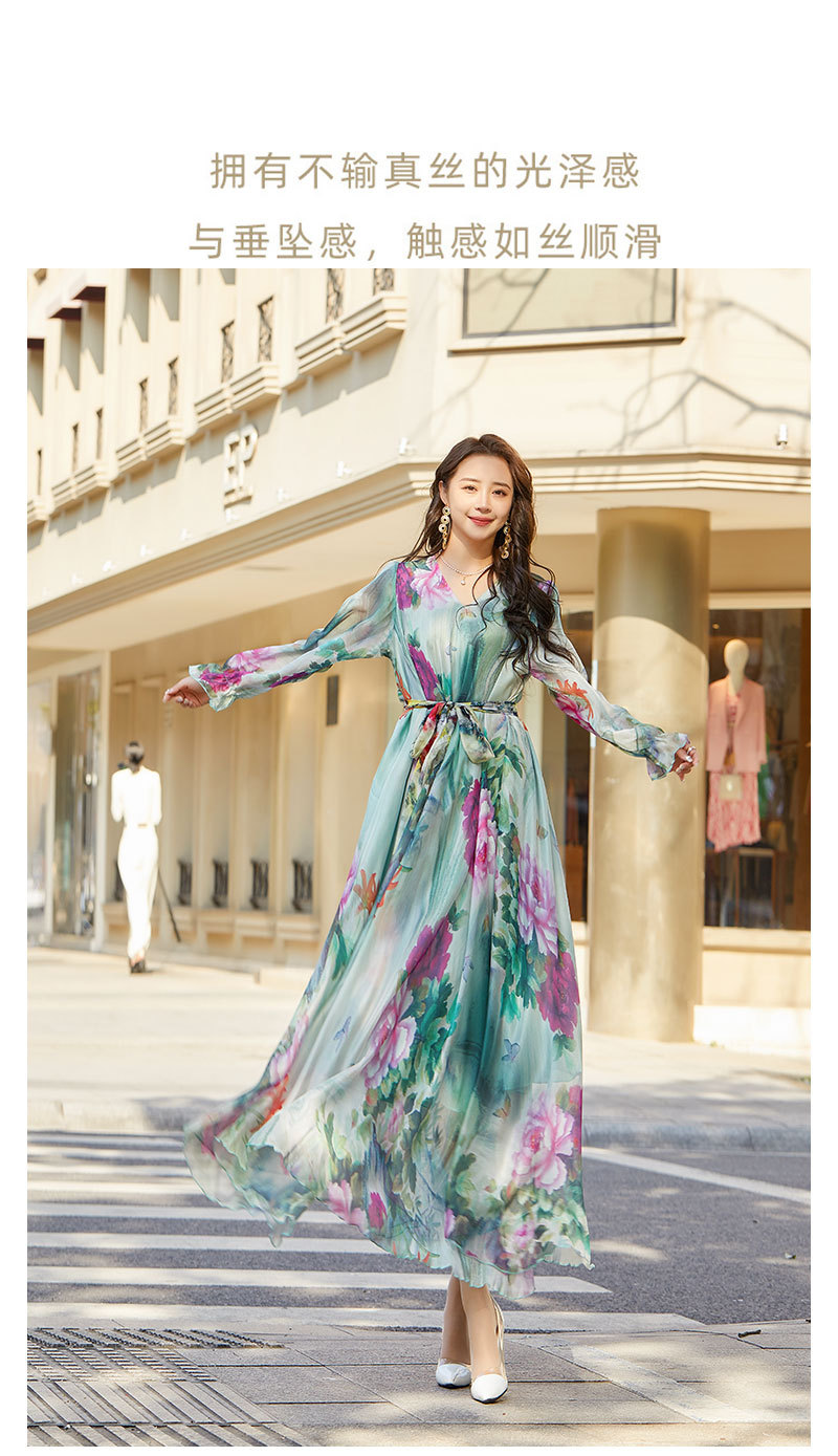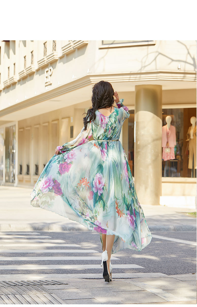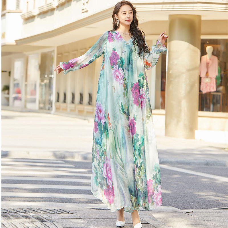 Chiếc váy dài tay dành cho những ngày hè, được may từ chất liệu voan mềm mại và thoáng mát. Kiểu dáng thướt tha, phù hợp cho các dịp dạo phố, đi chơi hoặc tận hưởng những chuyến du lịch biển. Bạn có thể mặc một mình hoặc kết hợp cùng giày sandal và mũ rộng vành để tạo nên một vẻ ngoại hình ấn tượng. | Tên sản phẩm: Váy Đầm Liền Thân Nữ Chất Liệu Vải Voan Dài Tay Hàng Mùa Hè Phong Cách Âu Mỹ Đồ Đi Biển Váy Maxi - Thời Trang Nữ | Mã sản phẩm: H5194 - Giá: 890.000đ | Mã nhà sản xuất: TARYUN-G03Hình ảnh sản phẩm