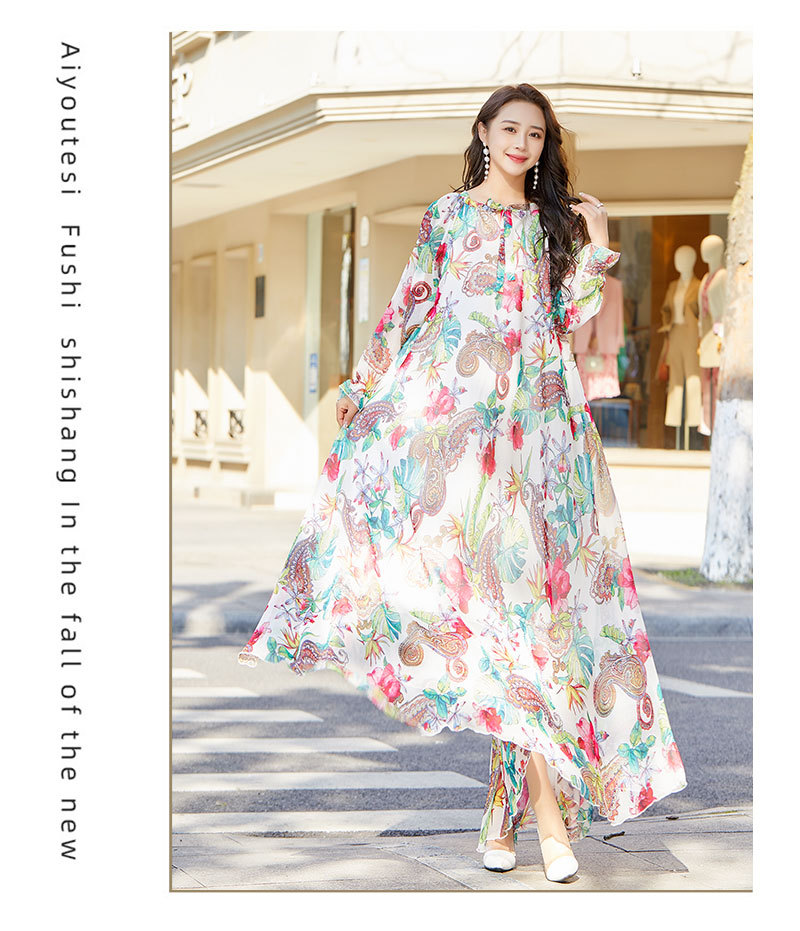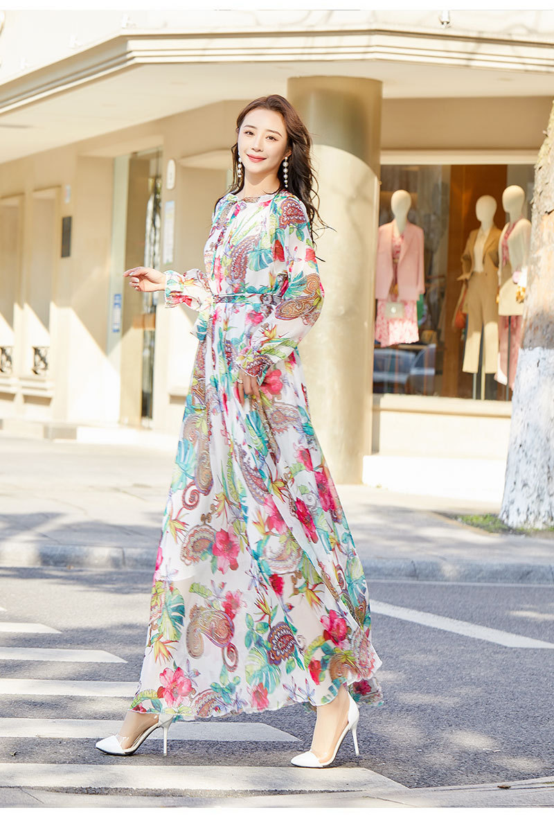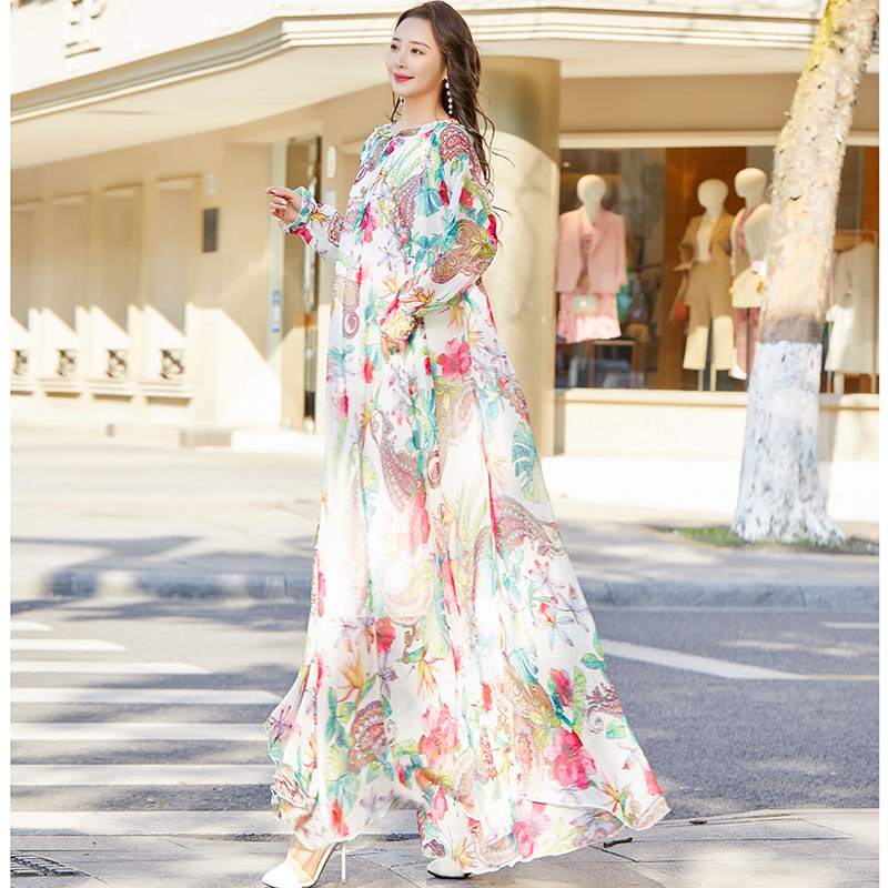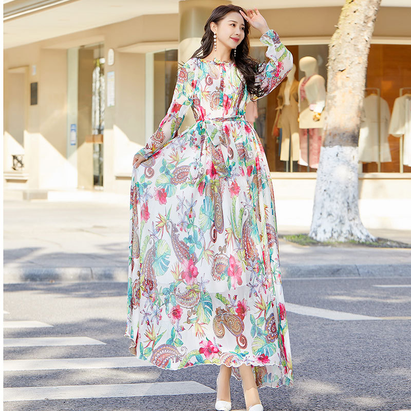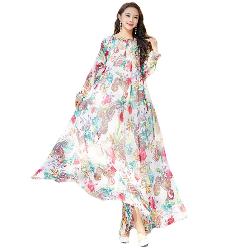 Chiếc đầm dài tay cho các cô gái, chất vải mỏng nhẹ tạo cảm giác thoải mái và dễ chịu khi mặc vào mùa hè. Kiểu dáng phóng khoáng, nữ tính, phù hợp cho những lần dạo biển hay đi chơi. Bạn có thể phối cùng dép mỏng và một chiếc mũ rộng vành để tôn lên vẻ đẹp của trang phục. Sản phẩm dễ mặc, dễ phối đồ và thuận tiện cho các hoạt động ngoài trời. | Tên sản phẩm: Váy Đầm Liền Thân Nữ Chất Liệu Vải Voan Dài Tay Hàng Mùa Hè Phong Cách Âu Mỹ Đồ Đi Biển Váy Maxi - Thời Trang Nữ | Mã sản phẩm: H5220 - Giá: 890.000đ | Mã nhà sản xuất: TARYUN-G03Hình ảnh sản phẩm