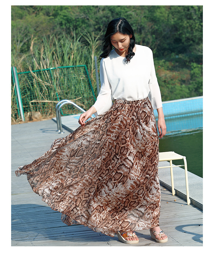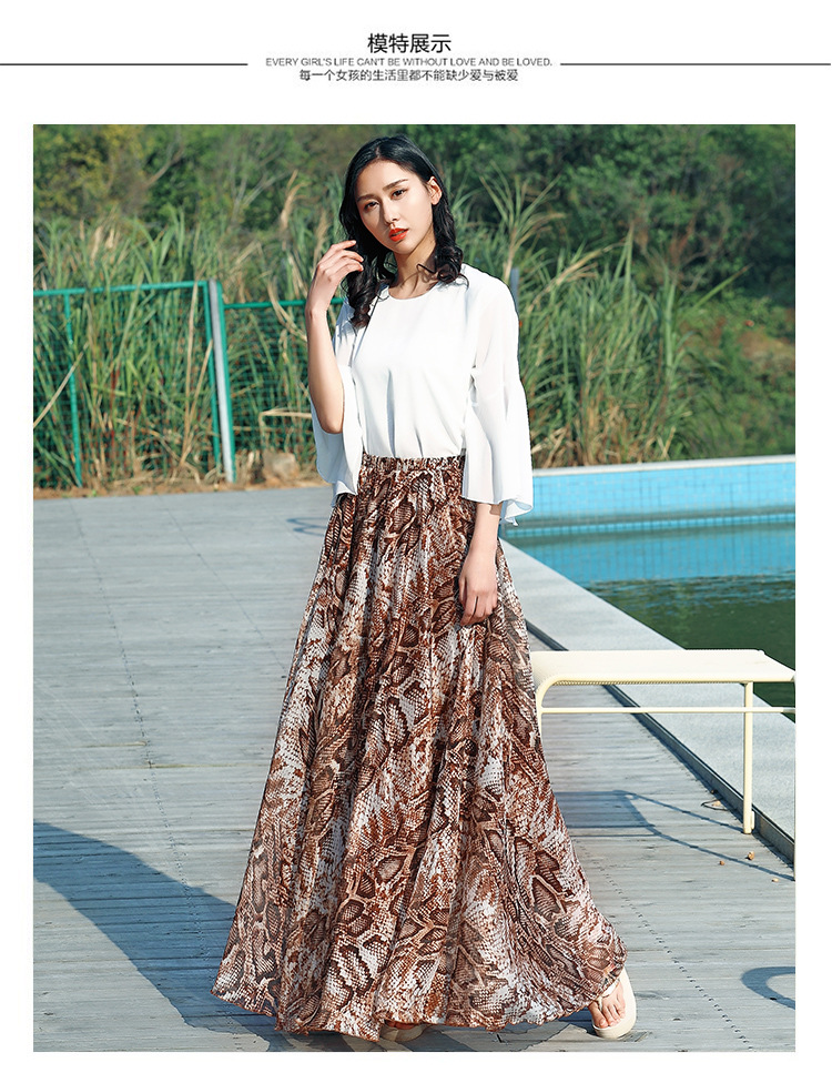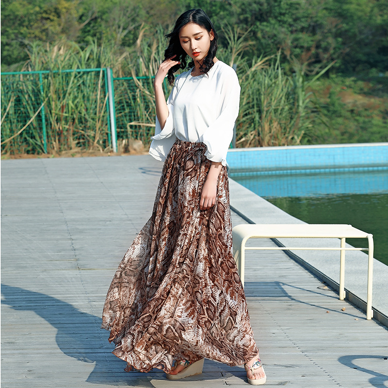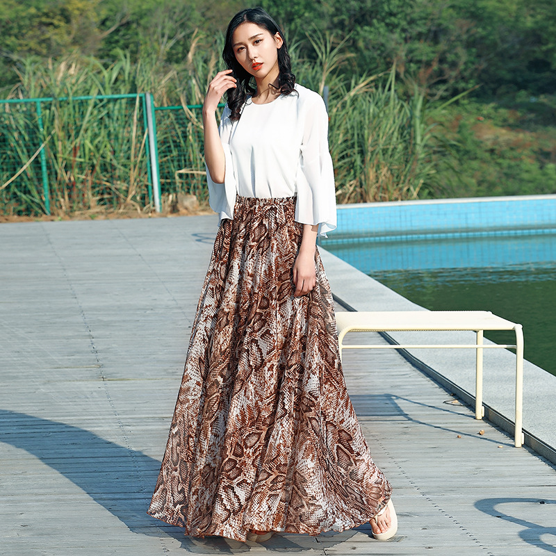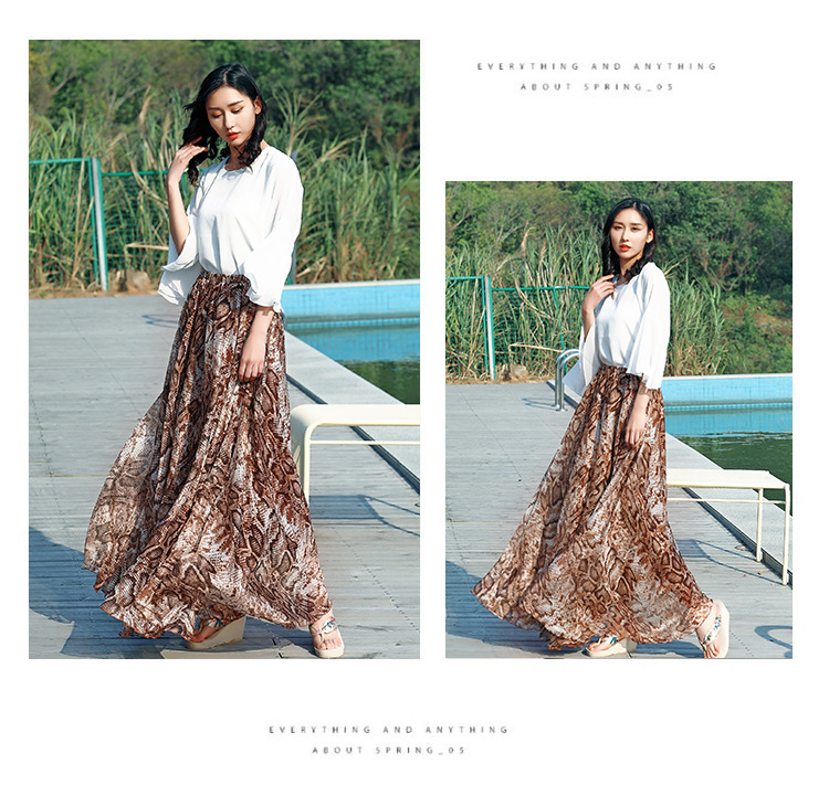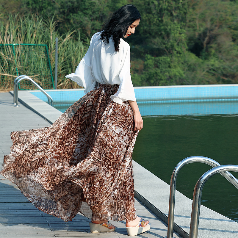 Chiếc váy dài mang phong cách mới lạ với điểm nhấn là họa tiết da thú kết hợp cùng những hình in độc đáo. Chất vải mỏng nhẹ, thoáng mát, rất phù hợp cho những ngày hè. Kiểu dáng trung dài thời thượng, dễ dàng phối cùng áo phông hoặc áo sơ mi. Bạn có thể mặc đi làm, đi chơi hay dự các buổi gặp mặt thân mật. | Tên sản phẩm: Chân Váy Đầm Nữ Chất Liệu Vải Voan Họa Tiết Hoa Hàng Mùa Hè Phong Cách Âu Mỹ - Thời Trang Nữ | Mã sản phẩm: H5246 - Giá: 610.000đ | Mã nhà sản xuất: TARYUN-G02Hình ảnh sản phẩm