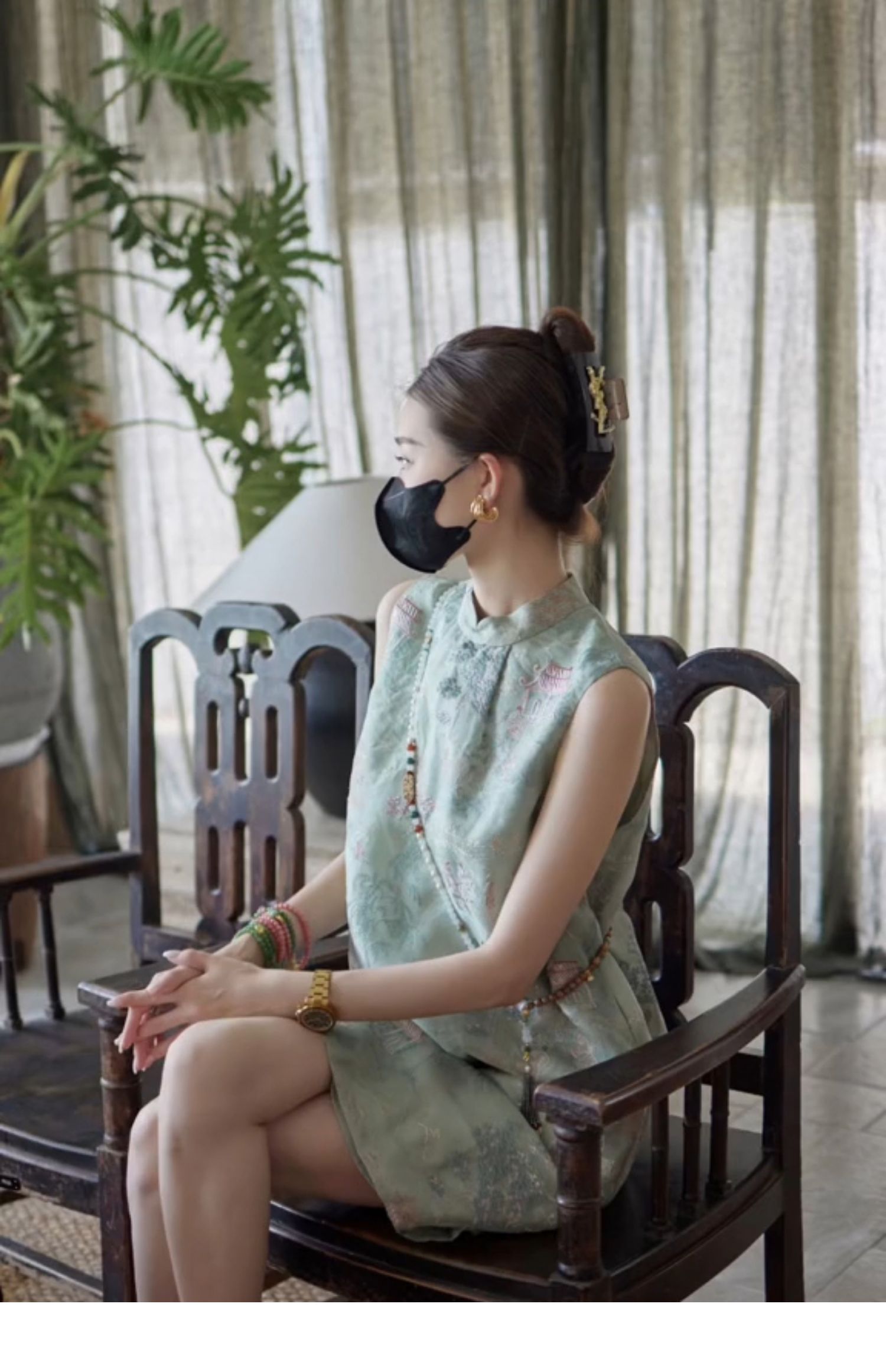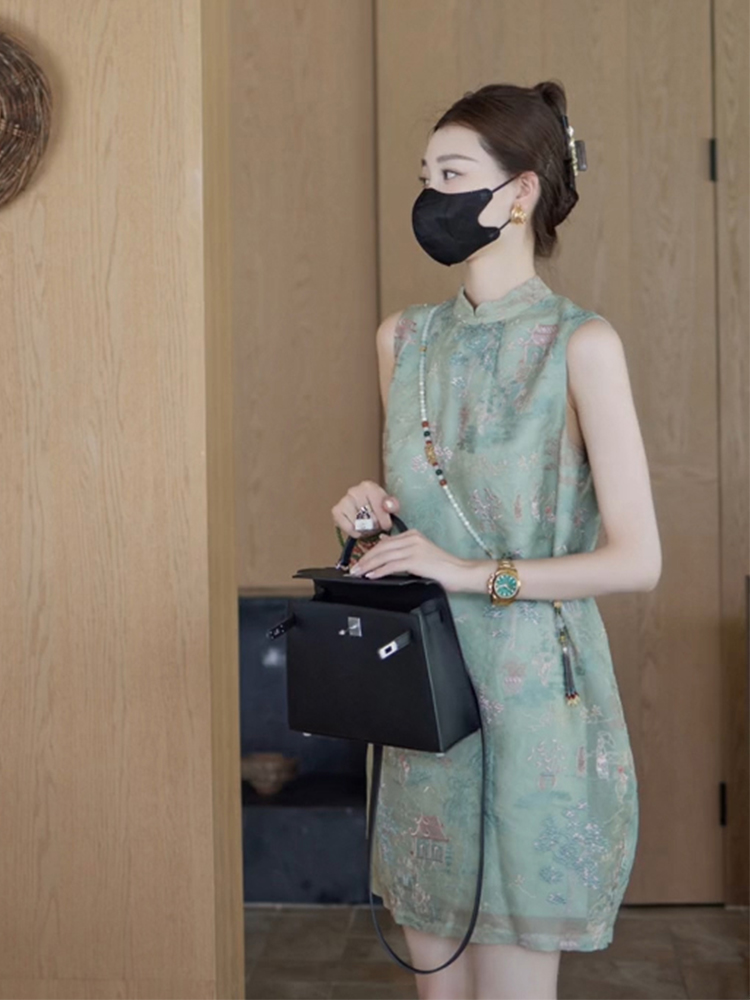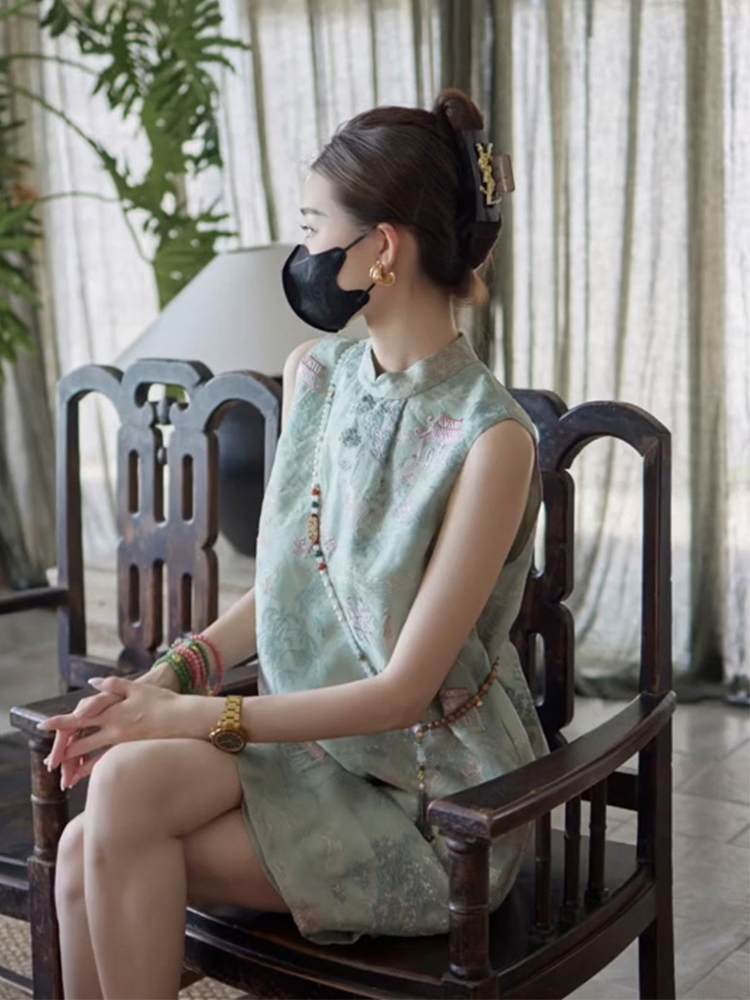 Chiếc đầm này kết hợp nét đẹp truyền thống với phong cách hiện đại. Thiết kế không tay, dáng suông nhẹ nhàng, rất phù hợp cho mùa hè. Điểm nhấn đặc biệt là hàng cúc cài tinh xảo dọc theo v và eo, tạo nên vẻ duyên dáng. Chất vải mềm mại, màu xanh lá dịu mát mang lại cảm giác tươi trẻ. Có thể mặc khi đi chơi, dự tiệc nhẹ hoặc trong những dịp thường ngày. | Tên sản phẩm: Váy Đầm Liền Thân Nữ Hàng Mùa Hè Phục Cổ Cổ Điển - Thời Trang Nữ | Mã sản phẩm: H5437 - Giá: 2.390.000đ | Mã nhà sản xuất: SWREF-G05Hình ảnh sản phẩm