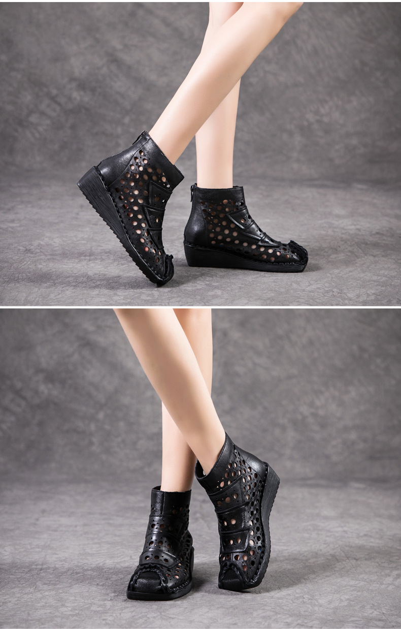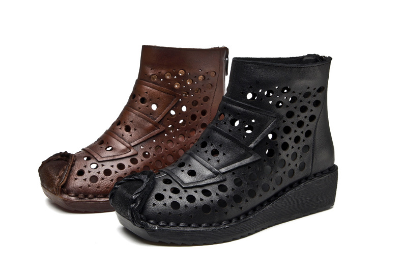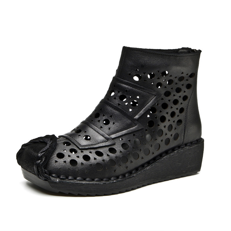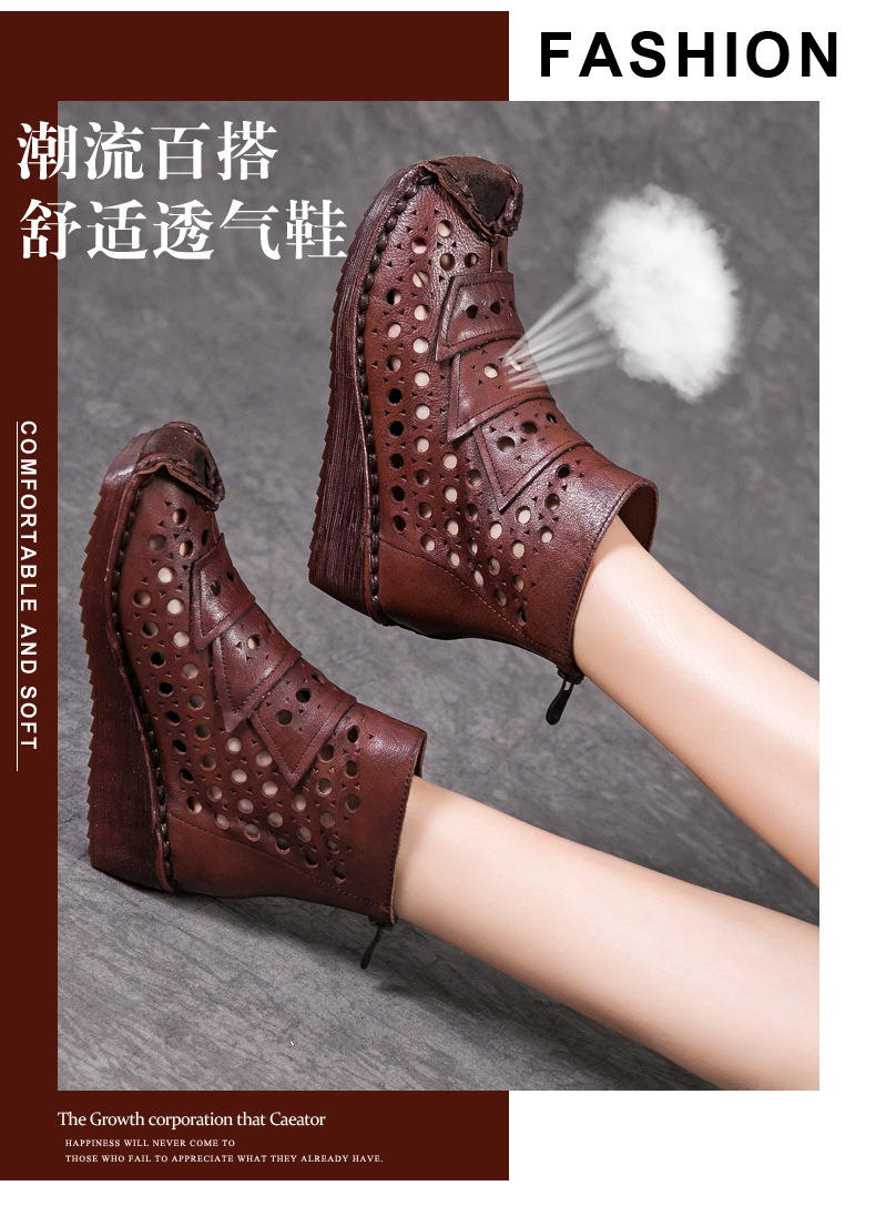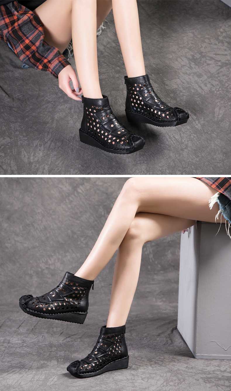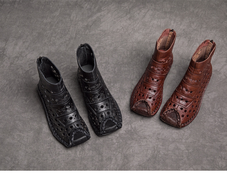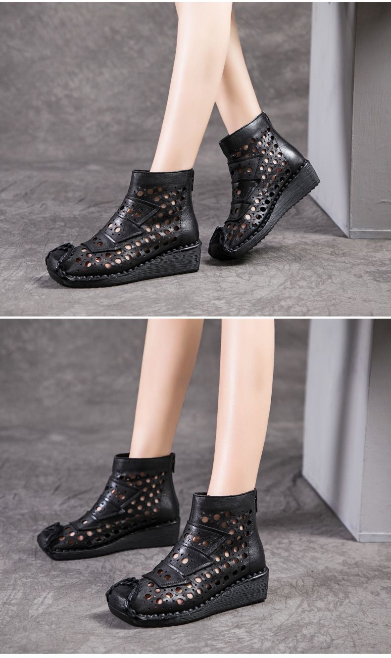 Đôi bốt mùa hè này mang phong cách cổ điển với phần gót dốc thoải mái. Sản phẩm được làm từ chất da bò mềm mại bền đẹp, phần thân cao có các lỗ đục giúp đôi chân luôn thông thoáng. Kiểu dáng được may viền tinh tế, phù hợp để diện cùng nhiều loại trang phục. Bạn có thể sử dụng hằng ngày, dễ dàng phối hợp với quần jeans hoặc váy để tạo điểm nhấn. | Tên sản phẩm: Giày Dép Sandal Nữ Chất Liệu Da Bò Đế Xuồng Hàng Mùa Hè Phục Cổ Cổ Điển - Giày Dép Nữ | Mã sản phẩm: H5904 - Giá: 2.290.000đ | Mã nhà sản xuất: SHNTEZ-G05Hình ảnh sản phẩm