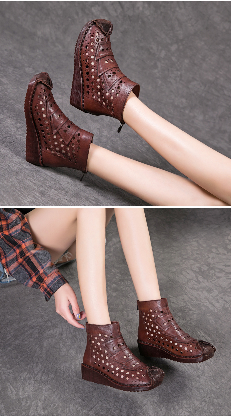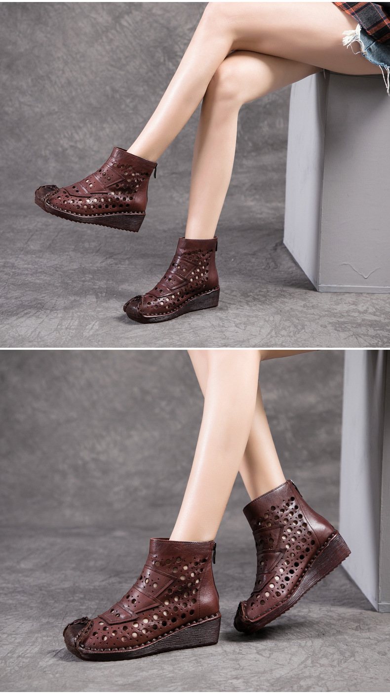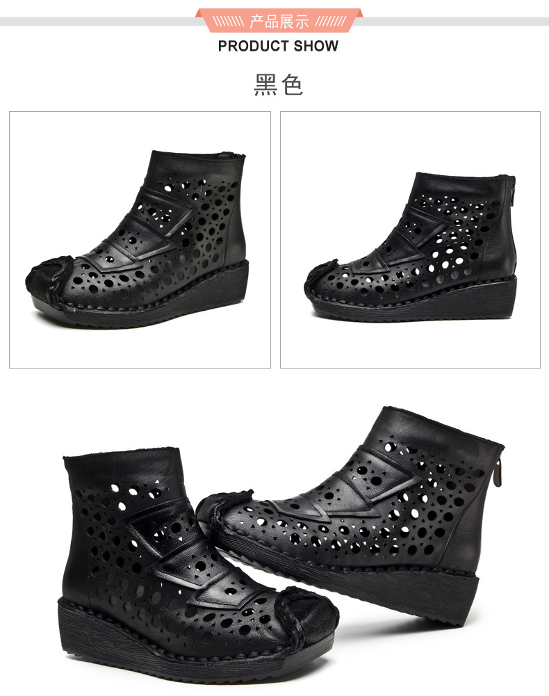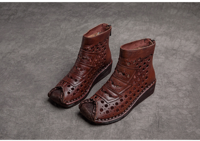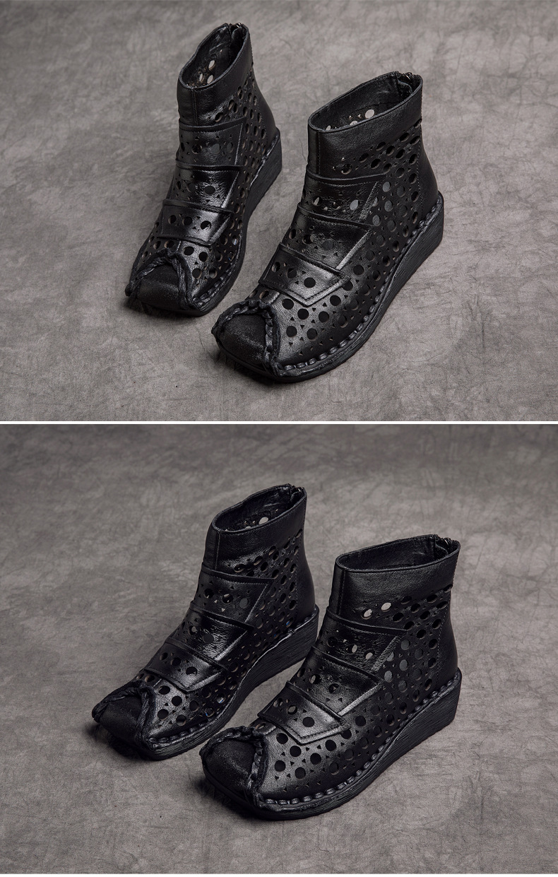 Đôi bốt mùa hè này mang phong cách cổ điển với phần gót dốc thoải mái. Sản phẩm được làm từ chất da bò mềm mại bền đẹp, phần thân cao có các lỗ đục giúp đôi chân luôn thông thoáng. Kiểu dáng được may viền tinh tế, phù hợp để diện cùng nhiều loại trang phục. Bạn có thể sử dụng hằng ngày, dễ dàng phối hợp với quần jeans hoặc váy để tạo điểm nhấn. | Tên sản phẩm: Giày Dép Sandal Nữ Chất Liệu Da Bò Đế Xuồng Hàng Mùa Hè Phục Cổ Cổ Điển - Giày Dép Nữ | Mã sản phẩm: H5904 - Giá: 2.290.000đ | Mã nhà sản xuất: SHNTEZ-G05Hình ảnh sản phẩm