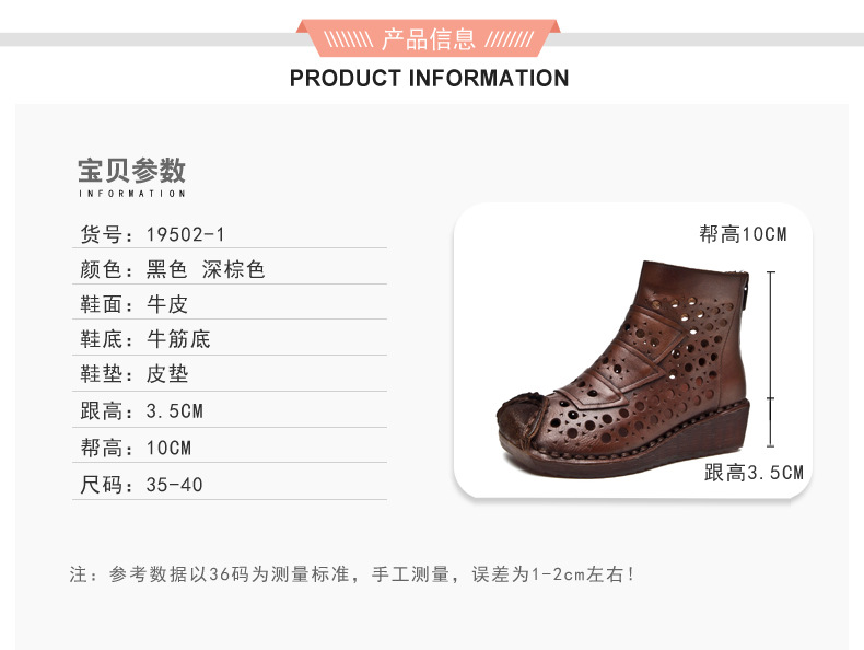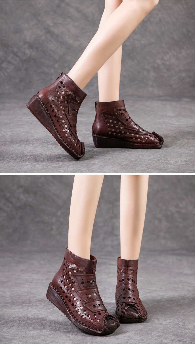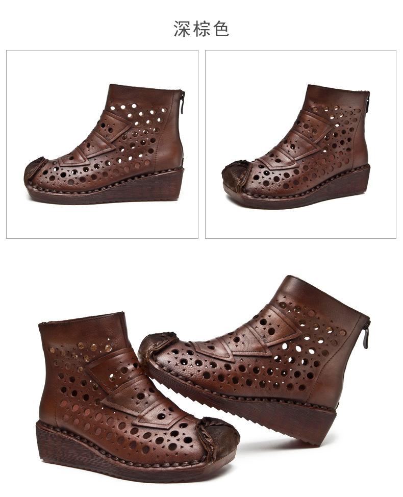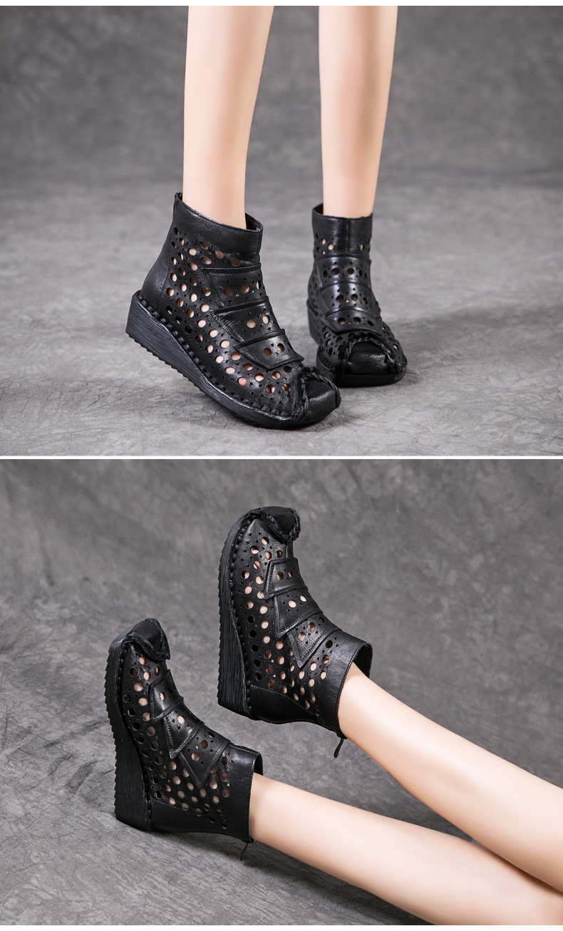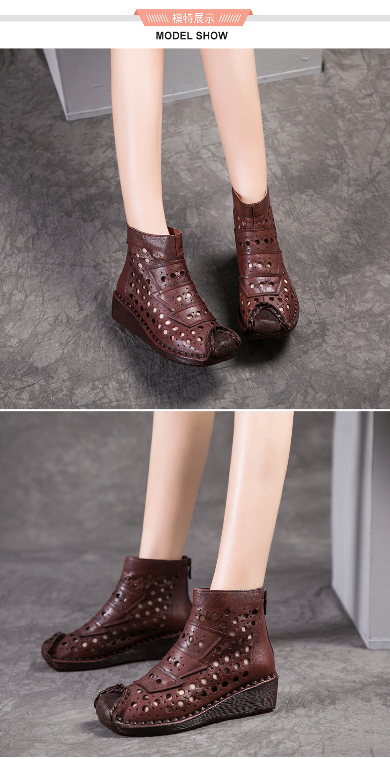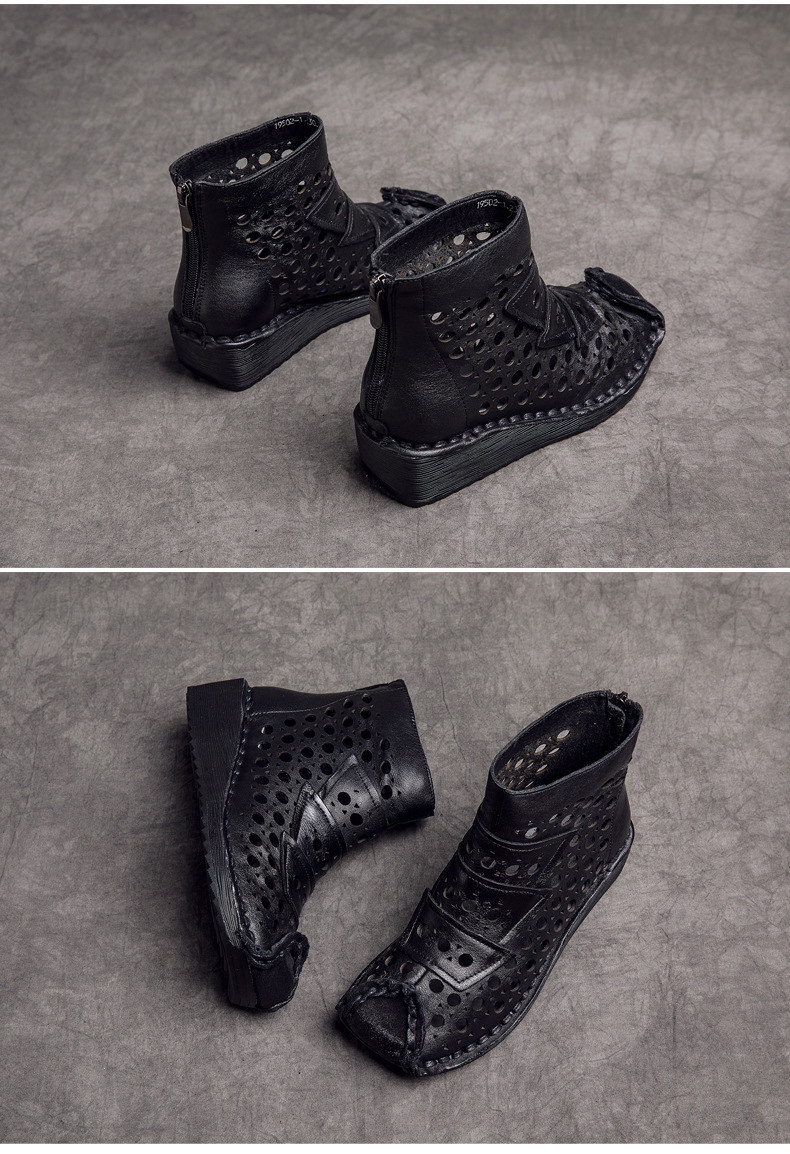 Đôi bốt mùa hè này mang phong cách cổ điển với phần gót dốc thoải mái. Sản phẩm được làm từ chất da bò mềm mại bền đẹp, phần thân cao có các lỗ đục giúp đôi chân luôn thông thoáng. Kiểu dáng được may viền tinh tế, phù hợp để diện cùng nhiều loại trang phục. Bạn có thể sử dụng hằng ngày, dễ dàng phối hợp với quần jeans hoặc váy để tạo điểm nhấn. | Tên sản phẩm: Giày Dép Sandal Nữ Chất Liệu Da Bò Đế Xuồng Hàng Mùa Hè Phục Cổ Cổ Điển - Giày Dép Nữ | Mã sản phẩm: H5904 - Giá: 2.290.000đ | Mã nhà sản xuất: SHNTEZ-G05Hình ảnh sản phẩm