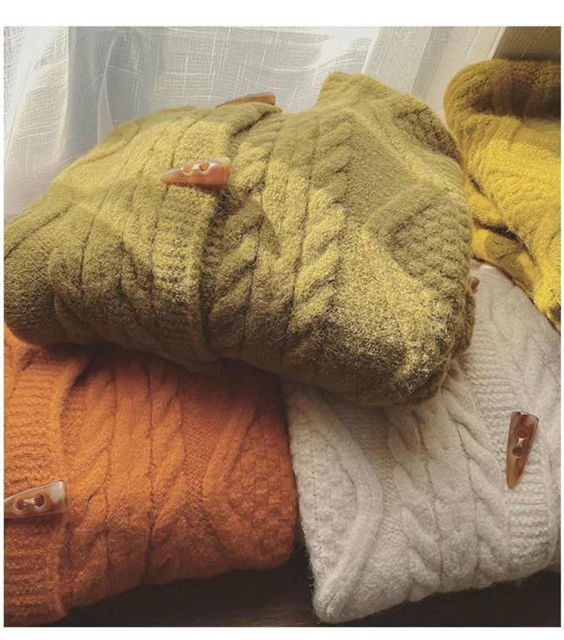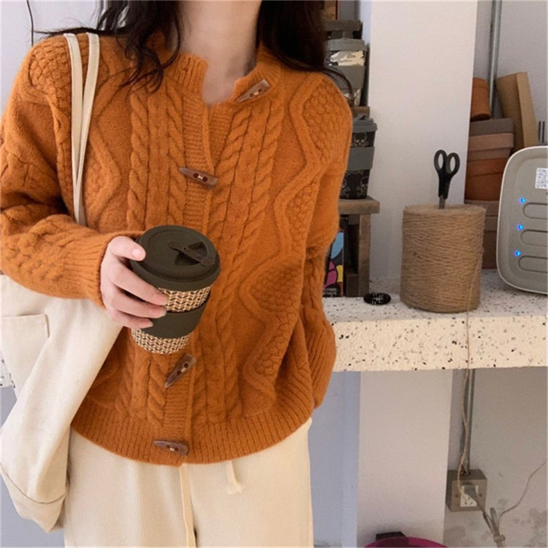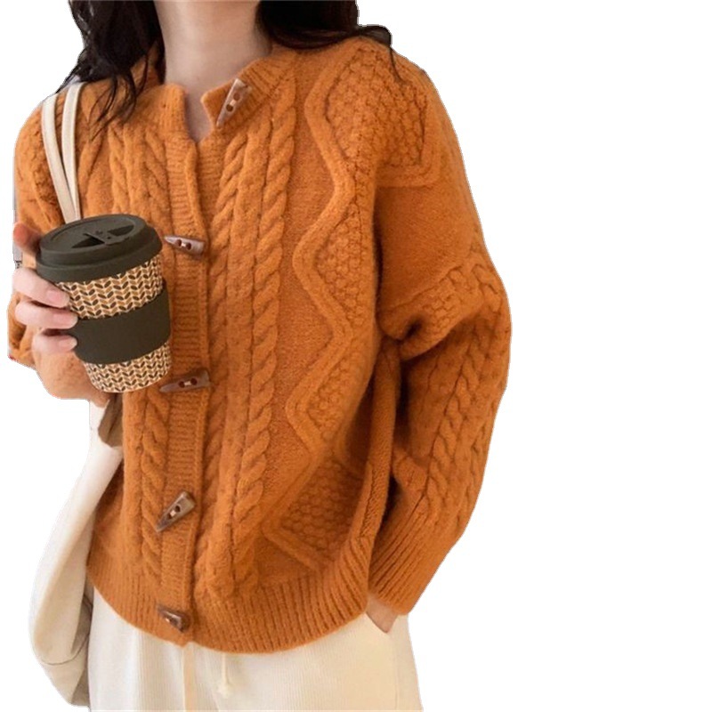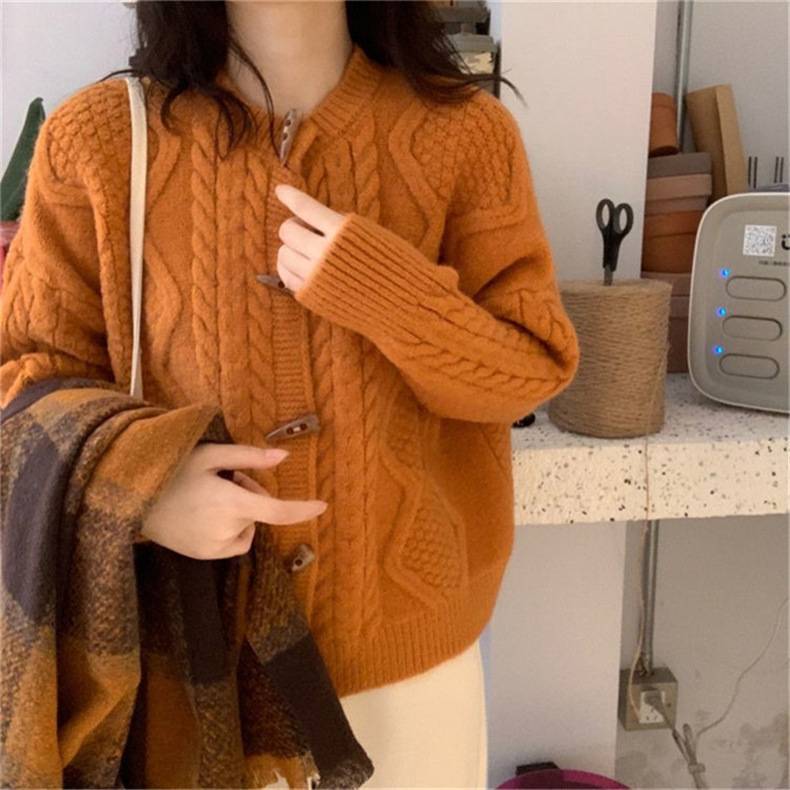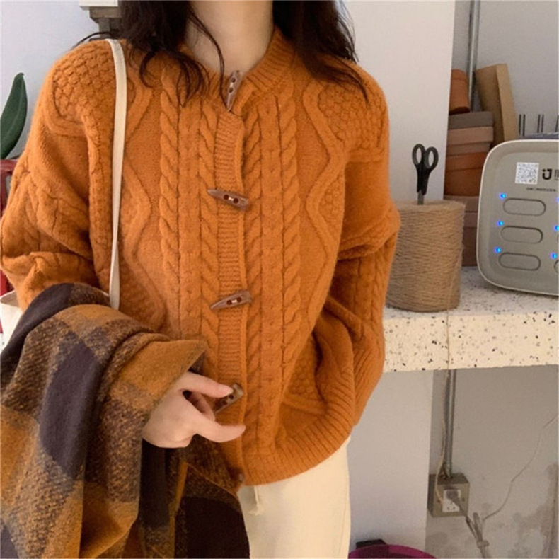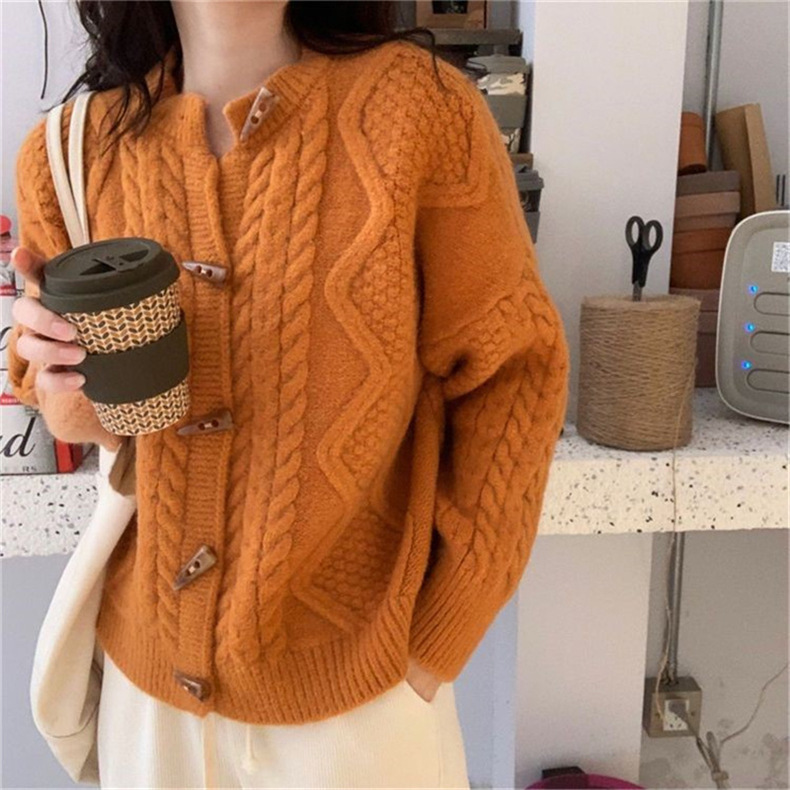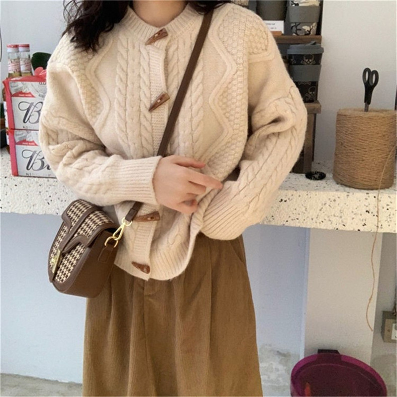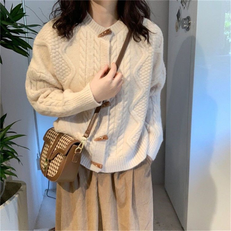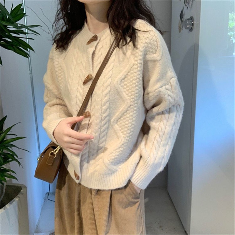 Áo khoác len dệt kim dáng rộng, kiểu dáng thư thái phù hợp cho mùa thu đông. Sản phẩm có cổ tròn, cài cúc hình sừng bò đặc trưng và họa tiết dây thừng bện tạo điểm nhấn. Chất liệu len mềm mại giữ ấm tốt, form áo thoải mái dễ mặc. Có thể mặc như áo khoác nhẹ bên ngoài áo thun hoặc áo sơ mi, phối cùng quần jeans hay váy đều phù hợp. | Tên sản phẩm: Áo Len Nữ Áo Len Dáng Dộng Họa Tiết Hoa Hàng Mùa Xuân Thu Đông Phong Cách Hàn Quốc - Thời Trang Nữ | Mã sản phẩm: H6626 - Giá: 590.000đ | Mã nhà sản xuất: TOREN-G01Hình ảnh sản phẩm