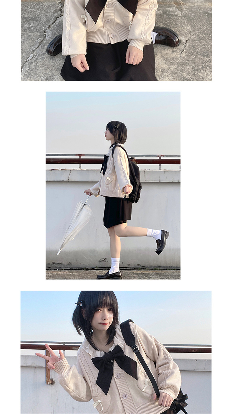 Áo khoác len mỏng dáng ngắn, mang phong cách học sinh trẻ trung. Điểm nhấn là họa tiết nơ bướm nổi bật ở ngực, tạo nét đáng yêu. Chất liệu len đan mềm mại, giữ ấm nhẹ cho những ngày giao mùa. Có thể mặc như áo khoác bên ngoài áo sơ mi hoặc váy, phù hợp đi học hay dạo phố. Kiểu dáng dễ thương, dễ phối đồ. | Tên sản phẩm: Áo Len Nữ Áo Len Dáng Dộng Hàng Mùa Xuân Thu Đông - Thời Trang Nữ | Mã sản phẩm: H6679 - Giá: 510.000đ | Mã nhà sản xuất: TOREN-G01Hình ảnh sản phẩm