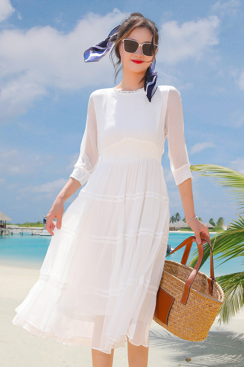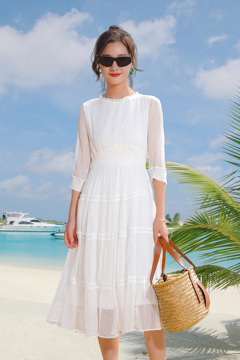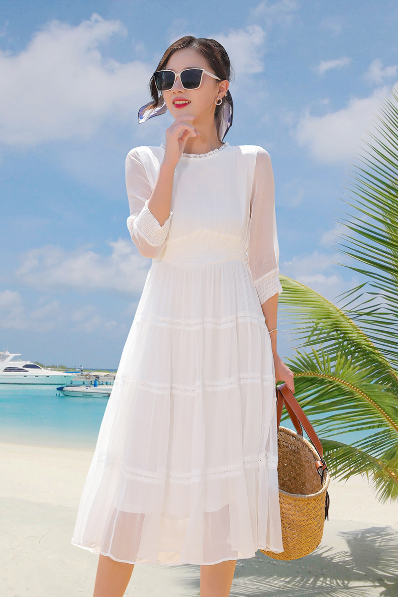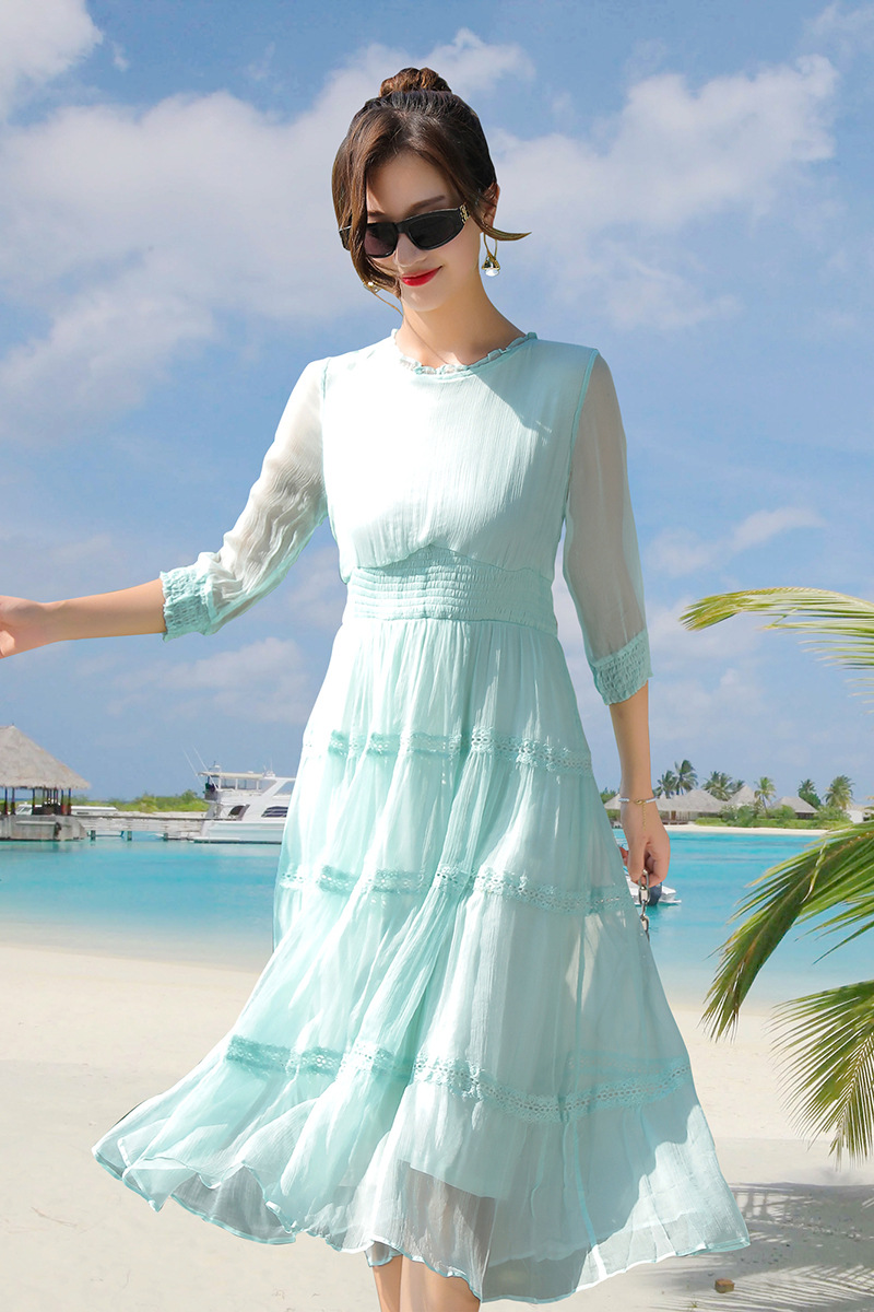 Chiếc đầm dài này được dệt từ chất liệu tơ tằm tự nhiên, mang đến cảm giác mềm mại và thoáng mát khi mặc. Thiết kế có màu trơn, dễ dàng phối hợp với nhiều loại phụ kiện khác nhau, phù hợp cho môi trường công sở hoặc những dịp gặp mặt. Kiểu dáng ôm nhẹ cơ thể, tôn lên vẻ thanh lịch. Sản phẩm cần được giặt tay nhẹ nhàng và phơi ở nơi râm mát để giữ được độ bền đẹp lâu dài. | Tên sản phẩm: Váy Đầm Liền Thân Dáng Dài Nữ Chất Liệu Lụa Tơ Tằm - Thời Trang Nữ | Mã sản phẩm: H8300 - Giá: 2.360.000đ | Mã nhà sản xuất: SHDTR-G05Hình ảnh sản phẩm