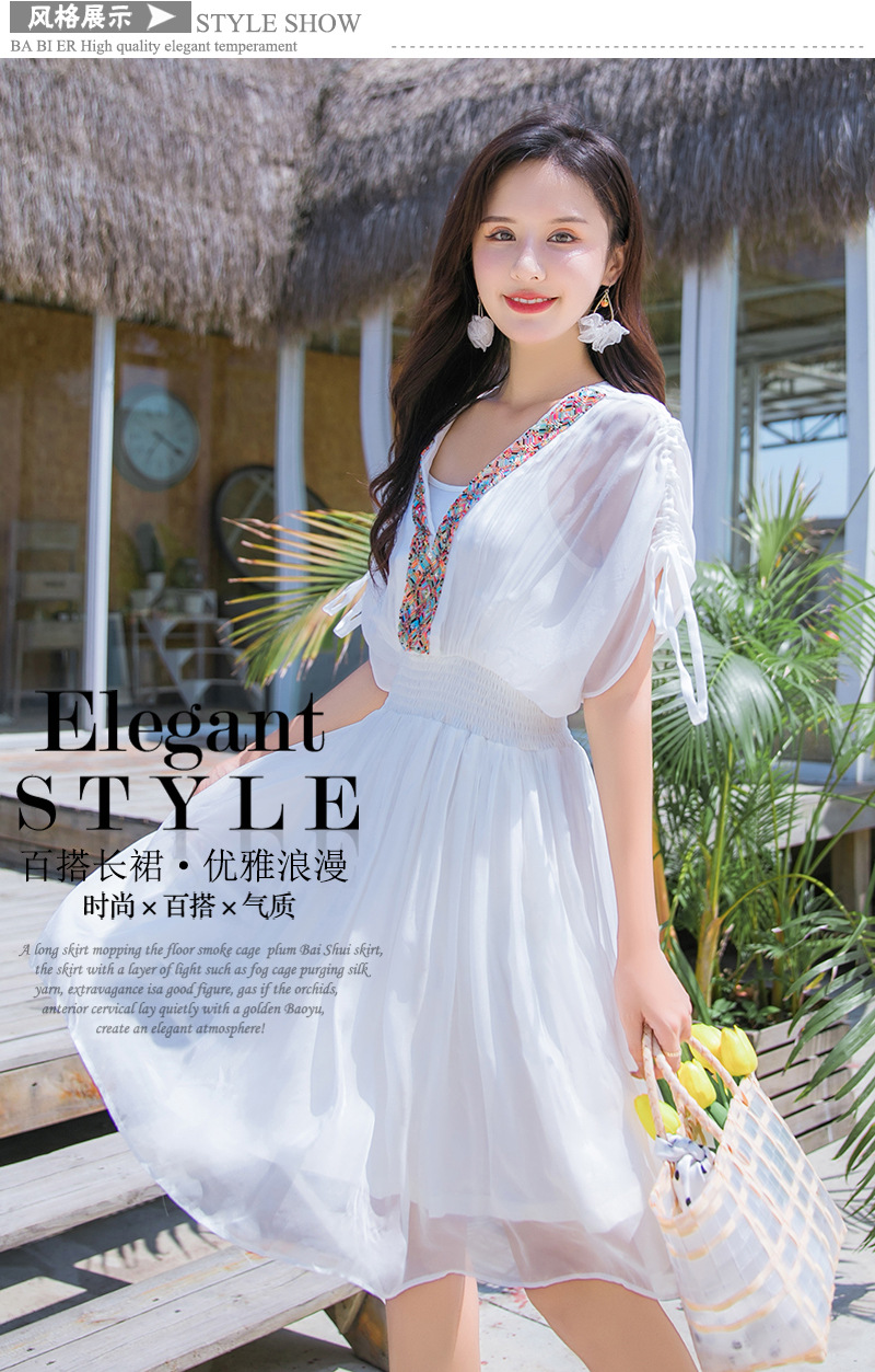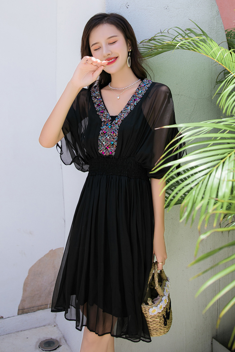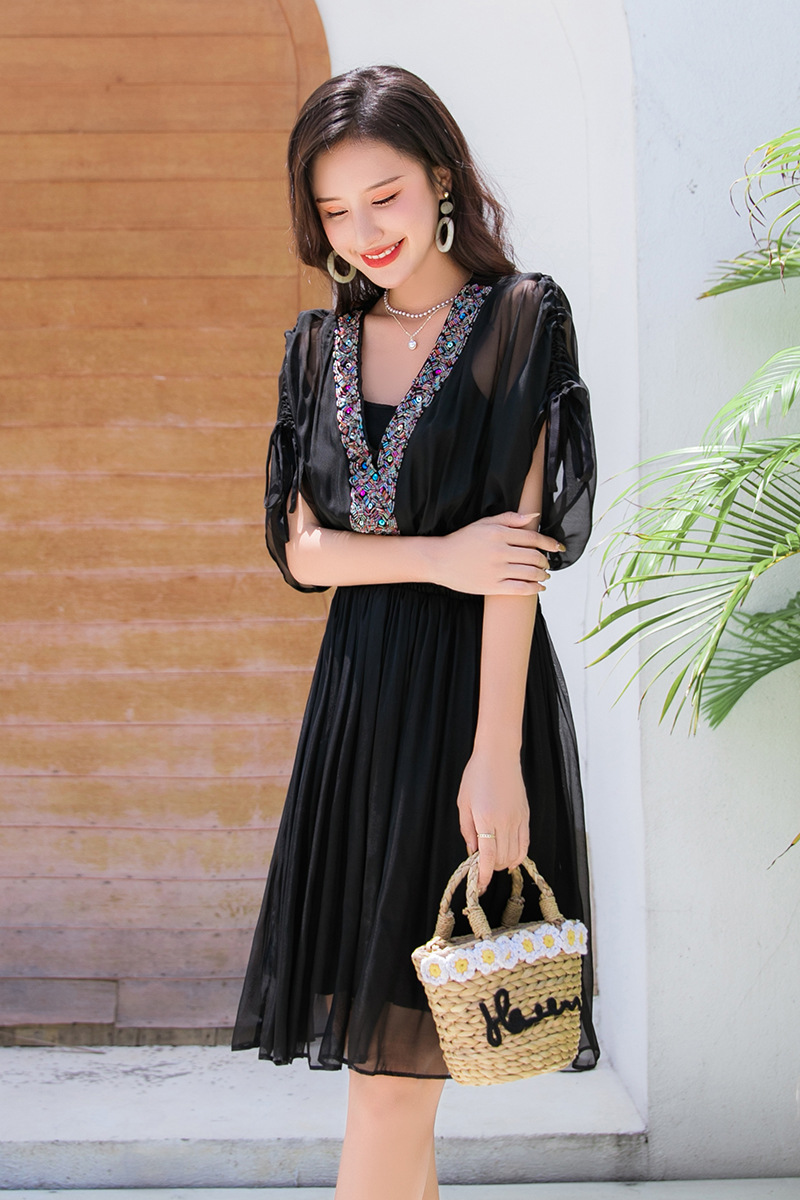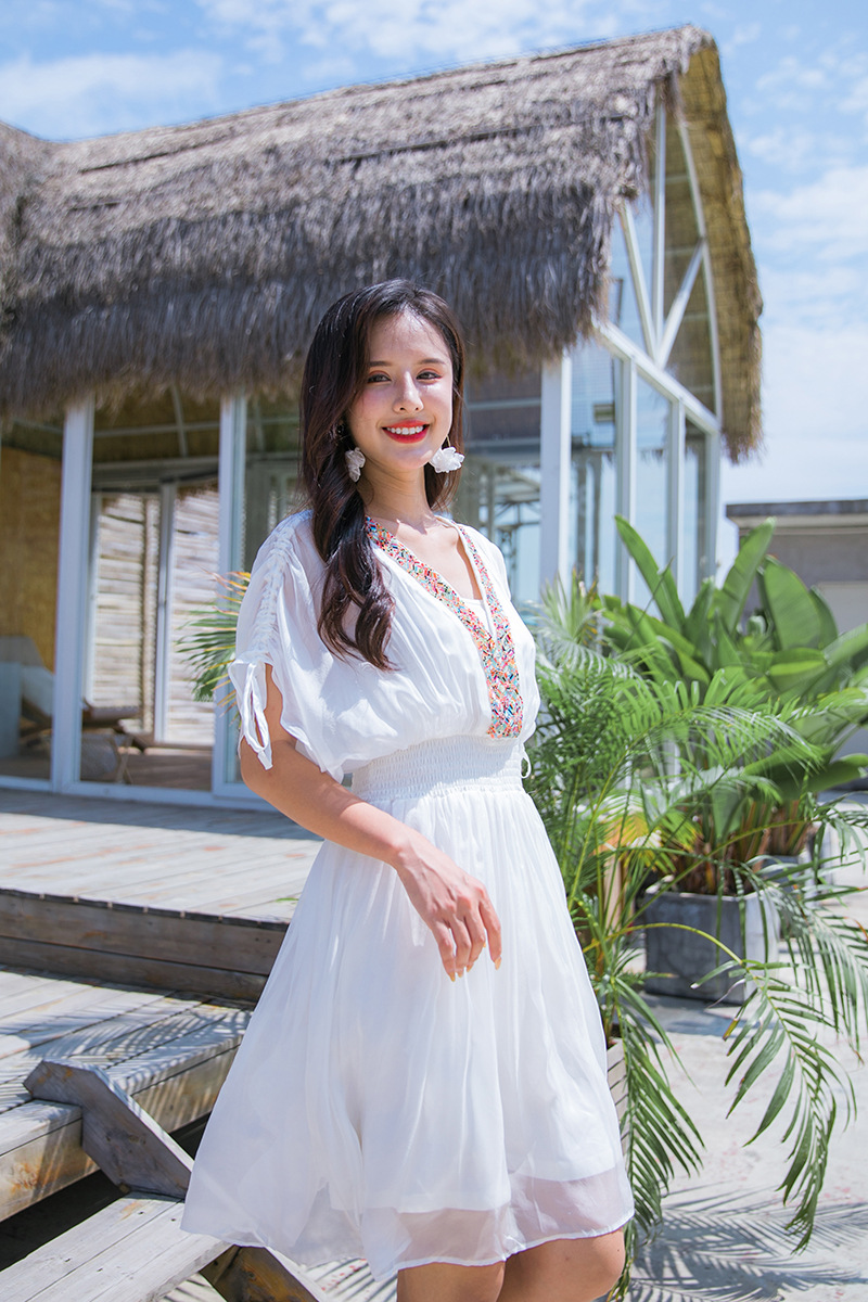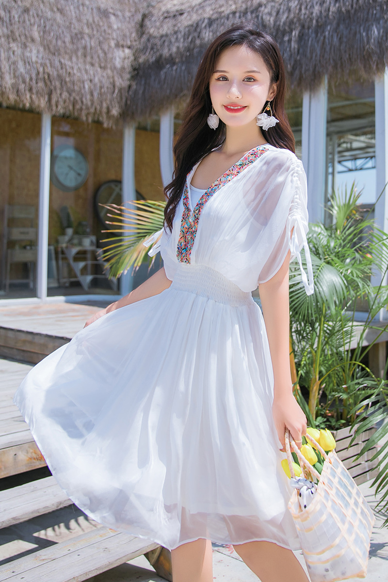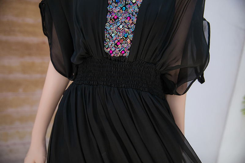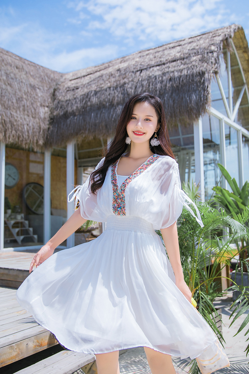 Chiếc váy mặc đi biển này được dệt hoàn toàn từ chất liệu tơ lụa mềm mại, mang đến cảm giác mát mẻ và thoải mái khi mặc. Kiểu dáng phóng khoáng với họa tiết thêu kết hạt cầu kỳ, rất phù hợp cho những chuyến du lịch nghỉ dưỡng. Bạn có thể phối cùng dép bệt và mũ rộng vành để tạo nên một hình ảnh tự nhiên và nổi bật. Sản phẩm dễ dàng giặt tay và bảo quản nơi khô ráo. | Tên sản phẩm: Váy Đầm Liền Thân Nữ Chất Liệu Lụa Tơ Tằm Đồ Đi Biển Váy Maxi - Thời Trang Nữ | Mã sản phẩm: H8316 - Giá: 1.730.000đ | Mã nhà sản xuất: SHDTR-G05Hình ảnh sản phẩm