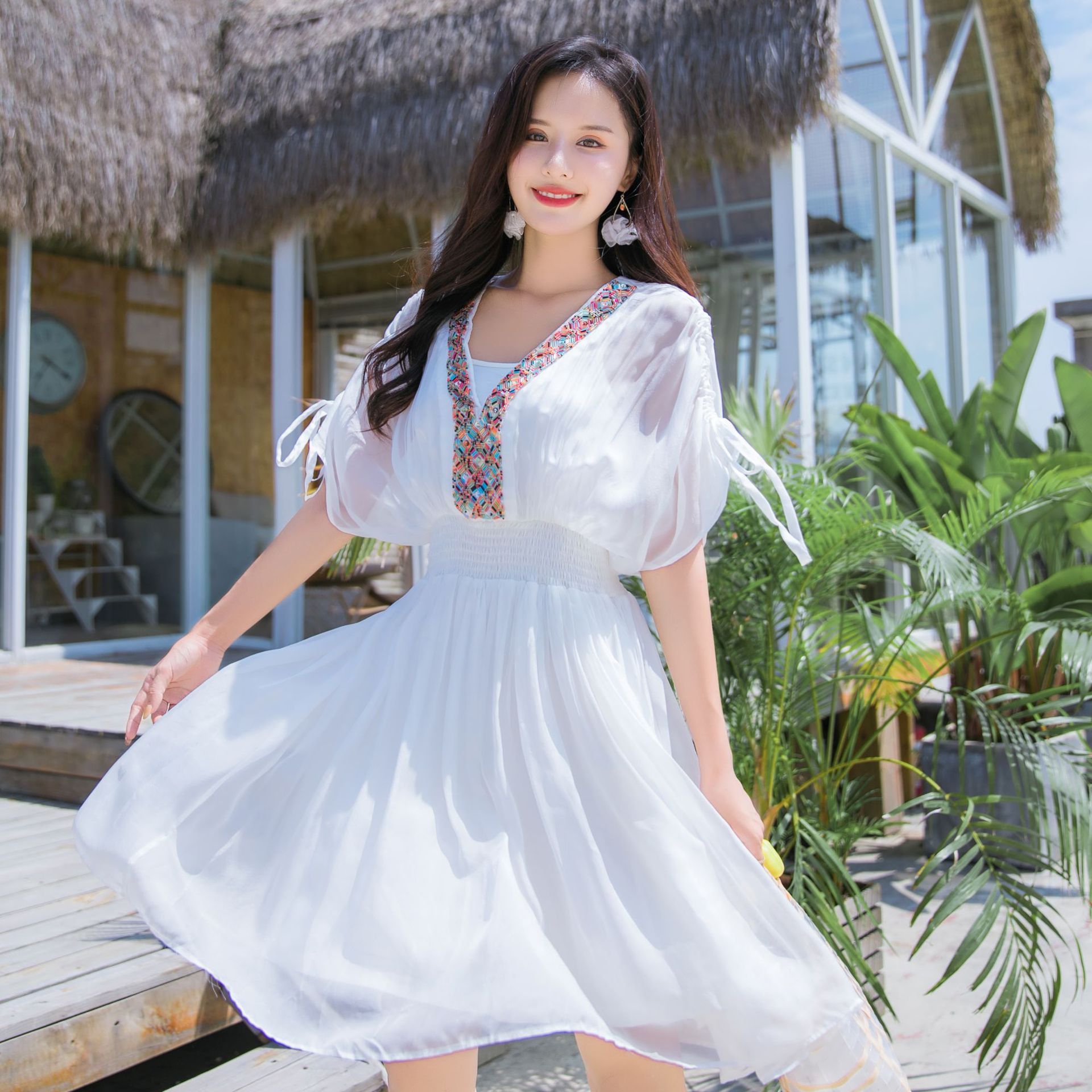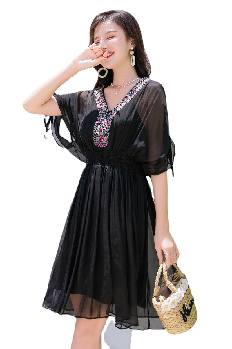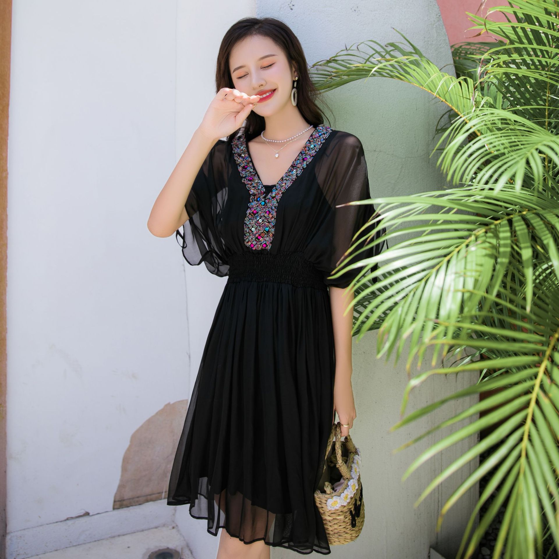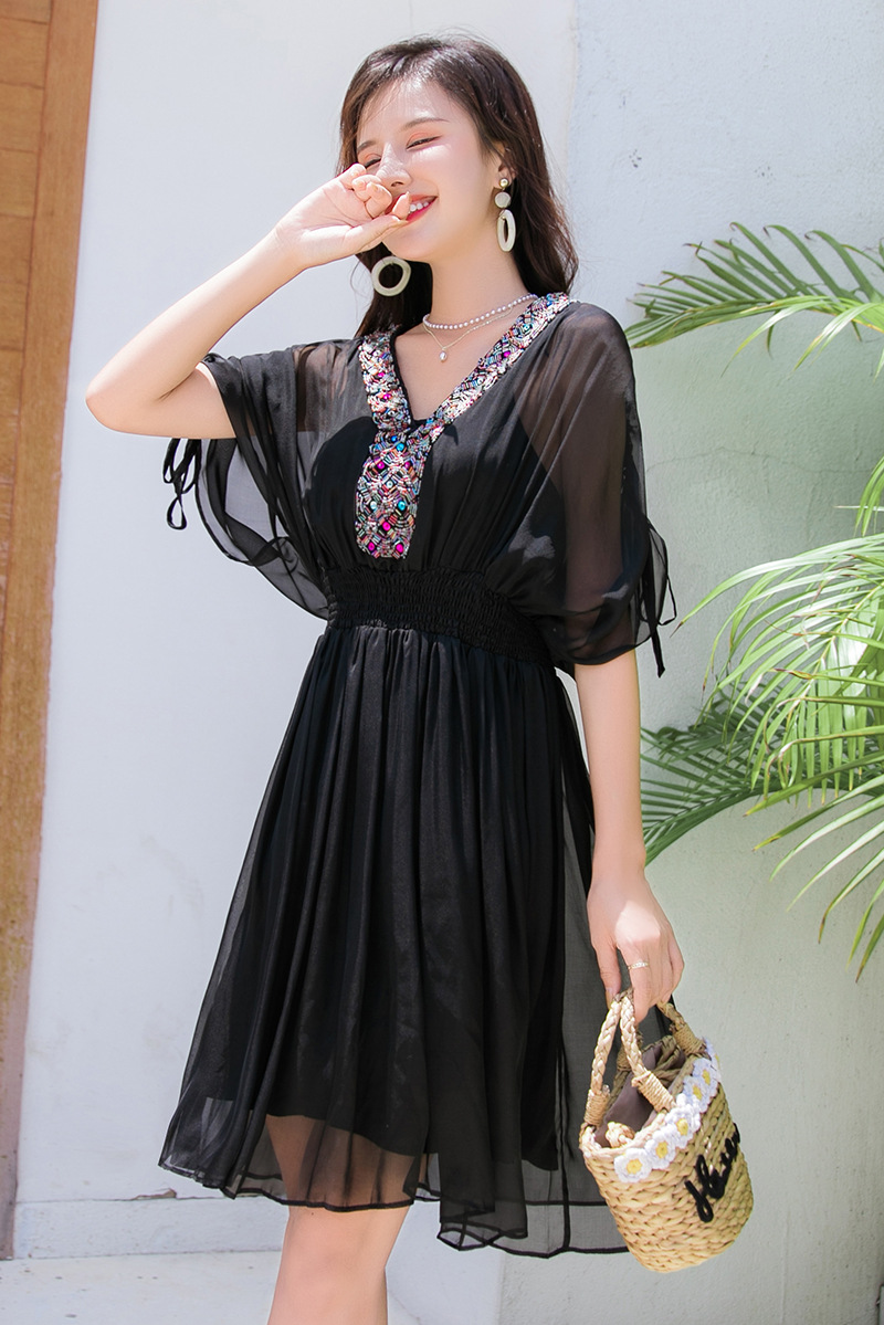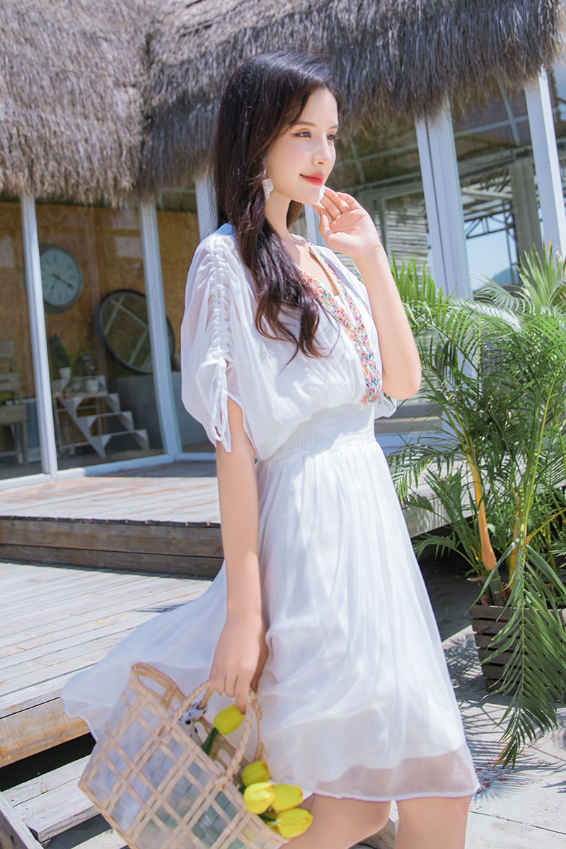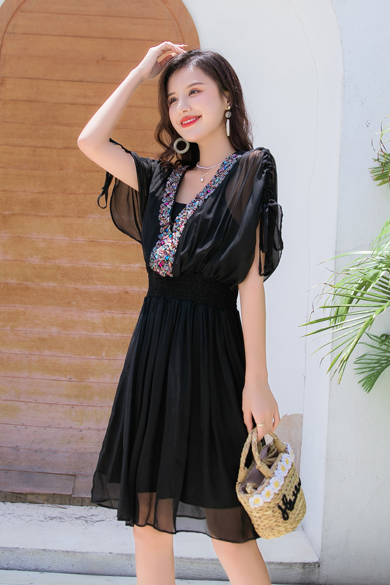 Chiếc váy mặc đi biển này được dệt hoàn toàn từ chất liệu tơ lụa mềm mại, mang đến cảm giác mát mẻ và thoải mái khi mặc. Kiểu dáng phóng khoáng với họa tiết thêu kết hạt cầu kỳ, rất phù hợp cho những chuyến du lịch nghỉ dưỡng. Bạn có thể phối cùng dép bệt và mũ rộng vành để tạo nên một hình ảnh tự nhiên và nổi bật. Sản phẩm dễ dàng giặt tay và bảo quản nơi khô ráo. | Tên sản phẩm: Váy Đầm Liền Thân Nữ Chất Liệu Lụa Tơ Tằm Đồ Đi Biển Váy Maxi - Thời Trang Nữ | Mã sản phẩm: H8316 - Giá: 1.730.000đ | Mã nhà sản xuất: SHDTR-G05Hình ảnh sản phẩm