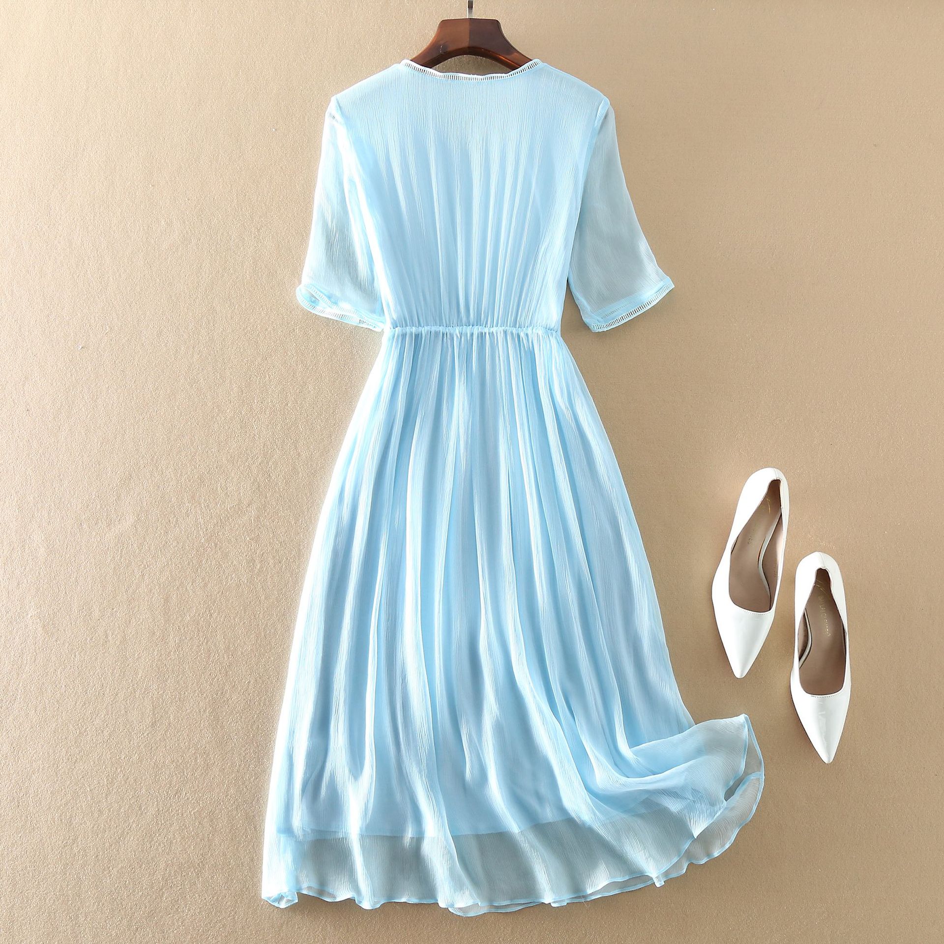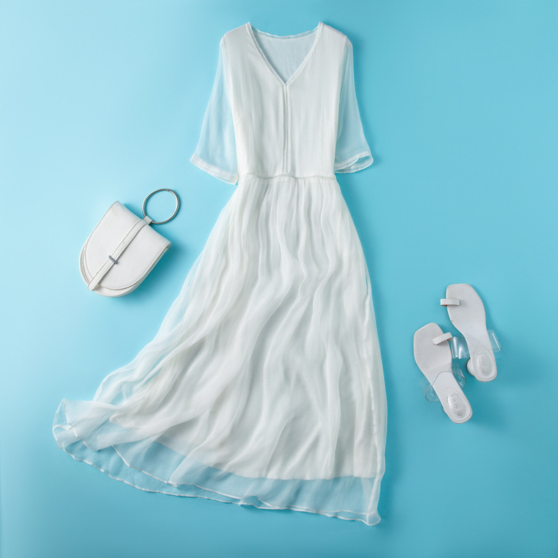 Chiếc đầm dành cho nữ giới, thiết kế dáng ôm tôn vẻ đẹp dịu dàng và lịch sự, rất phù hợp cho môi trường công sở hoặc những dịp gặp mặt. Sản phẩm được làm từ chất liệu tơ lụa mềm mại, mang lại cảm giác dễ chịu và thoáng mát khi mặc. Bạn có thể phối cùng giày gót thấp và túi xách để tạo nên một bộ trang phục hoàn chỉnh. | Tên sản phẩm: Váy Đầm Liền Thân Nữ Chất Liệu Lụa Tơ Tằm Hàng Mùa Hè - Thời Trang Nữ | Mã sản phẩm: H8318 - Giá: 1.640.000đ | Mã nhà sản xuất: SHDTR-G05Hình ảnh sản phẩm
