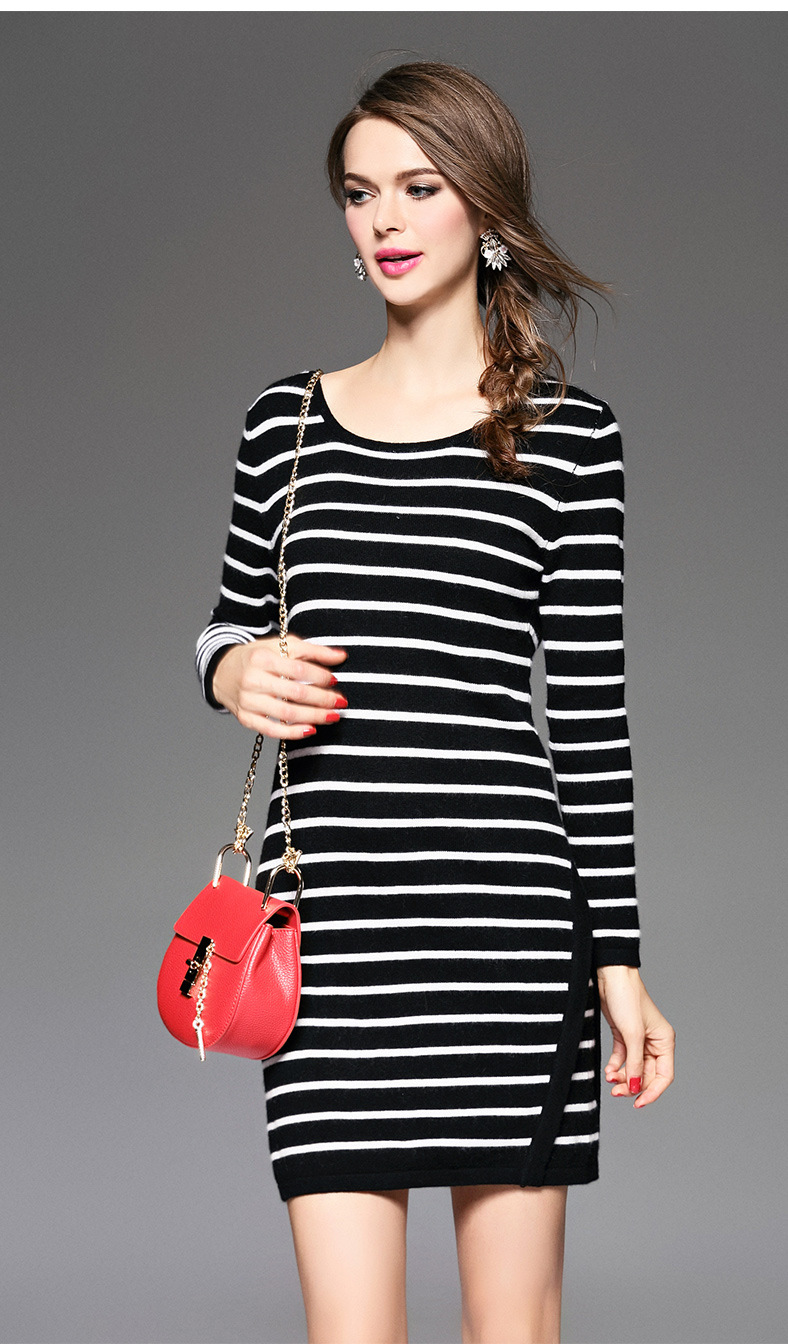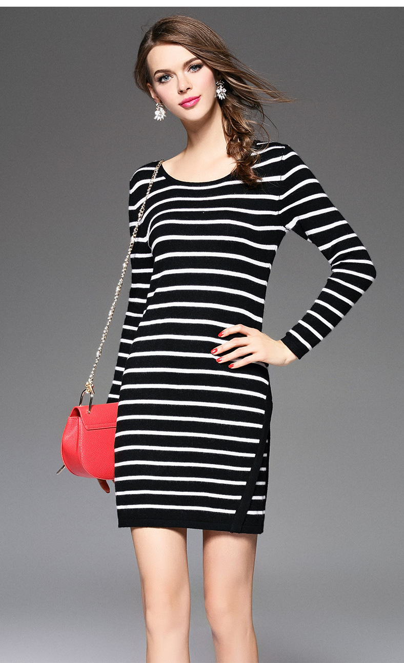Chiếc đầm dệt kim mặc bên trong này có cổ tròn cổ điển và họa tiết sọc tinh tế. Chất liệu len tự nhiên mang lại cảm giác mềm mại, ấm áp, phù hợp cho những ngày thu đông. Kiểu dáng ôm vừa phải, dễ dàng phối cùng áo khoác hoặc mặc riêng. Sản phẩm có thể giặt bằng tay với nước lạnh và phơi trong bóng mát để giữ form vải lâu bền. | Tên sản phẩm: Áo Sơ Mi Nữ Áo Len Hàng Mùa Xuân Thu Đông - Thời Trang Nữ | Mã sản phẩm: H8325 - Giá: 1.440.000đ | Mã nhà sản xuất: SHDTR-G04Hình ảnh sản phẩm