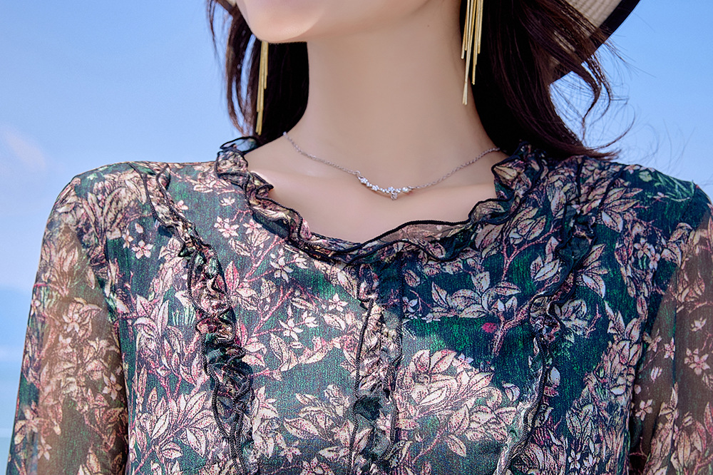 Đầm dài dành cho nữ công sở, được làm từ chất liệu tơ lụa mềm mại, mang đến cảm giác dễ chịu khi mặc. Trang phục có họa tiết hoa nhỏ tinh tế, tôn lên vẻ đẹp dịu dàng và thanh lịch. Kiểu dáng ôm vừa phải, phù hợp cho nhiều dịp làm việc hay gặp mặt. Sản phẩm mặc kèm với áo khoác mỏng hoặc phụ kiện đơn giản để hoàn thiện bộ trang phục. | Tên sản phẩm: Váy Đầm Liền Thân Dáng Dài Nữ Chất Liệu Lụa Tơ Tằm Họa Tiết Hoa - Thời Trang Nữ | Mã sản phẩm: H8331 - Giá: 2.360.000đ | Mã nhà sản xuất: SHDTR-G05Hình ảnh sản phẩm