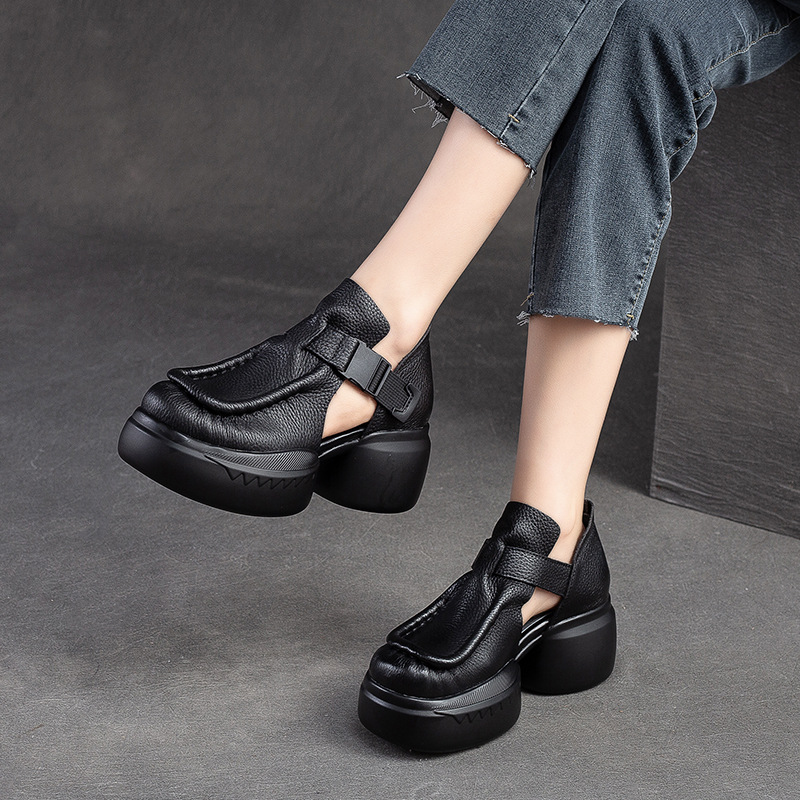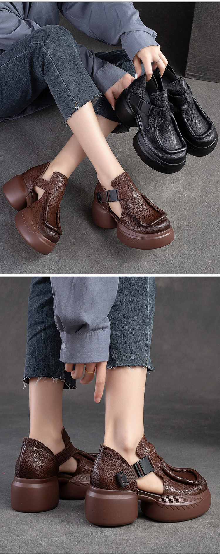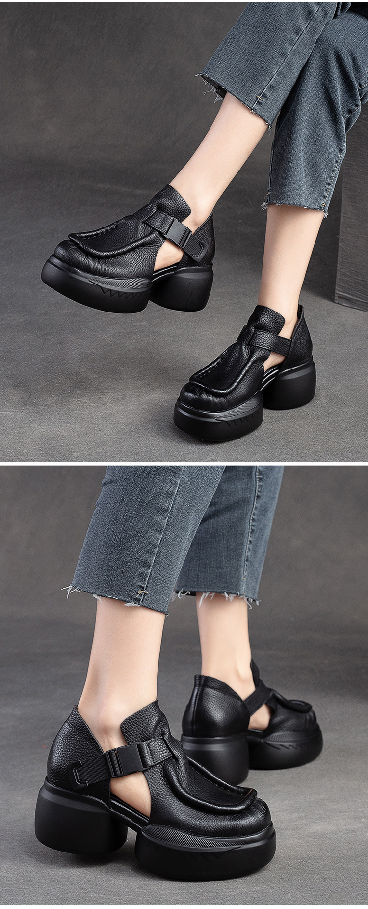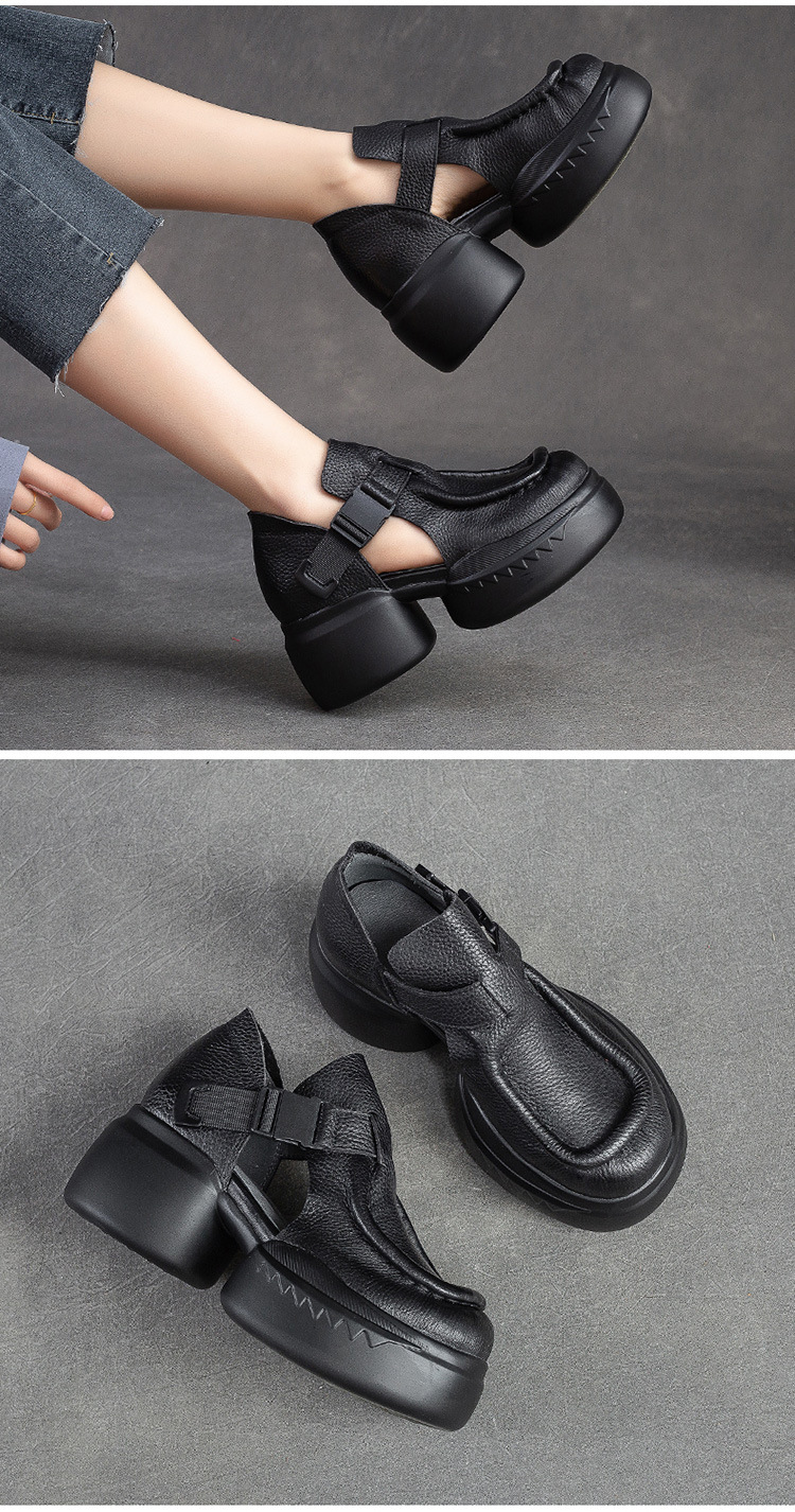 Đôi giày bệt mũi bịt mang phong cách hoài cổ, được làm từ chất liệu da bò thật mềm mại và thoáng khí. Thiết kế có các lỗ nhỏ tinh tế ở phần thân, kết hợp với khóa dán giúp bạn điều chỉnh độ ôm vừa vặn. Đế giày dày vững chãi cùng phần gót chắc chắn, mang lại sự thoải mái cho đôi chân trong mọi bước di chuyển. Rất phù hợp để sử dụng hằng ngày hoặc dạo phố. | Tên sản phẩm: Giày Dép Sandal Nữ Chất Liệu Da Bò Gót Vuông Thoáng Khí Đế Cao Phục Cổ Cổ Điển - Giày Dép Nữ | Mã sản phẩm: H9279 - Giá: 2.480.000đ | Mã nhà sản xuất: SHNTEZ-G05Hình ảnh sản phẩm