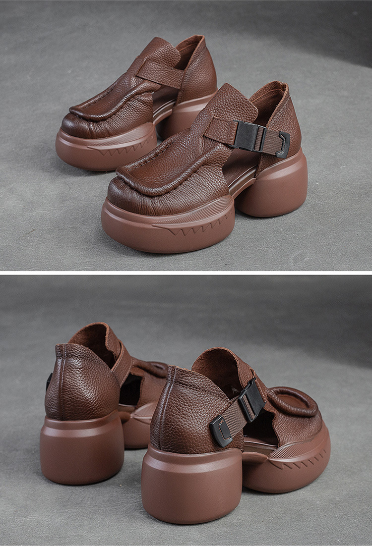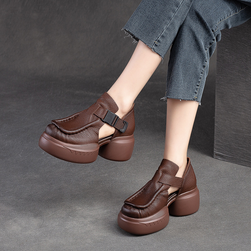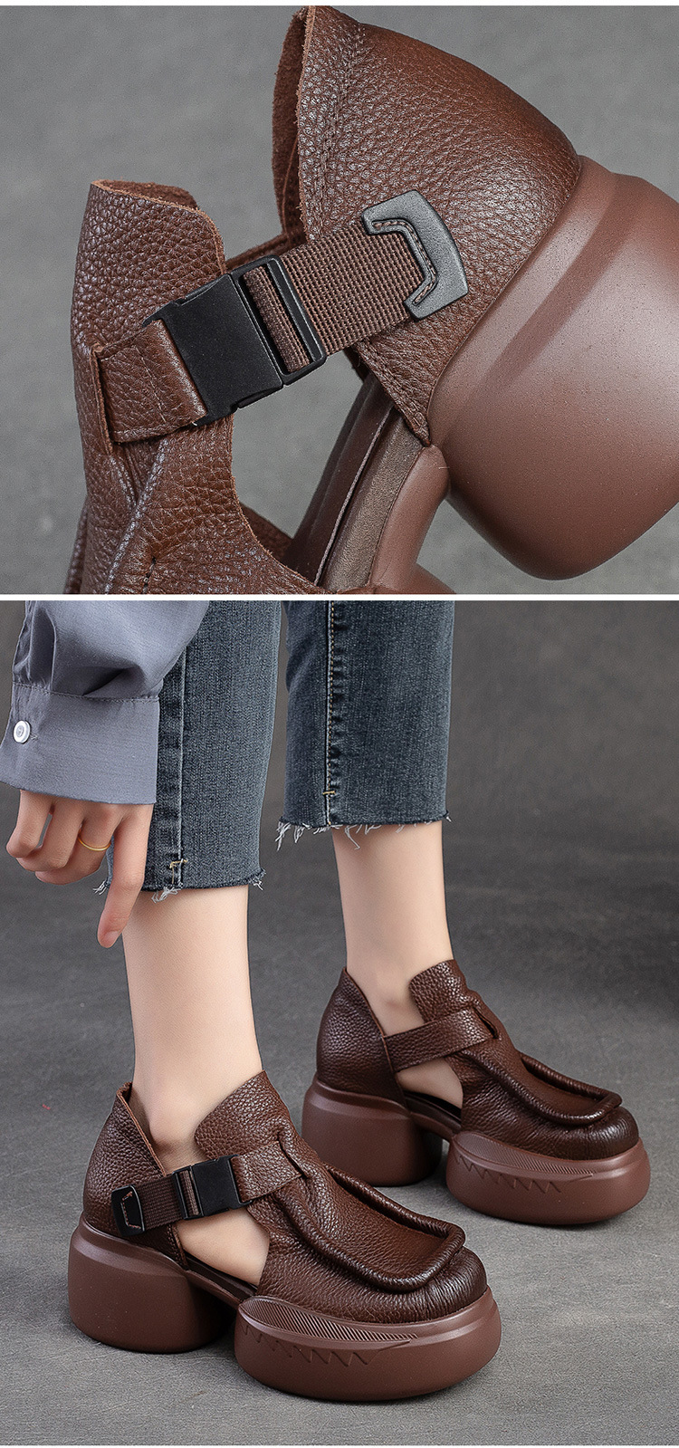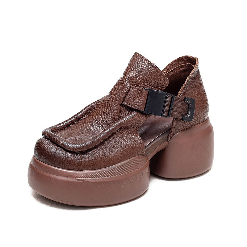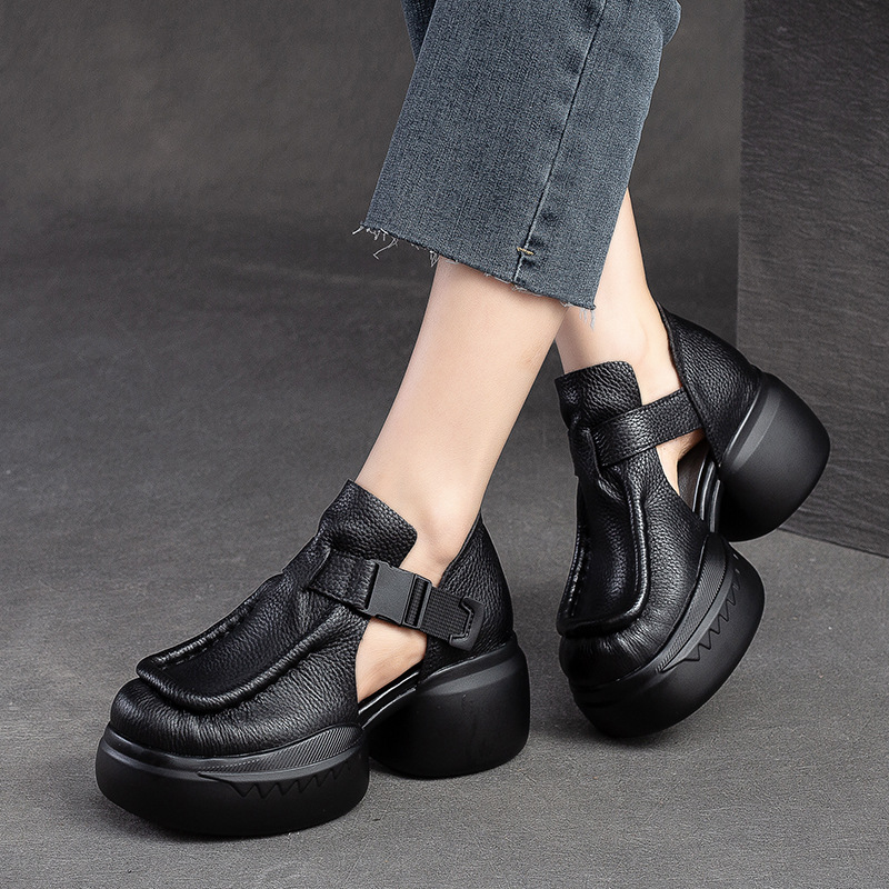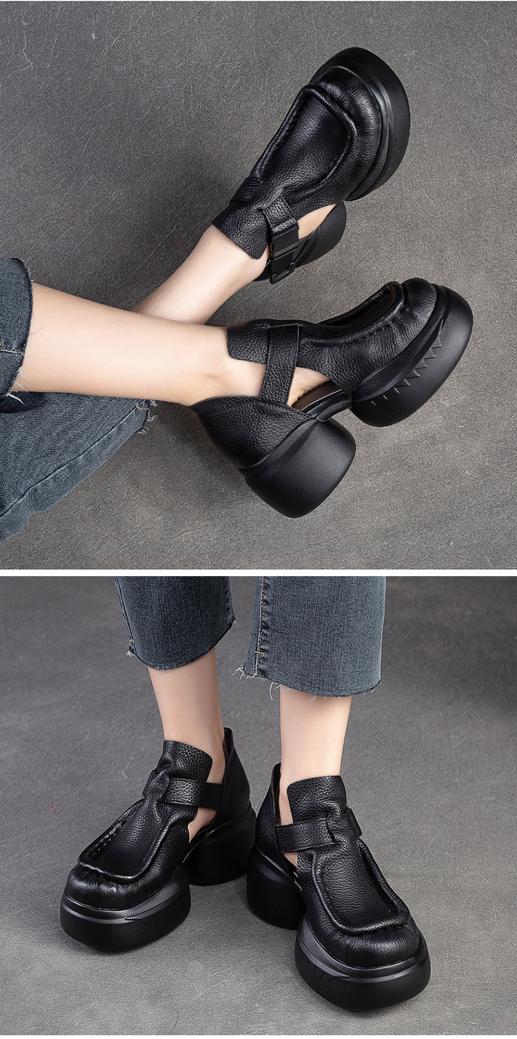 Đôi giày bệt mũi bịt mang phong cách hoài cổ, được làm từ chất liệu da bò thật mềm mại và thoáng khí. Thiết kế có các lỗ nhỏ tinh tế ở phần thân, kết hợp với khóa dán giúp bạn điều chỉnh độ ôm vừa vặn. Đế giày dày vững chãi cùng phần gót chắc chắn, mang lại sự thoải mái cho đôi chân trong mọi bước di chuyển. Rất phù hợp để sử dụng hằng ngày hoặc dạo phố. | Tên sản phẩm: Giày Dép Sandal Nữ Chất Liệu Da Bò Gót Vuông Thoáng Khí Đế Cao Phục Cổ Cổ Điển - Giày Dép Nữ | Mã sản phẩm: H9279 - Giá: 2.480.000đ | Mã nhà sản xuất: SHNTEZ-G05Hình ảnh sản phẩm