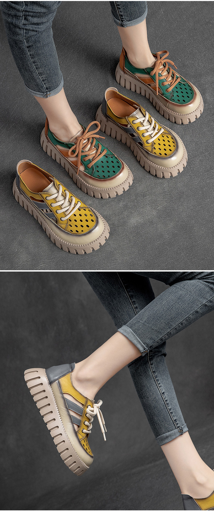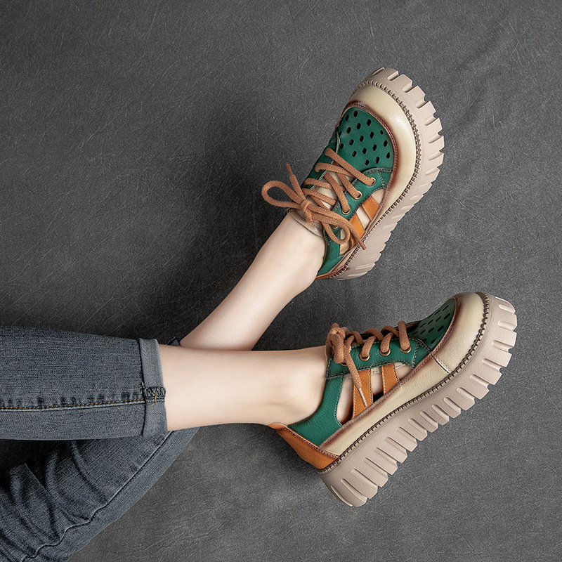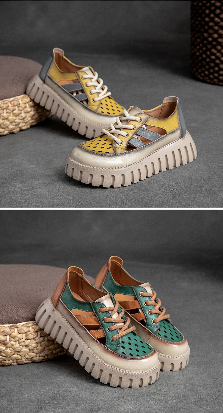 Đôi sandal này có phần đế dày thoải mái, kết hợp hai tông màu nổi bật trên chất liệu da bò mềm mại. Phong cách cổ điển với dây buộc phía trước kiểu dáng La Mã, mang đến vẻ ngoài trẻ trung và năng động. Sản phẩm dễ dàng phối cùng nhiều loại trang phục như quần shorts, váy hay quần jeans. Bạn chỉ cần điều chỉnh các dây buộc cho vừa vặn với bàn chân là có thể sử dụng ngay. | Tên sản phẩm: Giày Dép Sandal Nữ Chất Liệu Da Bò Đế Cao Phục Cổ Cổ Điển - Giày Dép Nữ | Mã sản phẩm: H9294 - Giá: 2.100.000đ | Mã nhà sản xuất: SHNTEZ-G05Hình ảnh sản phẩm