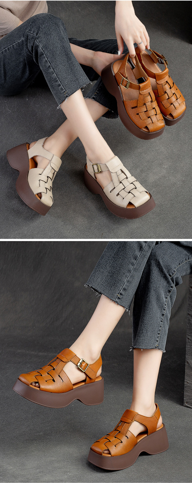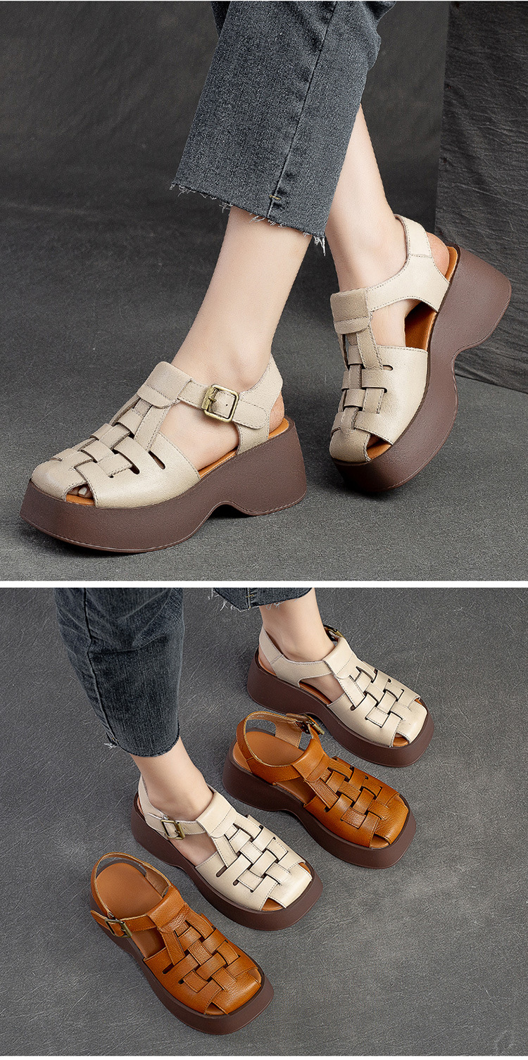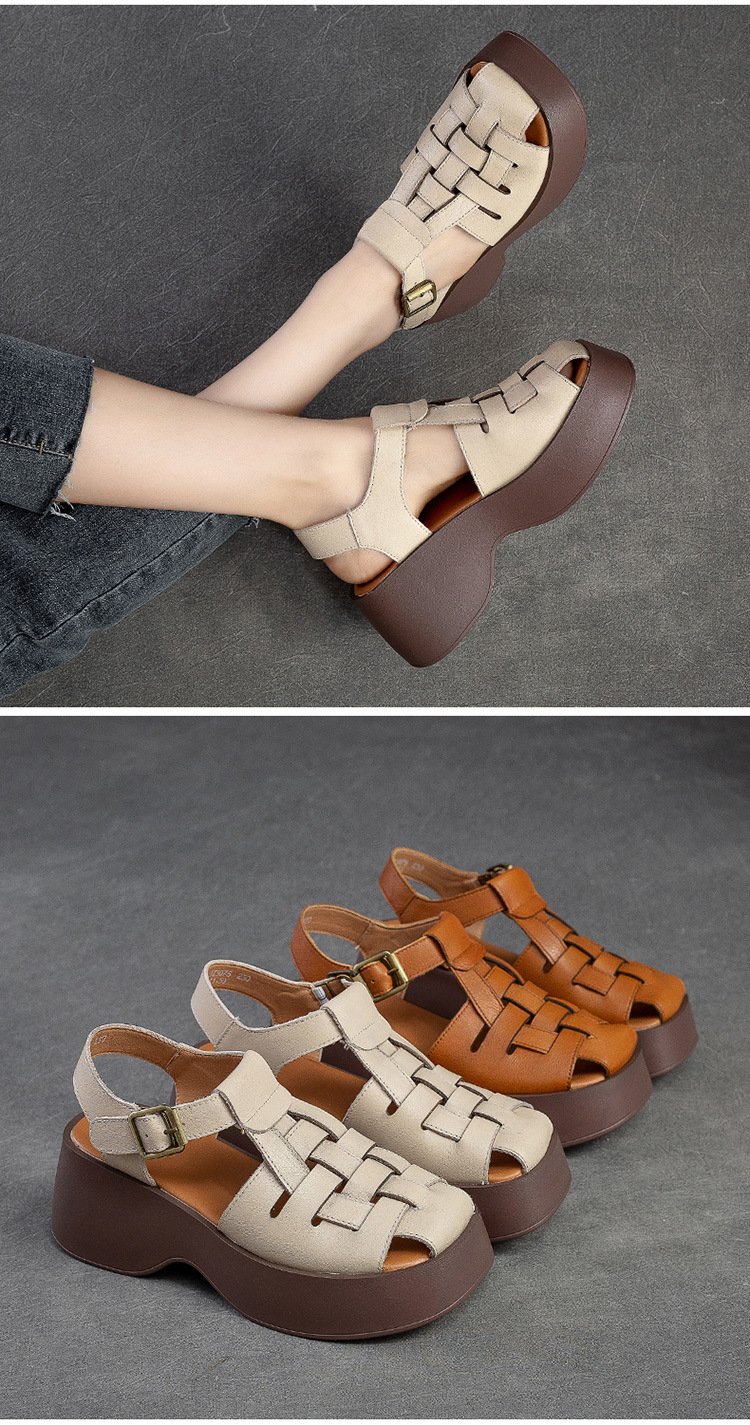 Đôi giày sandal nữ thiết kế dáng kín mũi, phù hợp cho mùa hè. Sản phẩm có phần đế dày tạo cảm giác thoải mái và giúp tăng chiều cao nhẹ. Kiểu dáng được đan kết cùng các chi tiết khoét hình nhỏ tăng độ thông thoáng. Qu giày có khóa gài tiện lợi, dễ dàng điều chỉnh cho vừa chân. Bạn có thể phối hợp với nhiều loại trang phục khác nhau. Mang giày và cài qu cho vừa vặn là sử dụng được ngay. | Tên sản phẩm: Giày Dép Sandal Nữ Tăng Chiều Cao Thoáng Khí Đế Cao Hàng Mùa Hè - Giày Dép Nữ | Mã sản phẩm: H9388 - Giá: 2.290.000đ | Mã nhà sản xuất: SHNTEZ-G05Hình ảnh sản phẩm