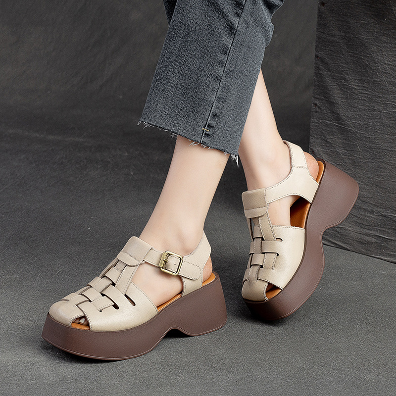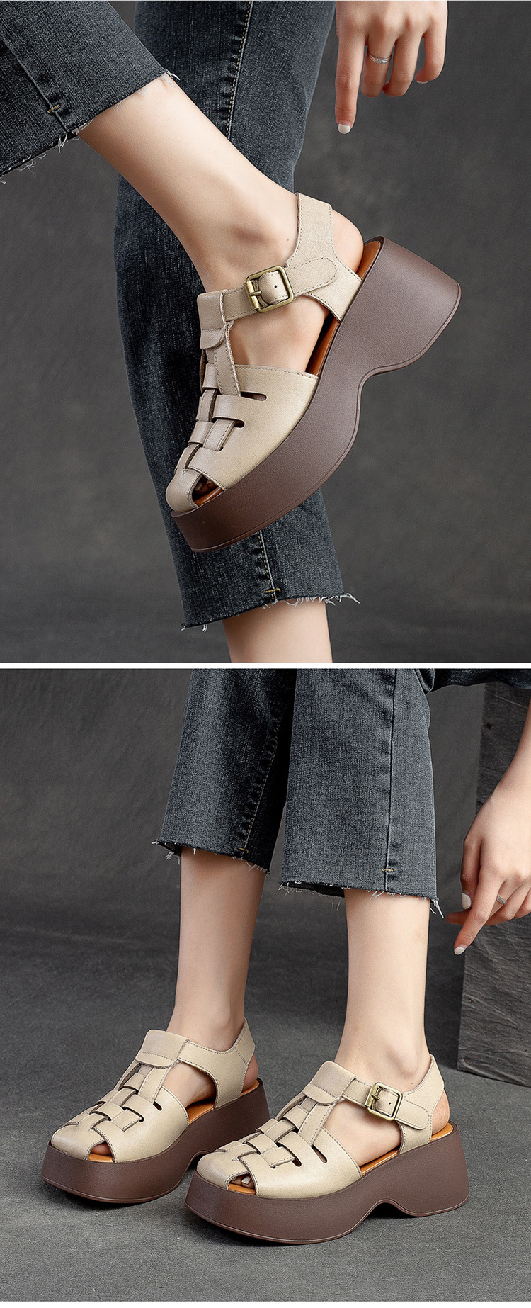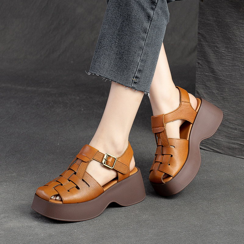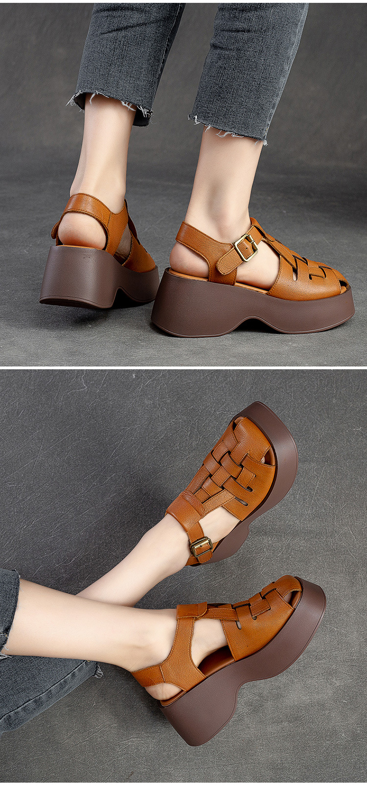 Đôi giày sandal nữ thiết kế dáng kín mũi, phù hợp cho mùa hè. Sản phẩm có phần đế dày tạo cảm giác thoải mái và giúp tăng chiều cao nhẹ. Kiểu dáng được đan kết cùng các chi tiết khoét hình nhỏ tăng độ thông thoáng. Qu giày có khóa gài tiện lợi, dễ dàng điều chỉnh cho vừa chân. Bạn có thể phối hợp với nhiều loại trang phục khác nhau. Mang giày và cài qu cho vừa vặn là sử dụng được ngay. | Tên sản phẩm: Giày Dép Sandal Nữ Tăng Chiều Cao Thoáng Khí Đế Cao Hàng Mùa Hè - Giày Dép Nữ | Mã sản phẩm: H9388 - Giá: 2.290.000đ | Mã nhà sản xuất: SHNTEZ-G05Hình ảnh sản phẩm