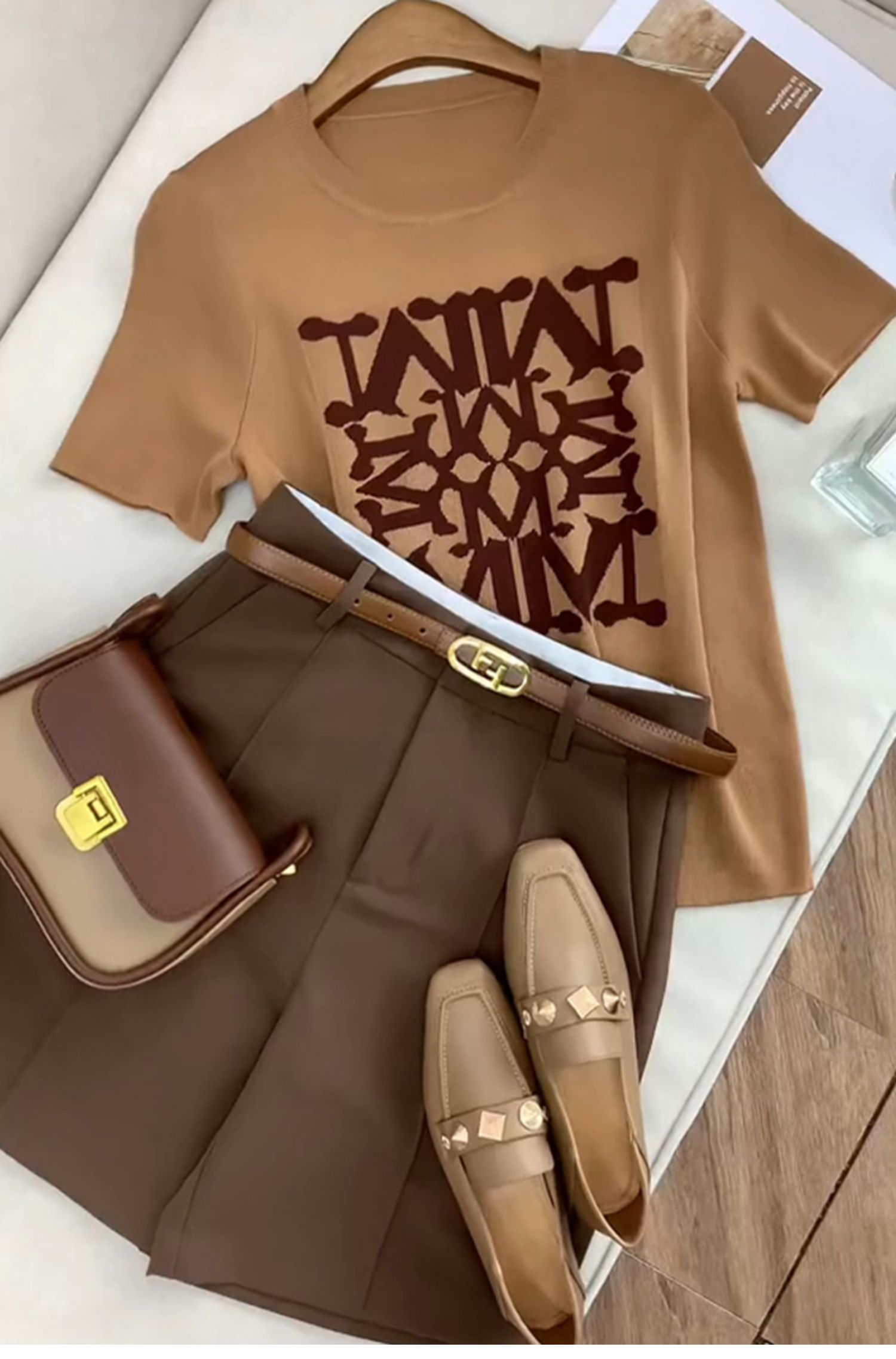 Bộ trang phục thời trang này gồm áo thun và quần short, được thiết kế dành riêng cho mùa hè. Chất vải mềm mại, thoáng mát giúp người mặc cảm thấy dễ chịu. Tông màu nâu nhã nhặn cùng kiểu dáng ôn hờ tôn lên những đường nét cơ thể, mang lại vẻ ngoài trẻ trung và năng động. Bạn có thể phối đồ cùng giày thể thao để tạo nên set đồ hoàn chỉnh cho những dịp gặp gỡ bạn bè hay dạo phố. | Tên sản phẩm: Đồ Bộ Nữ Trông Trẻ Hơn Tuổi Hàng Mùa Hè - Thời Trang Nữ | Mã sản phẩm: H9418 - Giá: 1.420.000đ | Mã nhà sản xuất: SWREF-G04Hình ảnh sản phẩm