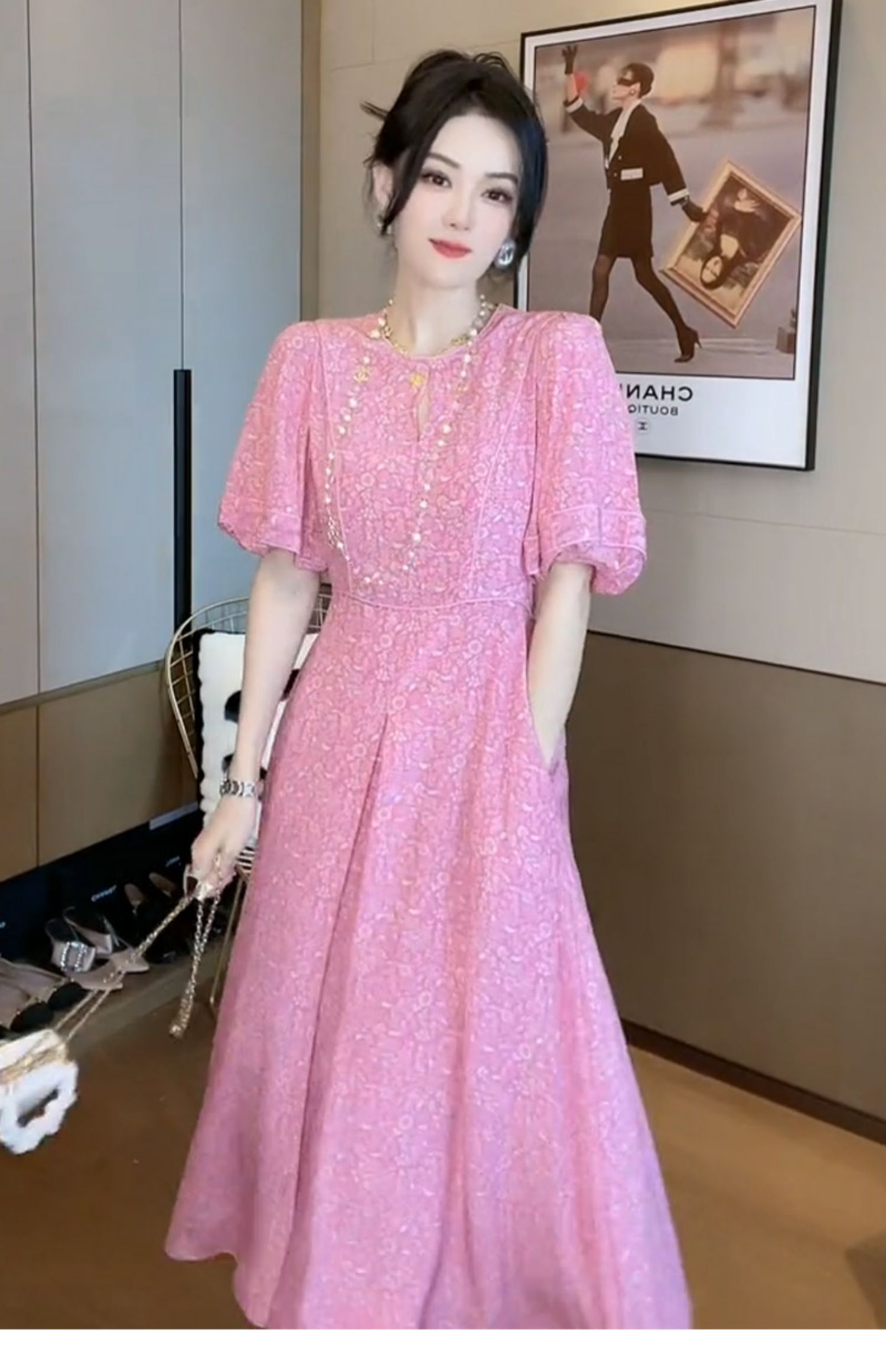 Đầm dài mùa hè với thiết kế dáng dài giúp tôn vóc dáng. Chất vải voan mỏng nhẹ thoáng mát, in họa tiết hoa nhỏ màu hồng dịu dàng. Kiểu dáng cổ V và tay phồng mang phong cách châu Âu nhẹ nhàng, tạo vẻ tươi trẻ. Mặc kết hợp cùng giày sandal hoặc giày bệt để đi chơi, dạo phố. Dễ dàng phối cùng túi xách và phụ kiện đơn giản. | Tên sản phẩm: Váy Đầm Liền Thân Dáng Dài Nữ Chất Liệu Vải Voan Họa Tiết Hoa Trông Trẻ Hơn Tuổi Hàng Mùa Hè - Thời Trang Nữ | Mã sản phẩm: H9441 - Giá: 2.190.000đ | Mã nhà sản xuất: SWREF-G05Hình ảnh sản phẩm