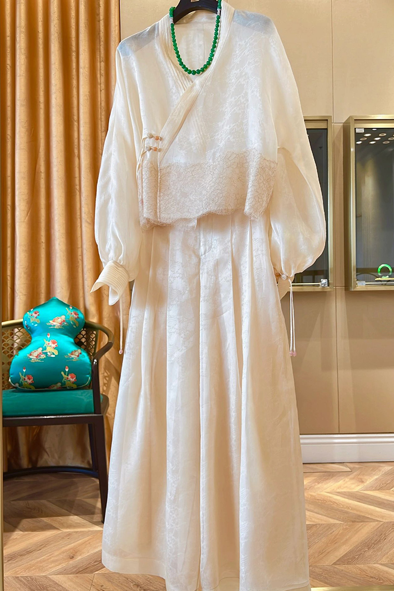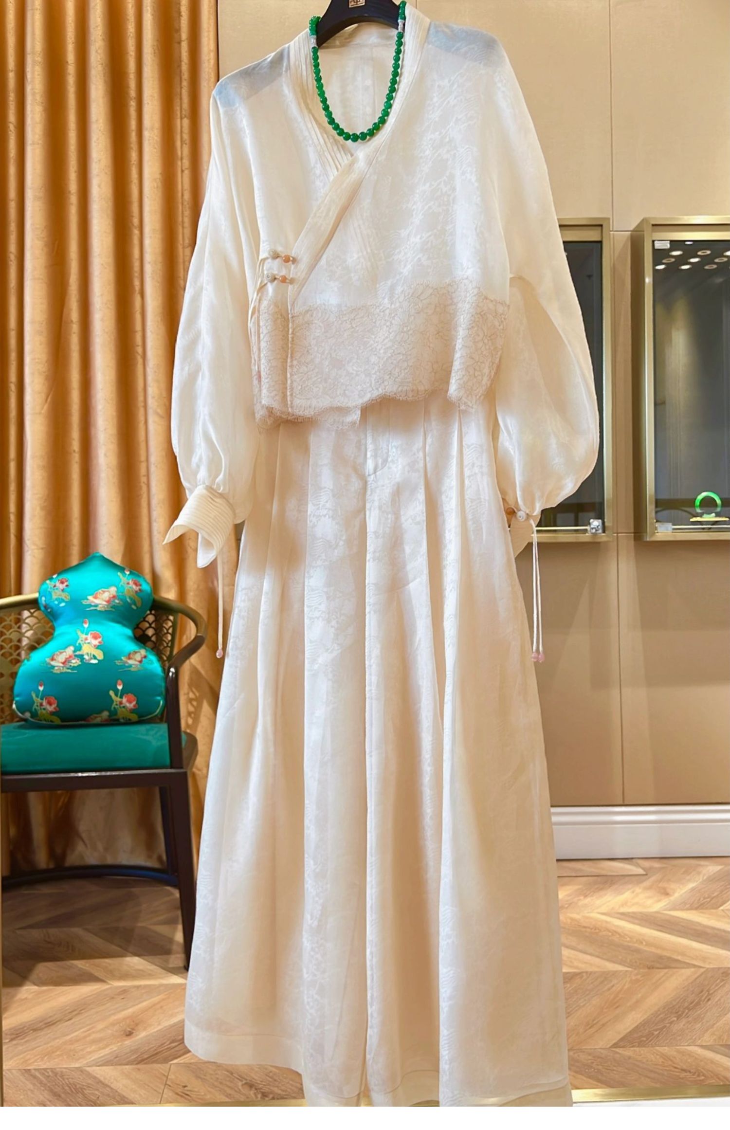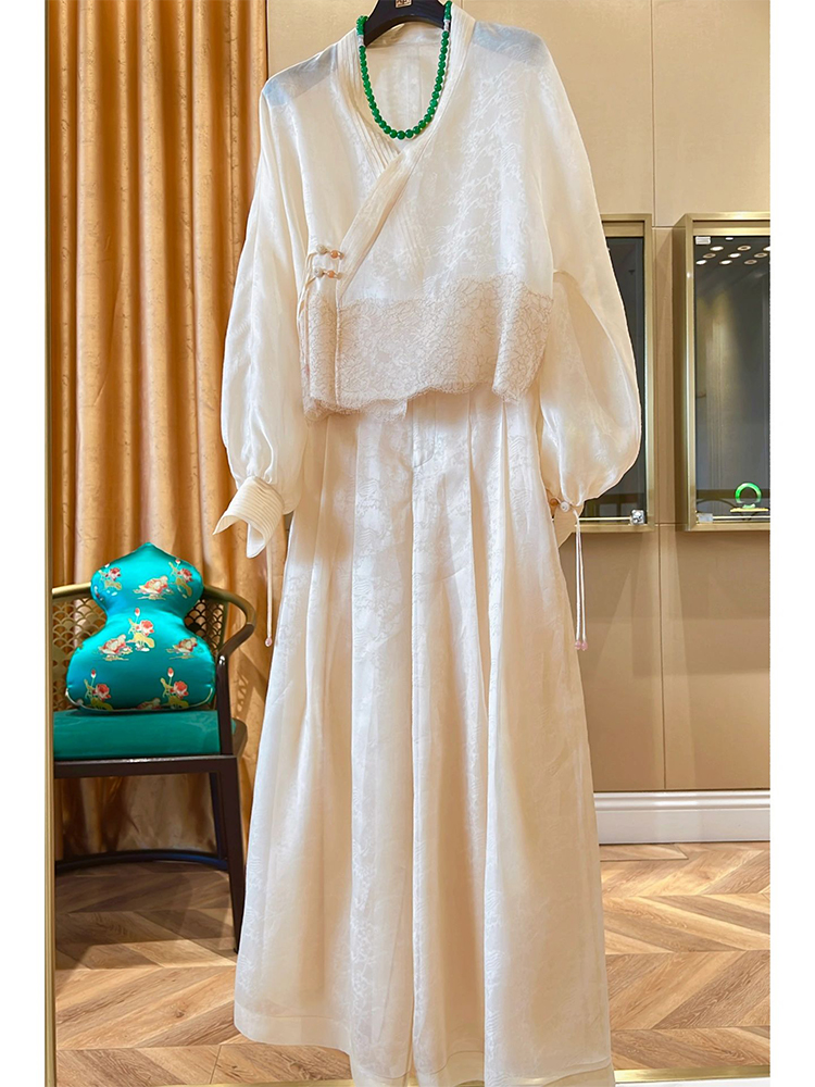 Bộ trang phục nữ này mang phong cách hòa quyện giữa nét đẹp truyền thống và hiện đại. Áo sơ mi có hàng cúc bấm tinh xảo, kết hợp cùng quần ống rộng thoải mái, tạo nên một bộ hai mảnh chỉn chu. Chất vải mềm mại, nhẹ nhàng rất phù hợp cho tiết trời mùa xuân. Bạn có thể mặc bộ này trong nhiều dịp khác nhau, từ đi làm đến những buổi gặp mặt. Cách phối đồ đơn giản nhưng vẫn toát lên vẻ thanh lịch, nhẹ nhàng. | Tên sản phẩm: Đồ Bộ Nữ Cả Bộ 2 Món Hàng Mùa Xuân Thu Đông Phục Cổ Cổ Điển - Thời Trang Nữ | Mã sản phẩm: H9613 - Giá: 3.220.000đ | Mã nhà sản xuất: SWREF-G06Hình ảnh sản phẩm