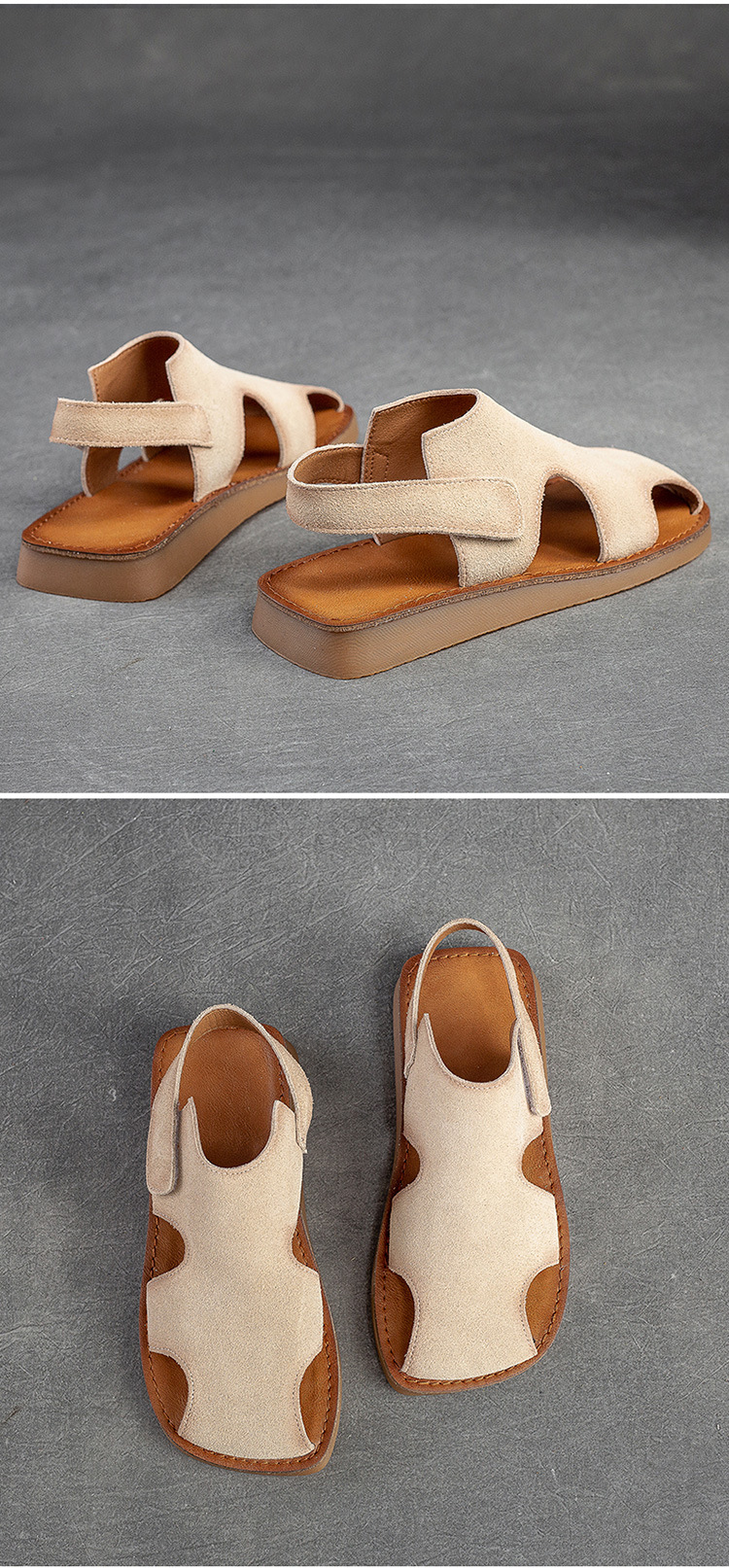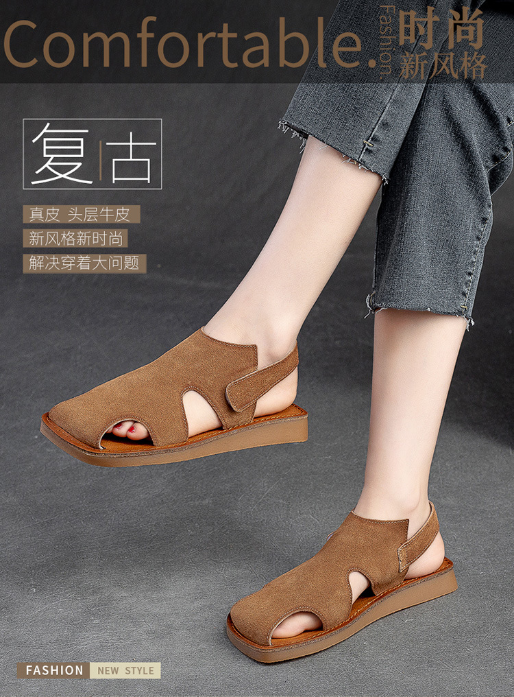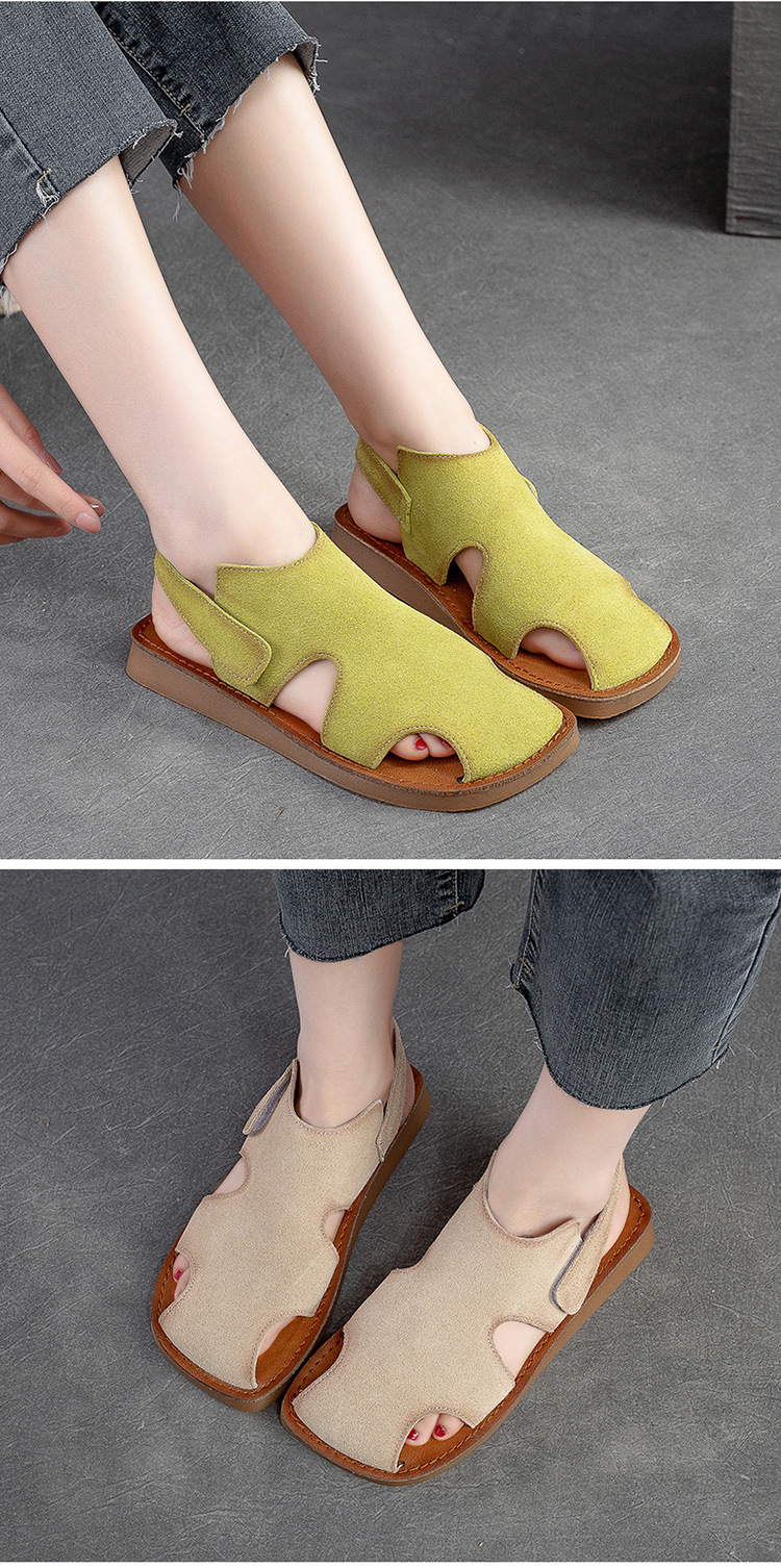 Đôi giày bệt mùa hè này mang đến sự thoải mái tối đa cho bàn chân. Thiết kế kín mũi kết hợp những chi tiết khoét lỗ tinh tế, giúp đôi chân luôn thông thoáng và mát mẻ. Dây dán dễ dàng điều chỉnh cho vừa vặn. Phong cách cổ điển nhẹ nhàng, phù hợp cho những dịp đi chơi, dạo phố hay sinh hoạt hằng ngày. Bạn có thể mang cùng quần short, váy hay quần jeans để có vẻ ngoại tự nhiên, thoải mái. | Tên sản phẩm: Giày Dép Sandal Nữ Thoáng Khí Hàng Mùa Hè Phục Cổ Cổ Điển - Giày Dép Nữ | Mã sản phẩm: H9682 - Giá: 1.900.000đ | Mã nhà sản xuất: SHNTEZ-G05Hình ảnh sản phẩm
