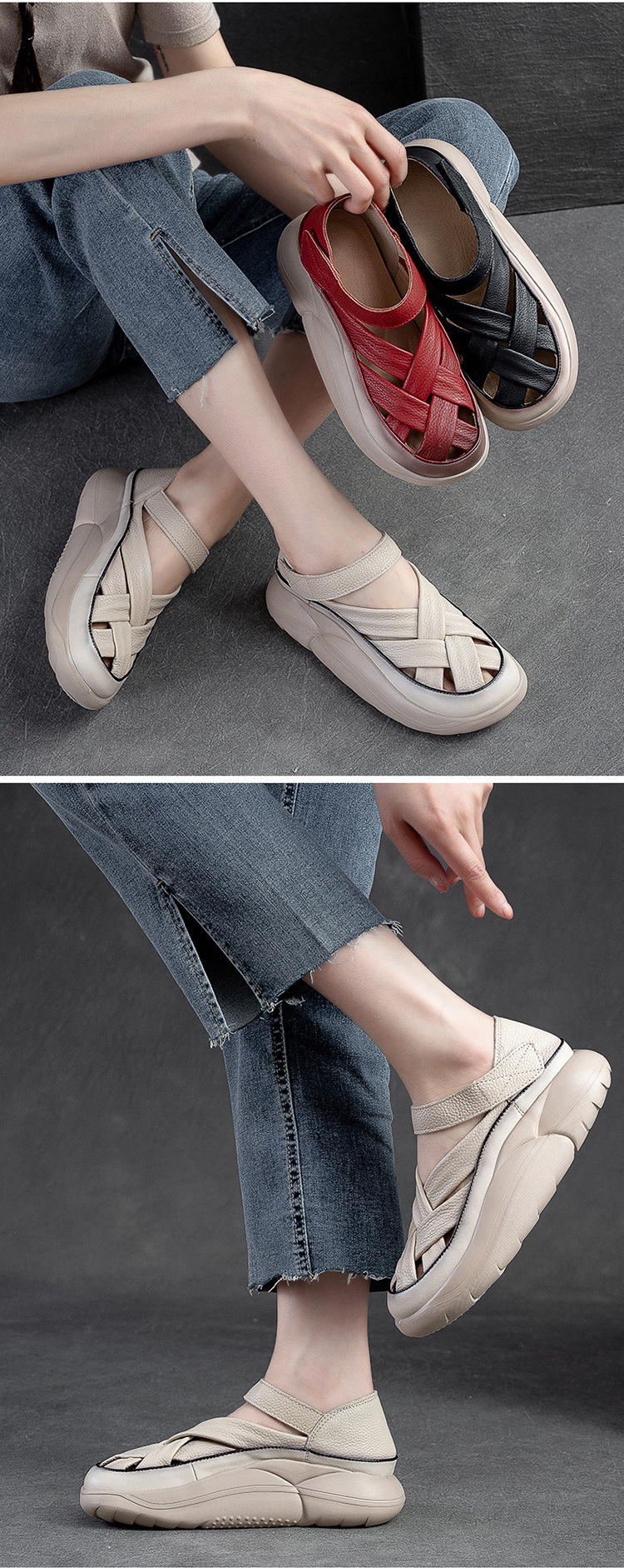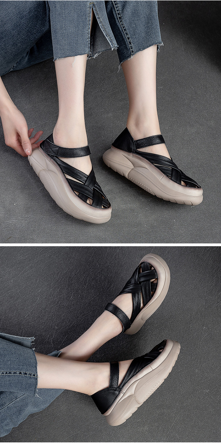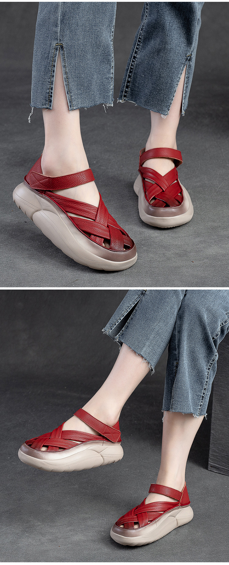 Giày sandal nữ thiết kế với phần đế dày tạo dáng cân đối. Sản phẩm làm từ chất liệu da bò mềm mại, bề mặt được xử lý hiệu ứng màu độc đáo. Kiểu dáng mang phong cách hoài cổ, phần thân giàu có các chi tiết khoét họa tiết giúp thoáng khí tốt, phù hợp cho mùa hè. Dây giày sử dụng khóa dán, cho phép bạn điều chỉnh dễ dàng và ôm vừa vặn chân. Bạn có thể phối cùng nhiều loại trang phục khác nhau. | Tên sản phẩm: Giày Dép Sandal Nữ Chất Liệu Da Bò Thoáng Khí Đế Cao Hàng Mùa Hè Phục Cổ Cổ Điển - Giày Dép Nữ | Mã sản phẩm: H9760 - Giá: 2.290.000đ | Mã nhà sản xuất: SHNTEZ-G05Hình ảnh sản phẩm