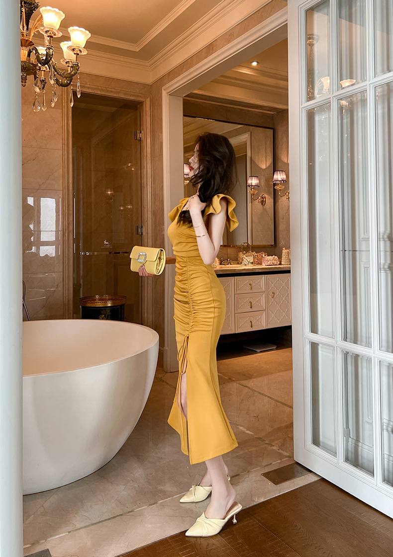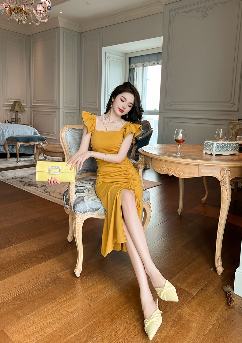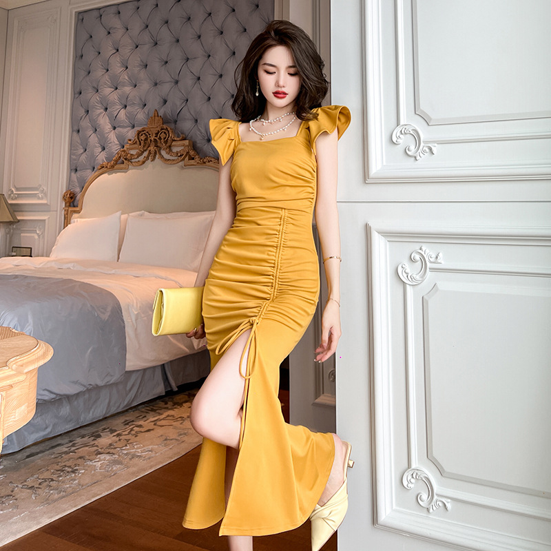 Chiếc đầm dài qua gối với thiết kế ôm tôn dáng, phù hợp cho mùa hè. Điểm nhấn là phần tay xòe bay bổng và vạt đuôi cá duyên dáng, tạo nên sự uyển chuyển khi di chuyển. Chi tiết xẻ tà nhẹ ở thân dưới giúp người mặc thoải mái và thêm phần năng động. Sản phẩm dễ dàng phối cùng giày sandal hoặc giày đế bằng. Mặc kèm áo khoác mỏng hoặc túi xách để tạo điểm nhấn riêng. | Tên sản phẩm: Váy Đầm Liền Thân Dáng Dài Nữ Dài Quá Gối Kiểu Đuôi Cá Hàng Mùa Hè - Thời Trang Nữ | Mã sản phẩm: H9796 - Giá: 990.000đ | Mã nhà sản xuất: CHDG-G03Hình ảnh sản phẩm