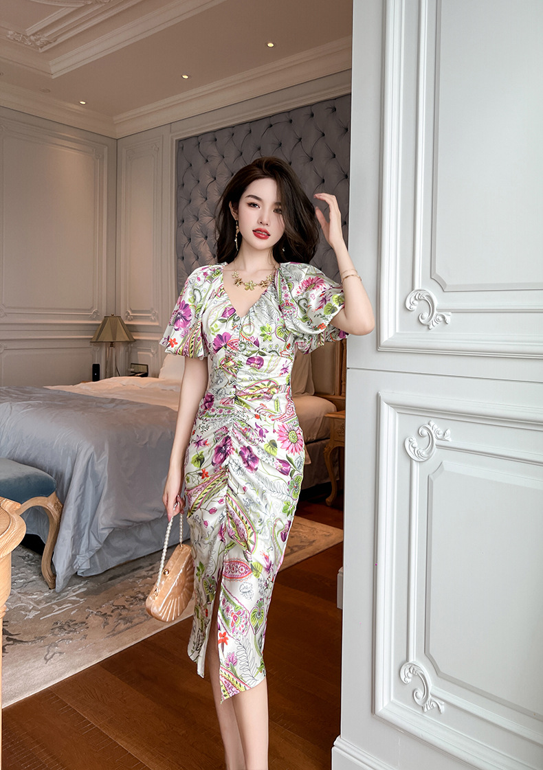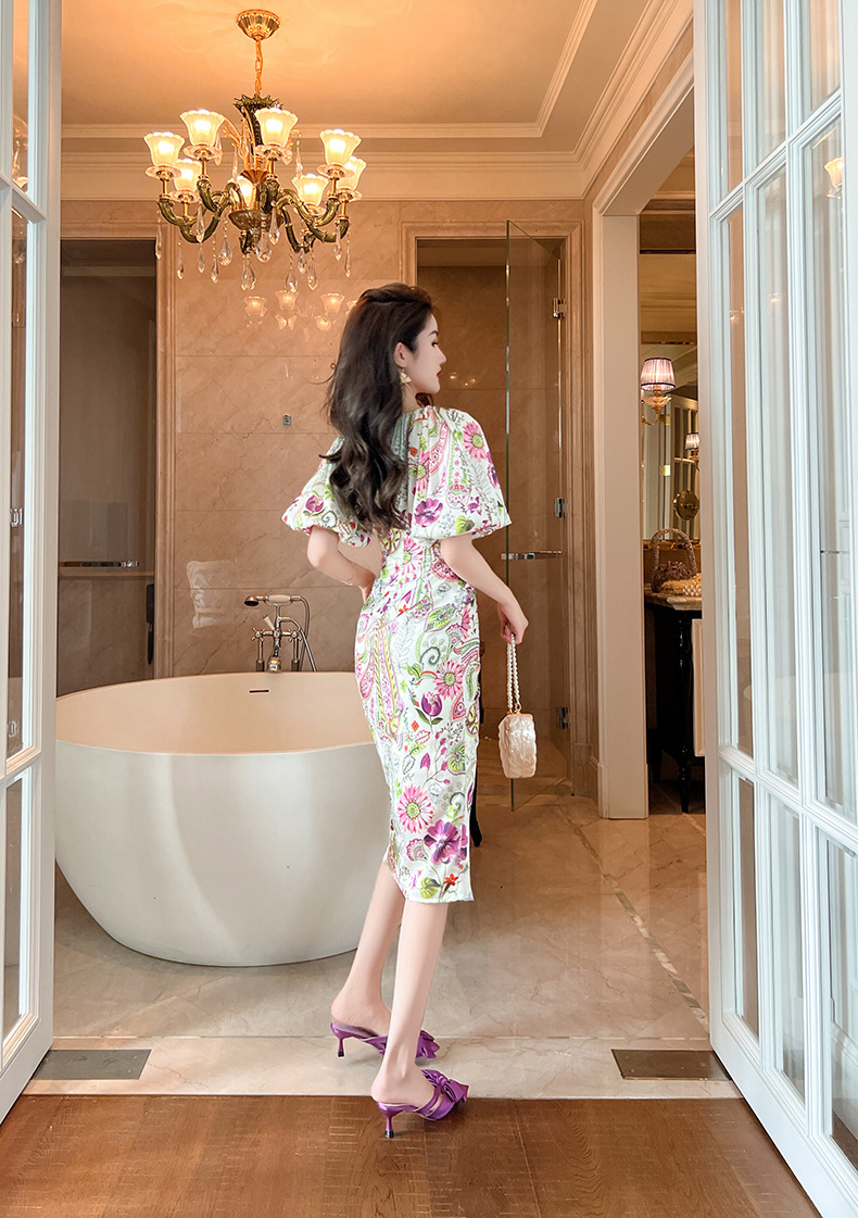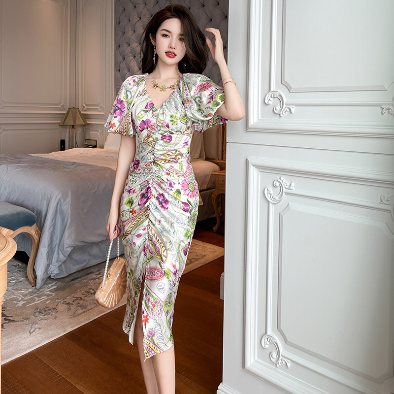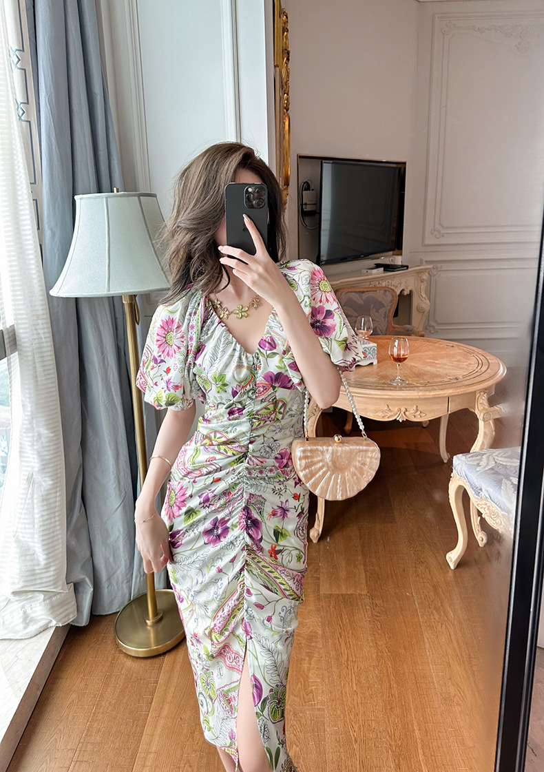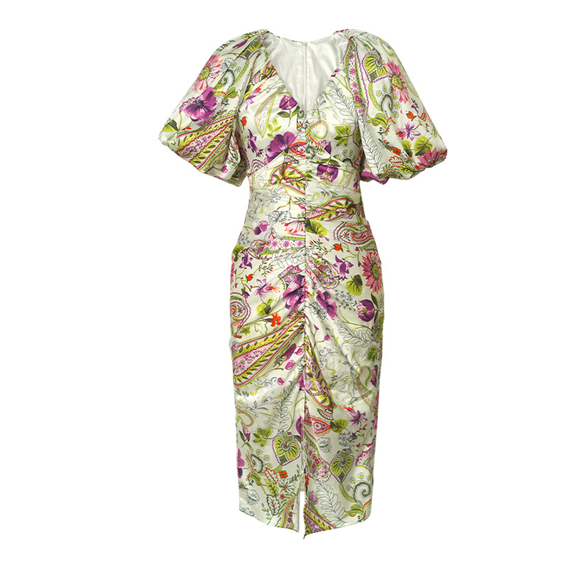 Chiếc đầm mới kiểu cách dành cho các bạn gái. Thiết kế cổ chữ V và tay phồng mang đến vẻ đẹp nữ tính, duyên dáng. Hoa văn in trên vải tạo điểm nhấn sinh động. Form đầm ôm nhẹ cơ thể, giúp tôn lên những đường nét cơ thể. Có thể mặc đi làm, dạo phố hay dự những buổi gặp mặt thân mật. Dễ dàng phối cùng giày cao gót hay giày bệt đều hợp. | Tên sản phẩm: Váy Đầm Liền Thân Nữ Dáng Ôm Tay Phồng Họa Tiết Hoa Cổ Chữ V Hàng Mùa Hè - Thời Trang Nữ | Mã sản phẩm: H9856 - Giá: 1.130.000đ | Mã nhà sản xuất: CHDG-G04Hình ảnh sản phẩm