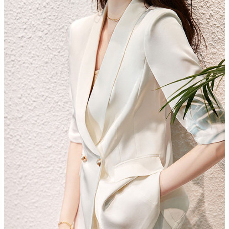 Bộ trang phục này có áo khoác và quần dài ống loe, được may với đường cắt vừa vặn tôn dáng. Chất vải mỏng nhẹ, thoáng mát, rất phù hợp mặc trong mùa hè hoặc thời tiết ấm áp. Kiểu dáng lịch sự, phù hợp để đi làm, dự tiệc hay gặp mặt bạn bè. Có thể mặc nguyên bộ hoặc phối cùng các trang phục khác để tạo nên những vẻ ngoài đa dạng. | Tên sản phẩm: Áo Vest Nữ Vest Dáng Ôm Cả Bộ 2 Món Hàng Mùa Hè - Thời Trang Nữ | Mã sản phẩm: k0026 - Giá: 2.300.000đ | Mã nhà sản xuất: CHTYAI-G05Hình ảnh sản phẩm