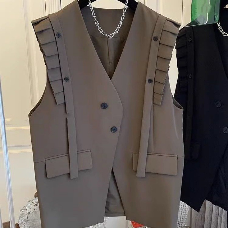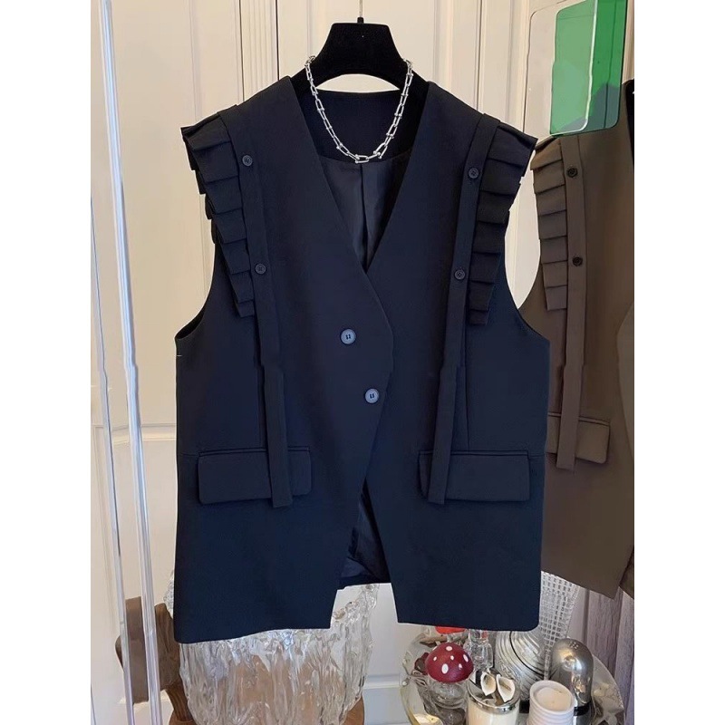 Áo khoác dạng áo vest không tay dành cho mùa hè, thiết kế rộng rãi và dáng dài tạo cảm giác thoải mái, dễ dàng phối đồ. Điểm nhấn đặc biệt là phần cổ và đường viền tay được cách điệu kiểu t gấp, tăng thêm nét duyên dáng. Chất vải mỏng nhẹ, thoáng mát, phù hợp cho những ngày nắng nóng. Có thể mặc như một lớp áo bên ngoài áo thun hoặc áo sơ mi, phù hợp cho đi làm, đi chơi hay dạo phố. | Tên sản phẩm: Áo Vest Nữ Vest Hàng Mùa Hè - Thời Trang Nữ | Mã sản phẩm: k0046 - Giá: 990.000đ | Mã nhà sản xuất: CHTYAI-G03Hình ảnh sản phẩm
