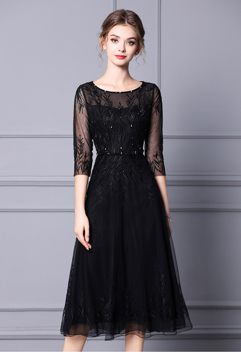 Chiếc đầm dáng dài qua gối, điểm nhấn là những đường thêu tinh xảo cùng hạt ngọc tr lấp lánh được kết tỉ mỉ. Kiểu dáng trang nhã, phù hợp cho các buổi tiệc hoặc sự kiện vào mùa xuân và mùa hè. Chất vải mềm mại giúp bạn dễ chịu khi mặc. Sản phẩm có thể giặt tay nhẹ nhàng và phơi nơi râm mát để giữ form dáng và độ bền đẹp lâu dài. | Tên sản phẩm: Váy Đầm Liền Thân Nữ Thêu Họa Tiết Hoa Hàng Mùa Xuân Thu Đông - Thời Trang Nữ | Mã sản phẩm: K0051 - Giá: 4.300.000đ | Mã nhà sản xuất: SHDAP-G06Hình ảnh sản phẩm