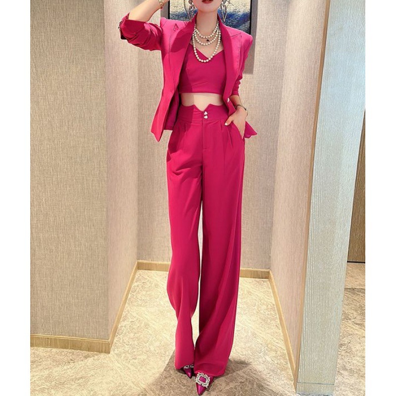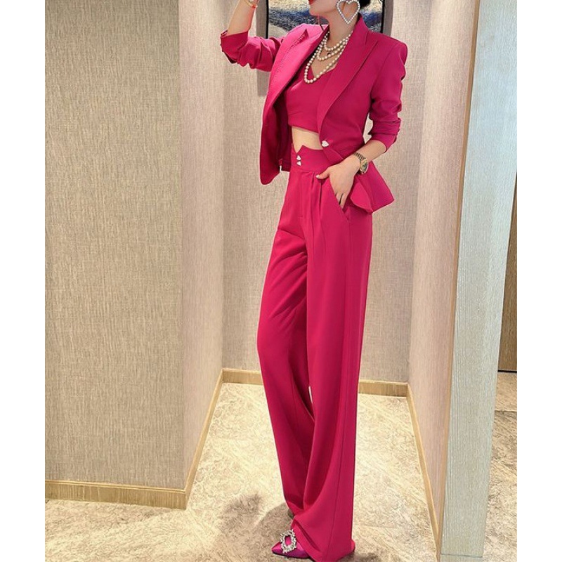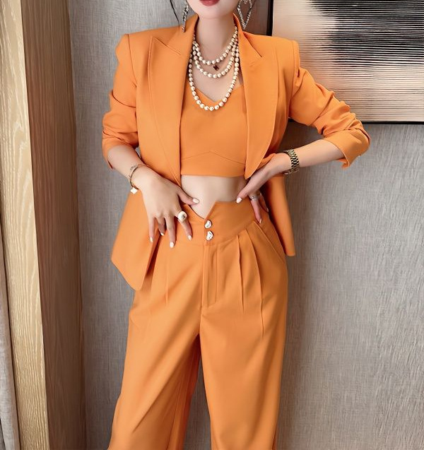 Bộ trang phục gồm ba món thiết kế dành cho mùa xuân và thu. Áo khoác dáng chuẩn kết hợp cùng quần ống rộng và áo bên trong, tạo nên một bộ đồ chỉn chu. Kiểu dáng mang phong cách hiện đại, giúp tôn lên vẻ ngoài tự tin và năng động. Bạn có thể mặc nguyên bộ để đi làm, đi gặp mặt hoặc phối đồ riêng lẻ để tạo nhiều phong cách đa dạng. Chất vải mềm mại, tạo cảm giác thoải mái cho người mặc suốt ngày dài. | Tên sản phẩm: Áo Vest Nữ Vest Cả Bộ 3 Món Hàng Mùa Xuân Thu Đông - Thời Trang Nữ | Mã sản phẩm: k0064 - Giá: 2.670.000đ | Mã nhà sản xuất: CHTYAI-G06Hình ảnh sản phẩm