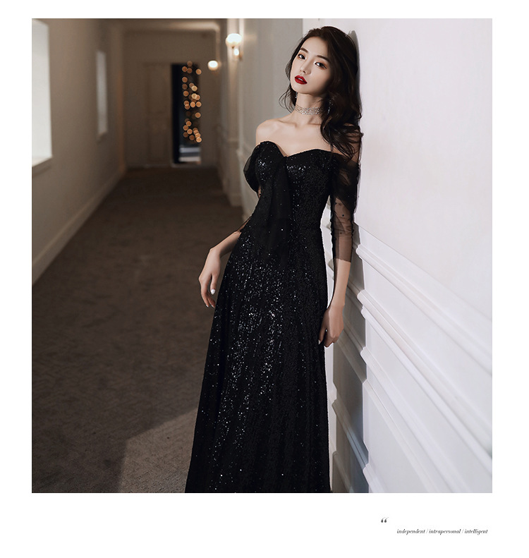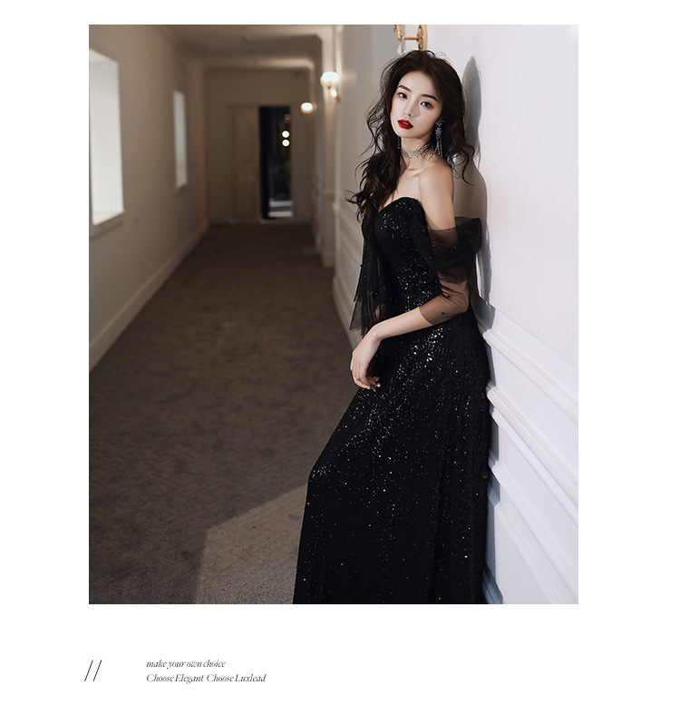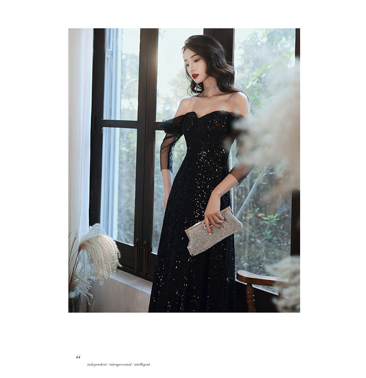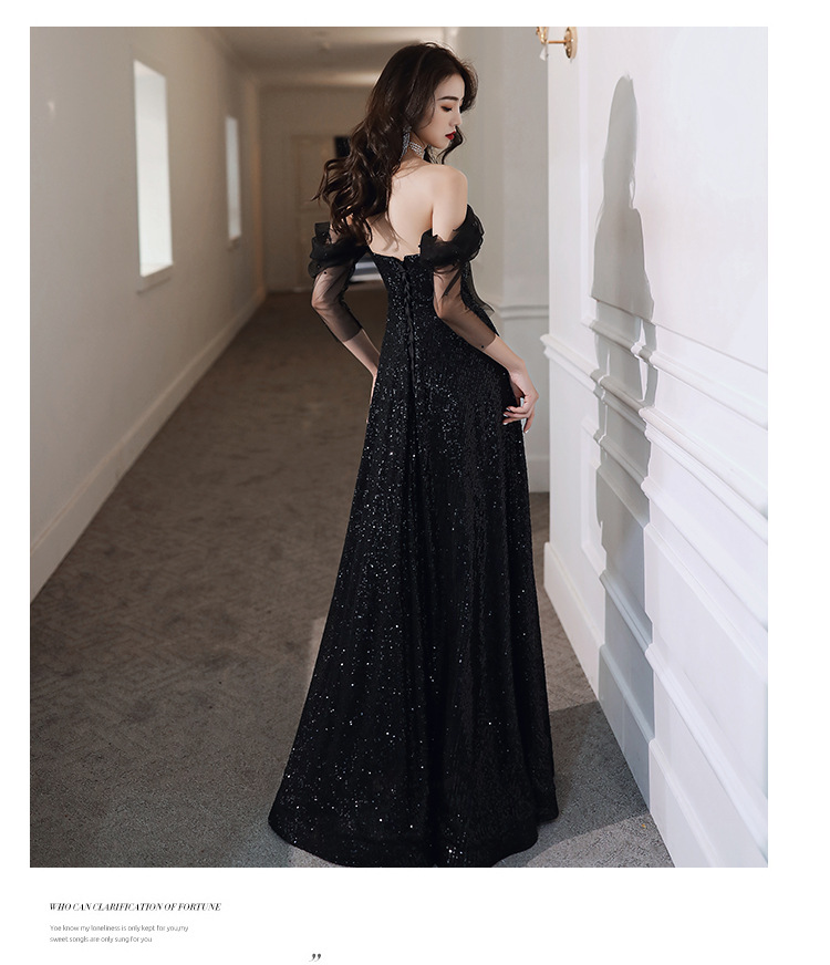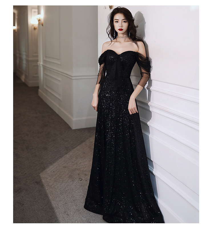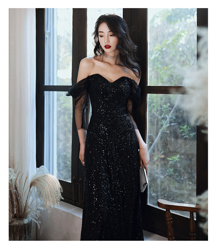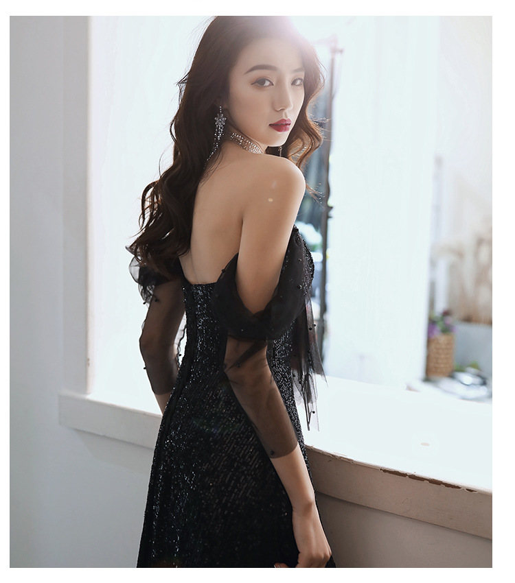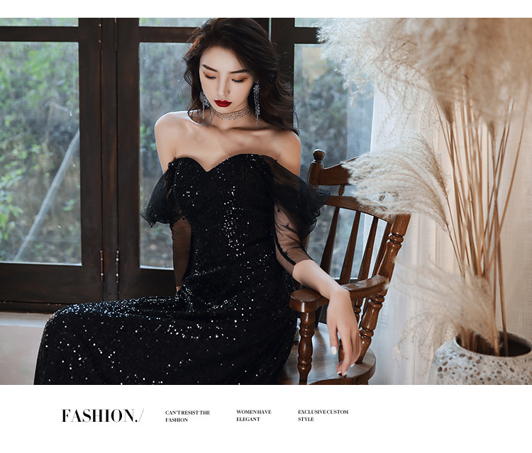 Váy dạ hội màu đen, thiết kế kiểu cách Pháp thanh lịch, phù hợp cho các buổi tiệc hoặc dẫn chương trình. Dáng váy ôm tôn lên đường nét cơ thể một cách dịu dàng, giúp người mặc trông thon gọn hơn. Kiểu dáng này cũng có thể phối hợp mặc trong những dịp thường ngày một cách linh hoạt. Chất vải mềm mại tạo cảm giác dễ chịu khi mặc. Có thể giặt bằng tay hoặc giặt máy nhẹ nhàng và phơi ở nơi râm mát. | Tên sản phẩm: Váy Đầm Liền Thân Dự Tiệc Nữ - Thời Trang Nữ | Mã sản phẩm: K0124 - Giá: 1.380.000đ | Mã nhà sản xuất: XUTYYU-G04Hình ảnh sản phẩm