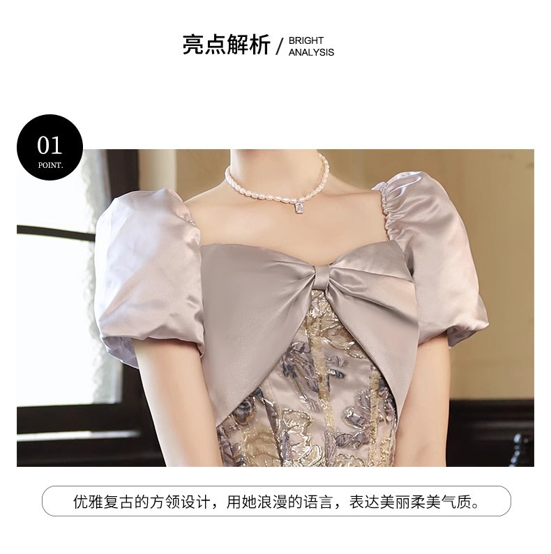 Váy dự tiệc kiểu cách Pháp, thiết kế mới cho năm 2024. Chiếc váy này có phom dáng thanh lịch, phù hợp cho nhiều dịp như dự tiệc, biểu diễn thanh nhạc, hoặc dẫn chương trình. Chất vải mềm mại và rủ nhẹ tạo nên sự uyển chuyển khi di chuyển. Bạn có thể mặc kết hợp cùng phụ kiện đơn giản để tôn lên vẻ đẹp của trang phục. Dễ dàng giặt bằng tay và phơi khô trong bóng mát để giữ form váy lâu dài. | Tên sản phẩm: Váy Đầm Liền Thân Dự Tiệc Nữ - Thời Trang Nữ | Mã sản phẩm: K0139 - Giá: 1.360.000đ | Mã nhà sản xuất: XUTYYU-G04Hình ảnh sản phẩm