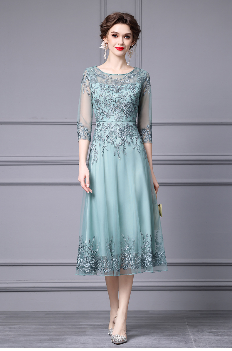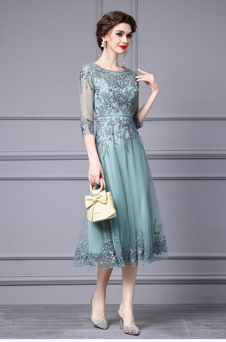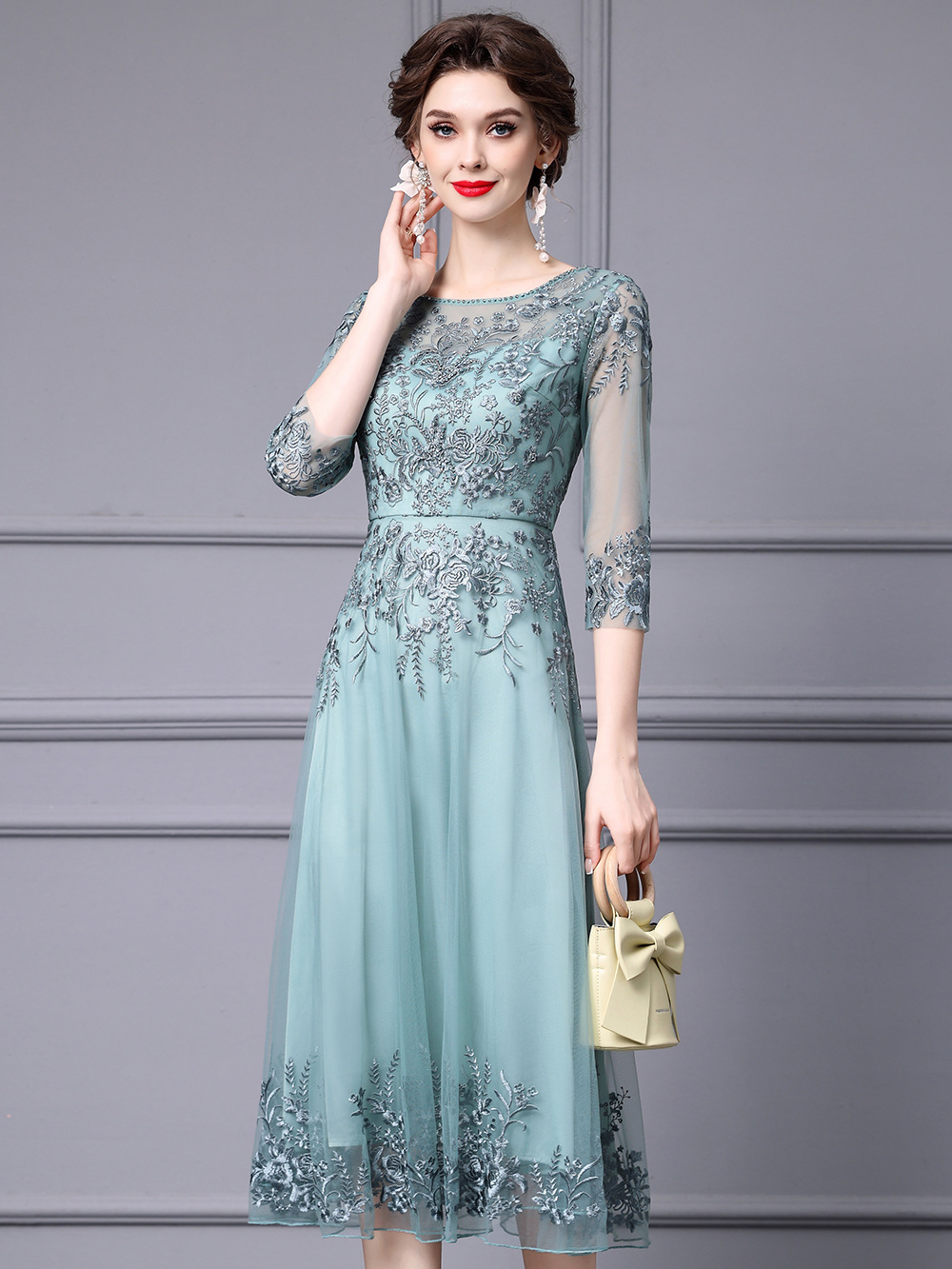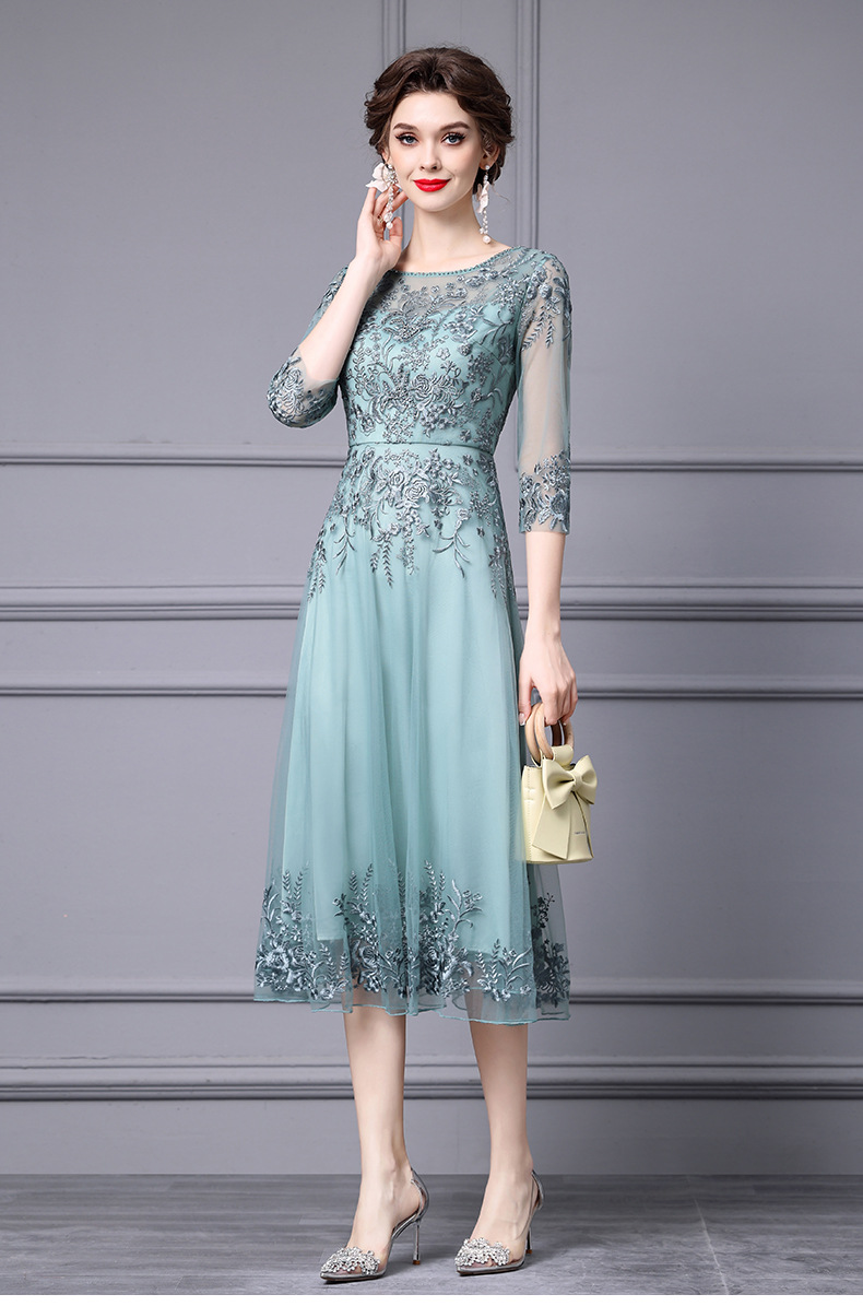 Chiếc đầm xuân này có phần thân trên được kết hợp từ chất liệu ren xanh lục, điểm xuyết những đường thêu tinh xảo. Thiết kế xòe bồng bềnh ở phần chân váy tạo dáng thướt tha, duyên dáng. Kiểu dáng kết hợp giữa vẻ đẹp hiện đại và nét dịu dàng. Sản phẩm mặc kèm với áo thun hoặc áo sơ mi đều phù hợp, thích hợp cho các dịp đi chơi, dạo phố. | Tên sản phẩm: Váy Đầm Liền Thân Nữ Lưới Mỏng Thêu Họa Tiết Hoa Hàng Mùa Xuân Thu Đông - Thời Trang Nữ | Mã sản phẩm: K0147 - Giá: 4.260.000đ | Mã nhà sản xuất: SHDAP-G06Hình ảnh sản phẩm