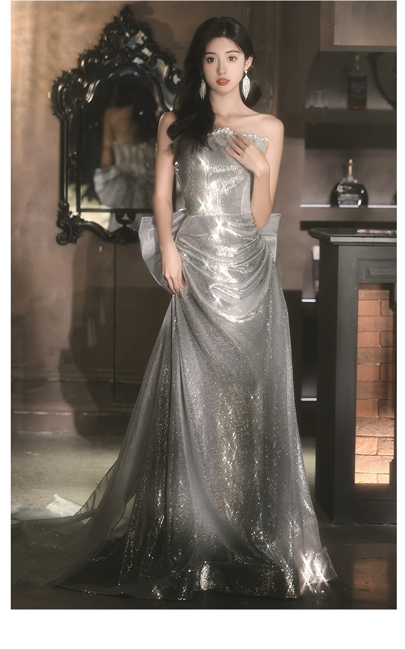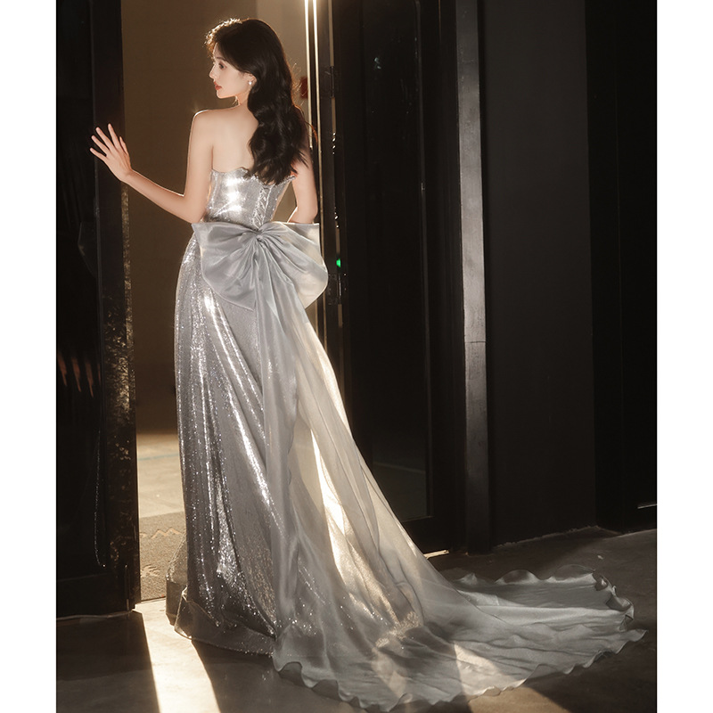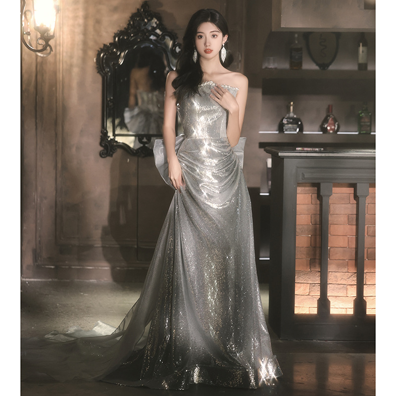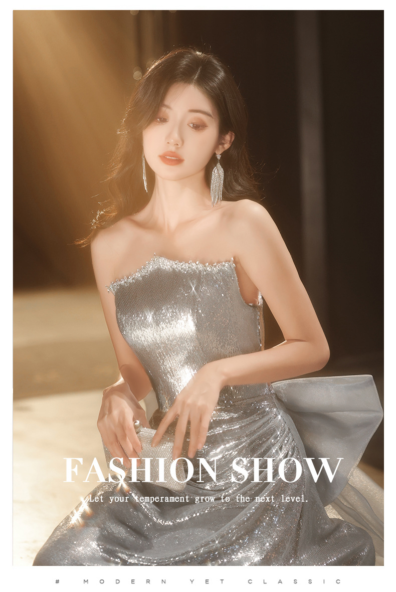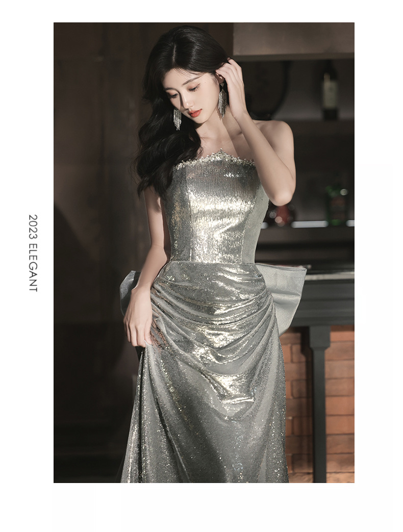 Chiếc váy dạ hội lấp lánh với hàng ngàn hạt ánh bạc tinh tế. Thiết kế ôm dáng thanh lịch, phù hợp cho các buổi tiệc tối, biểu diễn nghệ thuật hoặc làm váy cô dâu trong tiệc mừng. Chất vải nhẹ nhàng giúp bạn dễ dàng di chuyển và thoải mái suốt đêm. Mặc kèm với phụ kiện đơn giản để tôn lên vẻ rực rỡ của váy. Dễ dàng giặt tay và bảo quản nơi khô ráo. | Tên sản phẩm: Váy Đầm Liền Thân Dự Tiệc Nữ - Thời Trang Nữ | Mã sản phẩm: K0150 - Giá: 1.900.000đ | Mã nhà sản xuất: XUTYYU-G05Hình ảnh sản phẩm