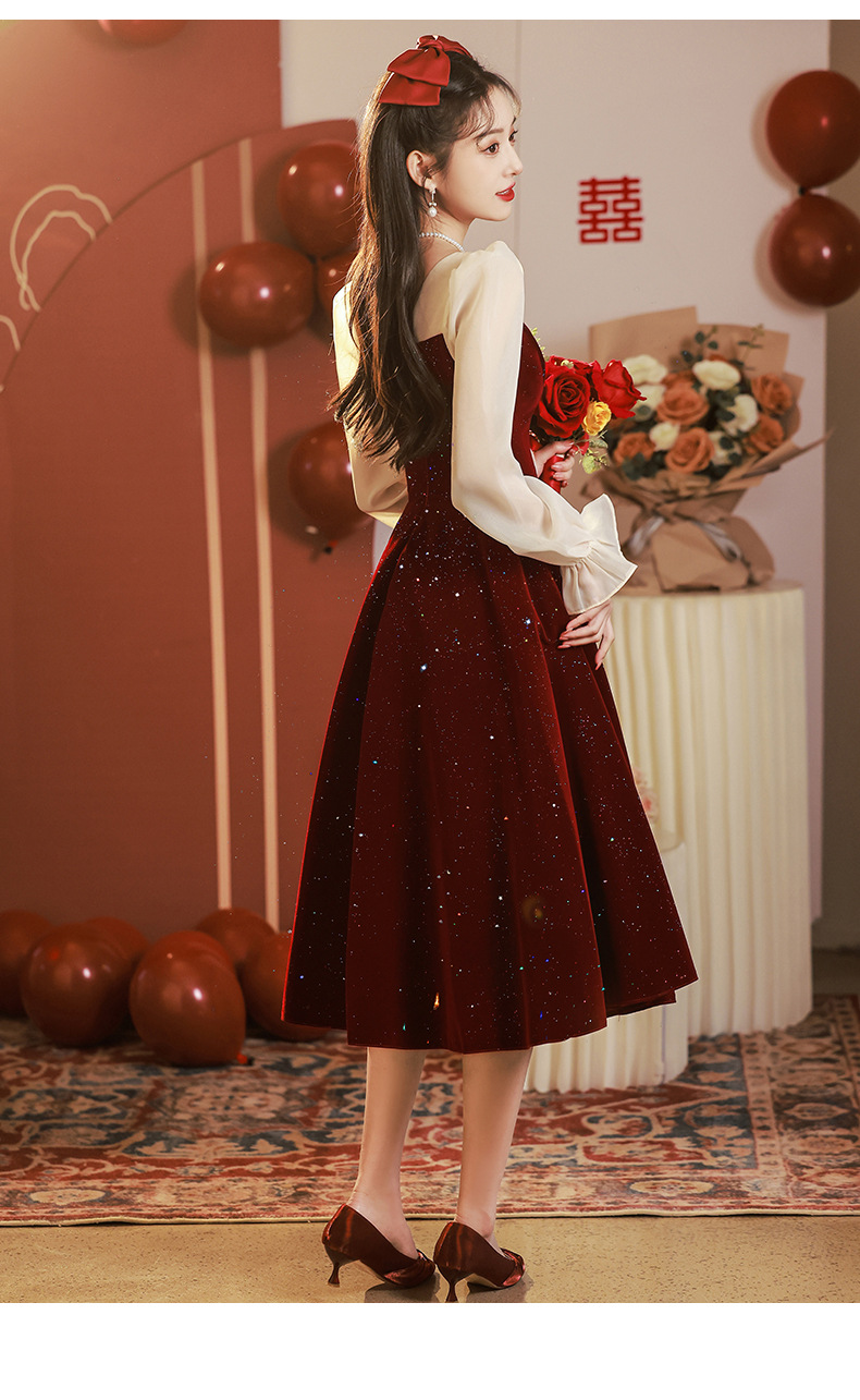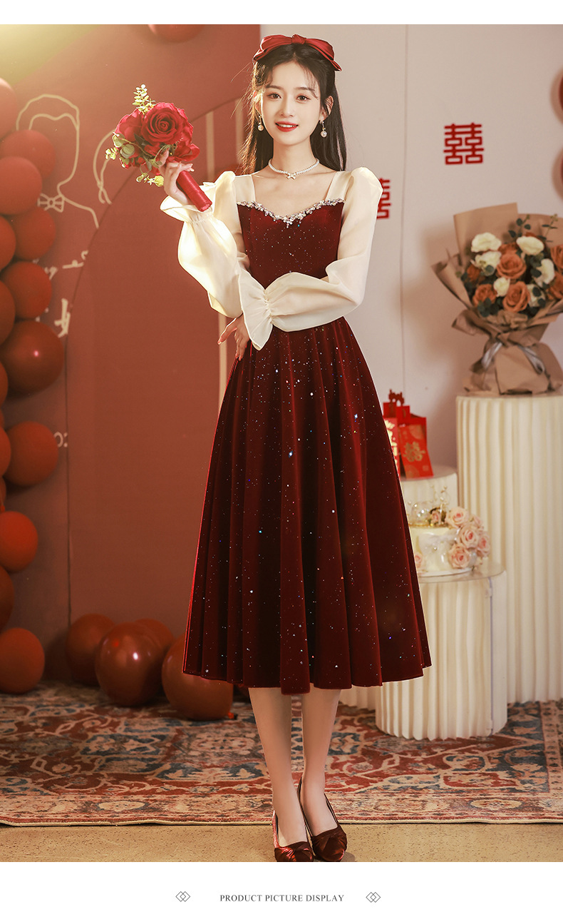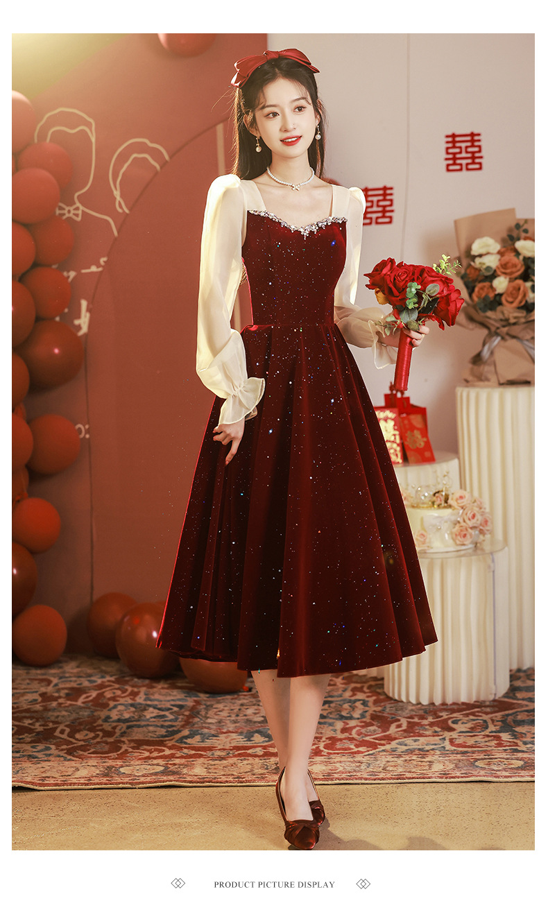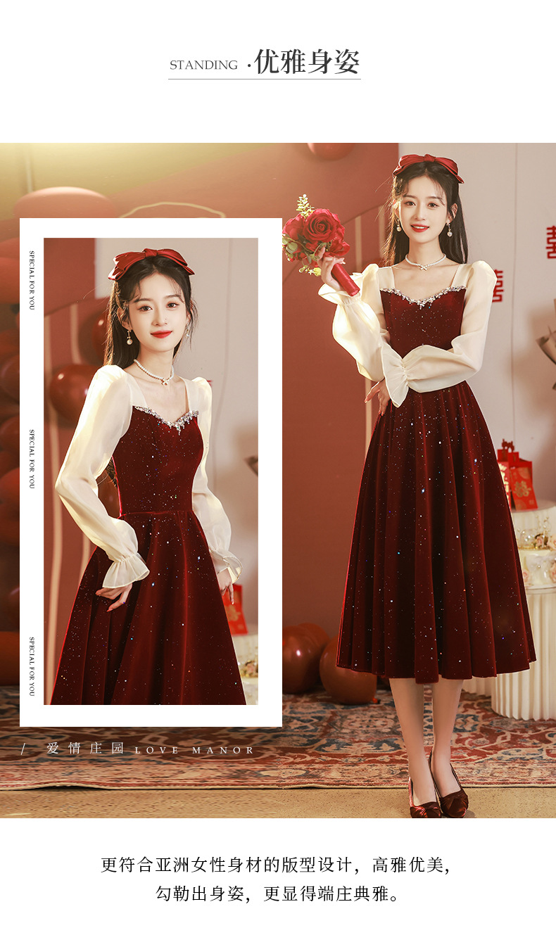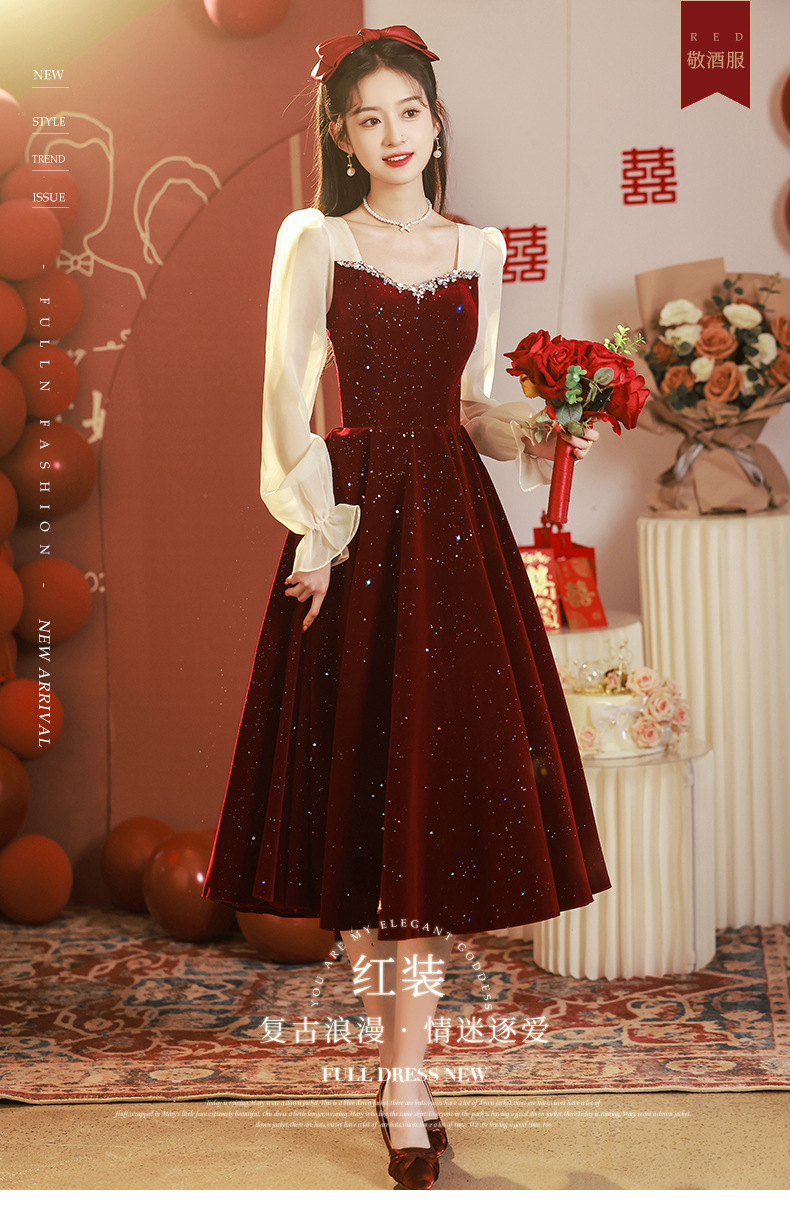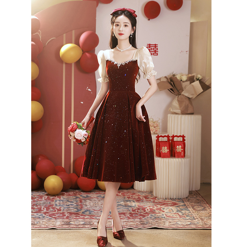 Chiếc đầm dành cho cô dâu có chiều cao nhỏ nhắn, với sắc đỏ rượu vang thắm thiết. Kiểu dáng thanh lịch, ôm nhẹ cơ thể, phù hợp cho các dịp mừng hỷ như đám cưới, lễ hỏi hay tiệc về nhà chồng. Điểm đặc biệt là thiết kế tinh tế giúp bạn có thể mặc trong những dịp thường ngày vào mùa xuân. Chất vải mềm mại mang lại sự dễ chịu khi mặc trong thời gian dài. Dễ dàng phối cùng giày cao gót và một vài món trang sức nhỏ để hoàn thiện vẻ ngoại. | Tên sản phẩm: Váy Đầm Liền Thân Dự Tiệc Nữ Hàng Mùa Xuân Thu Đông Dùng Trong Lễ Cưới - Thời Trang Nữ | Mã sản phẩm: K0158 - Giá: 1.420.000đ | Mã nhà sản xuất: XUTYYU-G04Hình ảnh sản phẩm