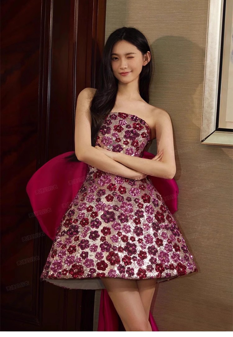 Chiếc váy ngắn này được thiết kế dành riêng cho các dịp lễ, tiệc. Điểm nhấn nổi bật là những bông hoa lấp lánh được đính tinh xảo khắp thân váy, tạo nên vẻ đẹp rạng rỡ dưới ánh đèn. Kiểu dáng trẻ trung, hiện đại, phù hợp cho nhiều hoàn cảnh khác nhau. Bạn có thể mặc nó để tham dự tiệc cưới, sinh nhật hay các buổi biểu diễn. Chỉ cần phối cùng một đôi giày phù hợp là bạn đã có một set đồ hoàn hảo. | Tên sản phẩm: Váy Đầm Liền Thân Dự Tiệc Nữ Họa Tiết Hoa Dùng Trong Lễ Cưới Ngày Cưới - Thời Trang Nữ | Mã sản phẩm: K0180 - Giá: 1.810.000đ | Mã nhà sản xuất: XUTYYU-G05Hình ảnh sản phẩm