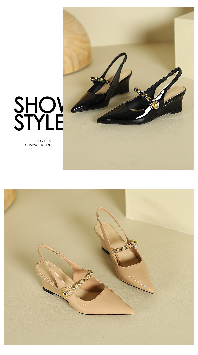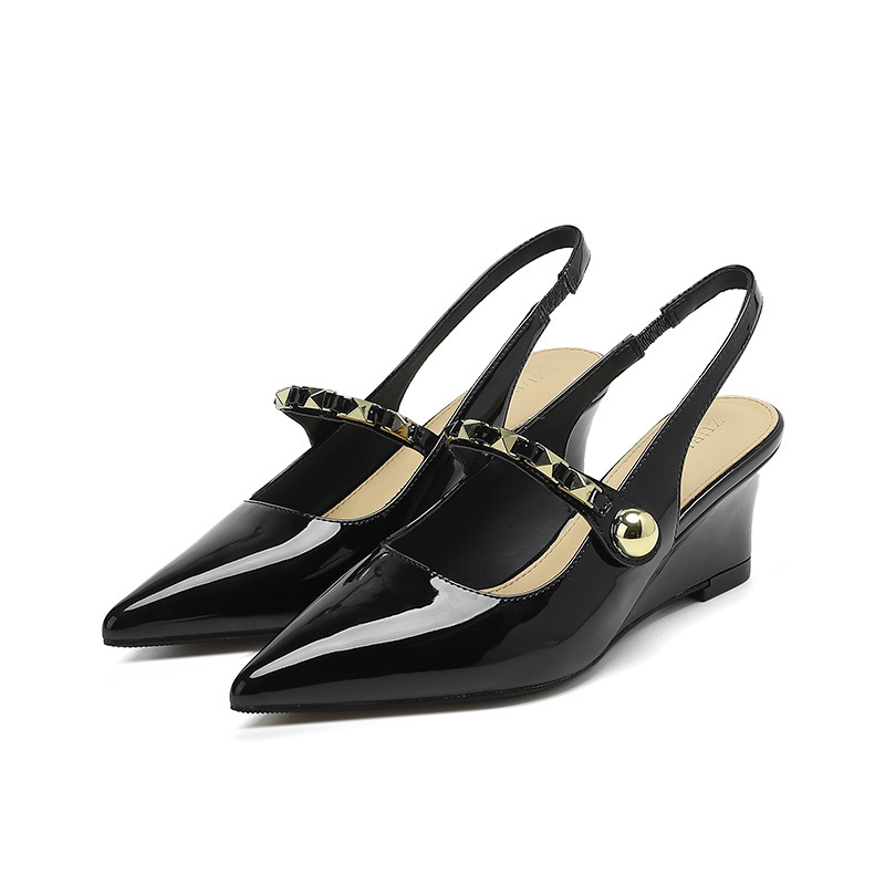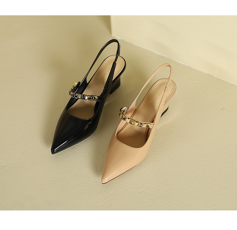 Giày cao gót nữ với phần gót hình hộp rỗng ở giữa tạo điểm nhấn độc đáo. Mũi giày nhọn, phối cùng các đinh tán cá tính và đế dày vừa phải giúp tôn dáng. Kiểu dáng phù hợp để đi làm, dự tiệc hoặc tạo phong cách thời trang đường phố. Sản phẩm dễ dàng kết hợp cùng nhiều loại trang phục khác nhau. Chỉ cần chọn đúng cỡ và bảo quản nơi khô ráo để sử dụng được lâu dài. | Tên sản phẩm: Giày Cao Gót Nữ Mũi Nhọn Đế Xuồng Đế Cao - Giày Dép Nữ | Mã sản phẩm: k0189 - Giá: 940.000đ | Mã nhà sản xuất: HURYAN-G03Hình ảnh sản phẩm